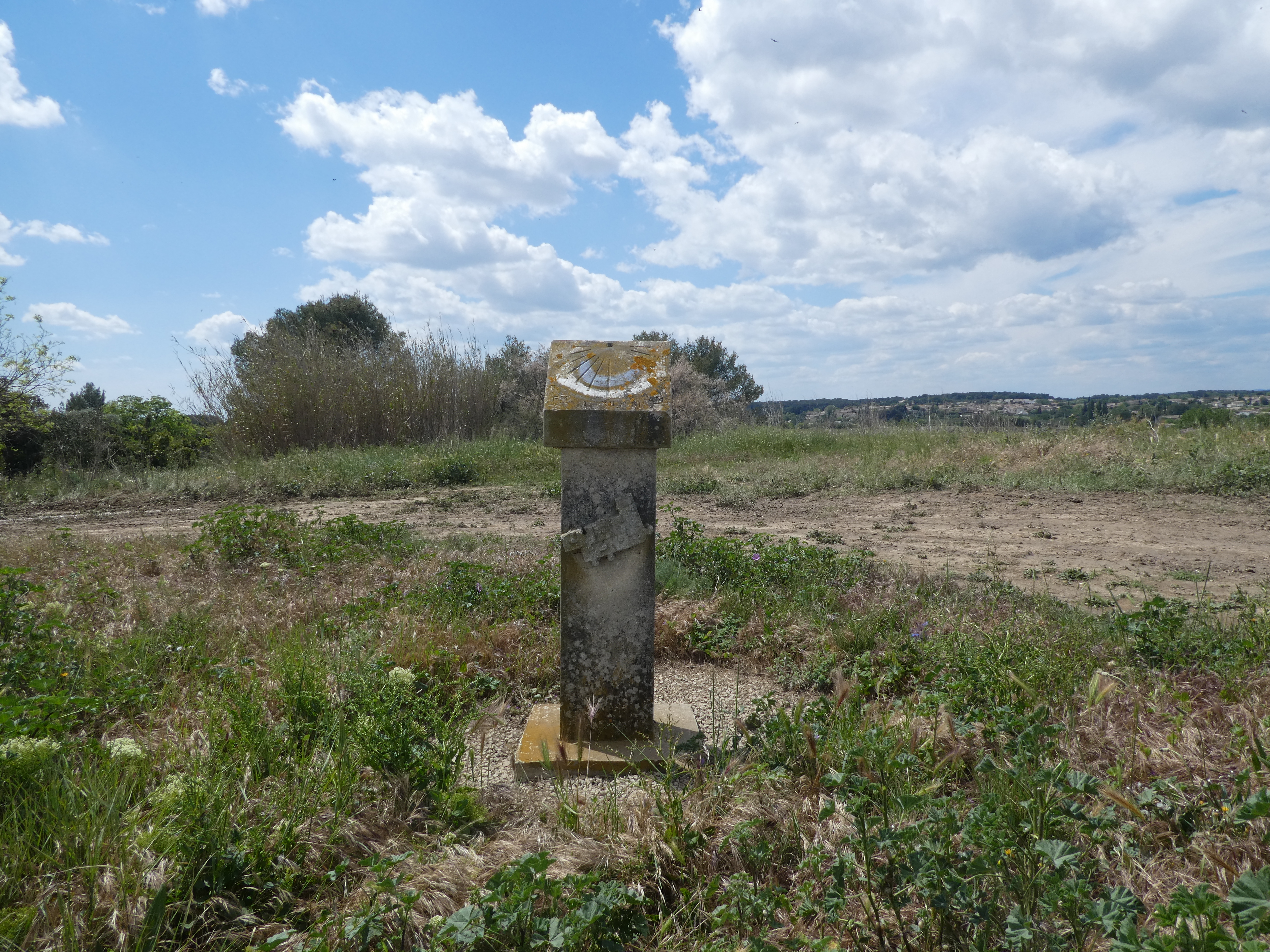 La Monnaie (17 m) : suivre le chemin partant sur la droite direction Gallargues-le-Monteux, balisé en rouge et blanc, et en jaune dorénavant (on suit désormais le tracé du GR653 ou Chemin d'Arles)