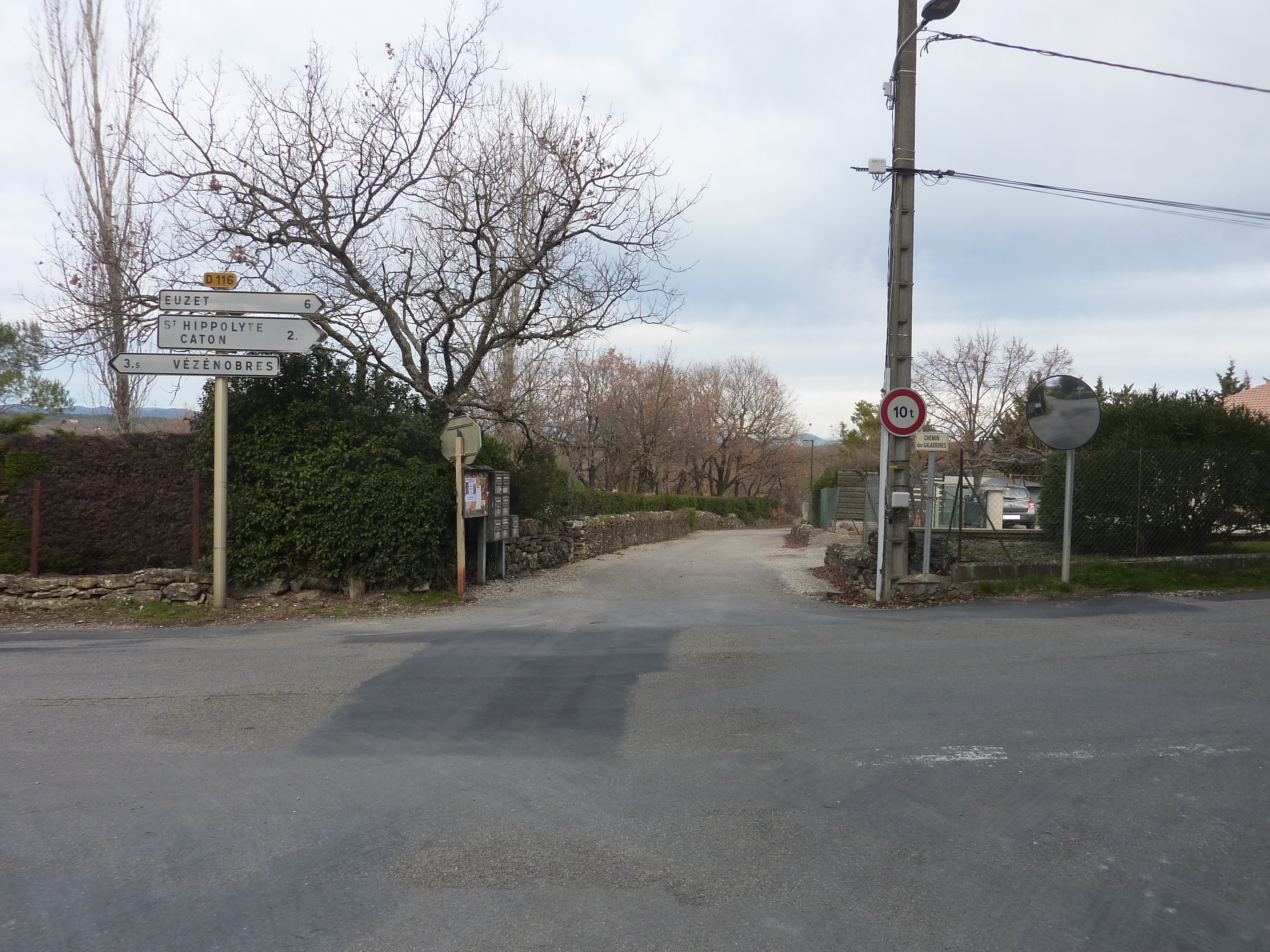 Gaussen (195 m) : suivre le chemin partant sur la droite direction Vézénobres par le Rascalas, balisé en jaune