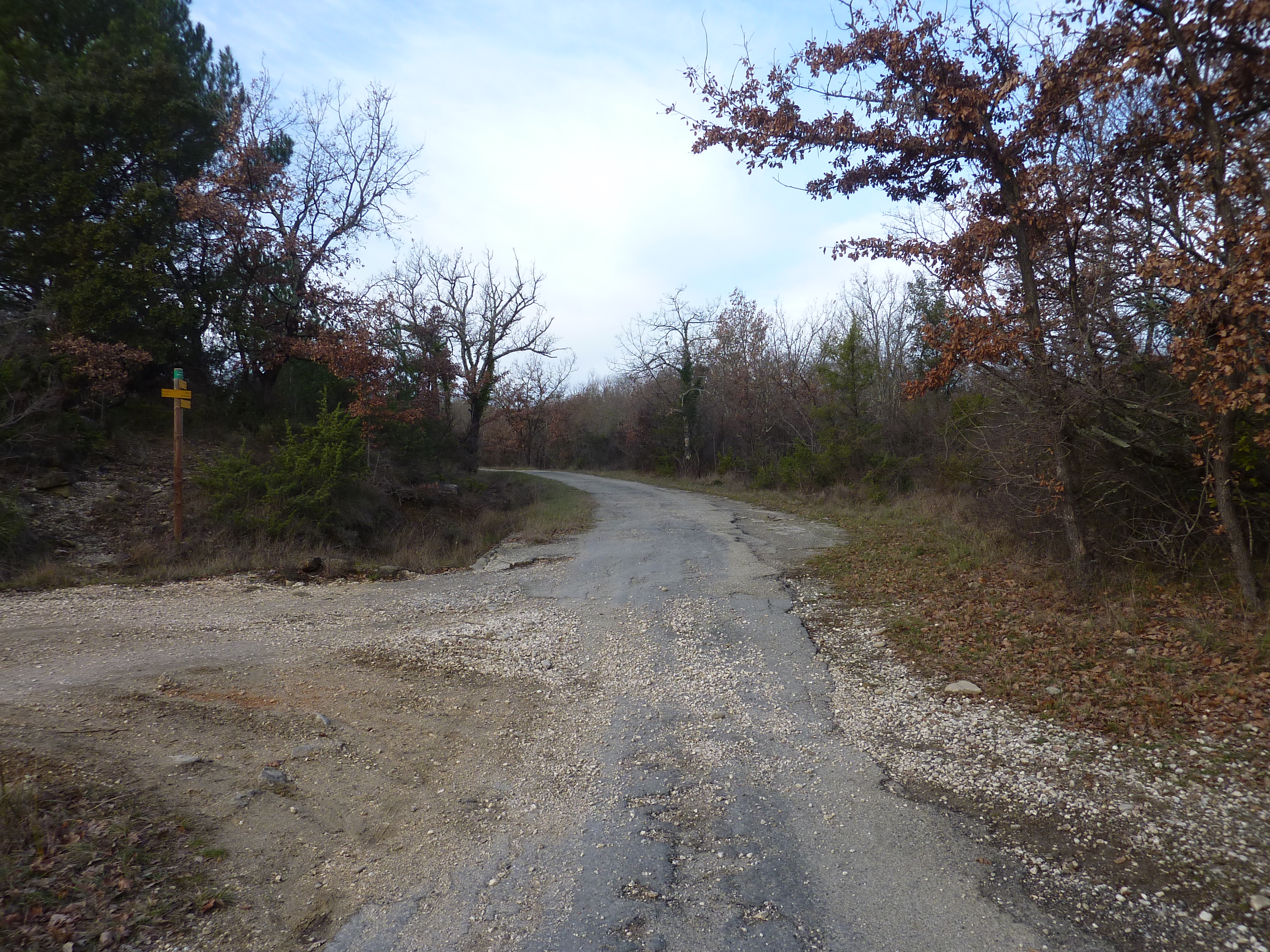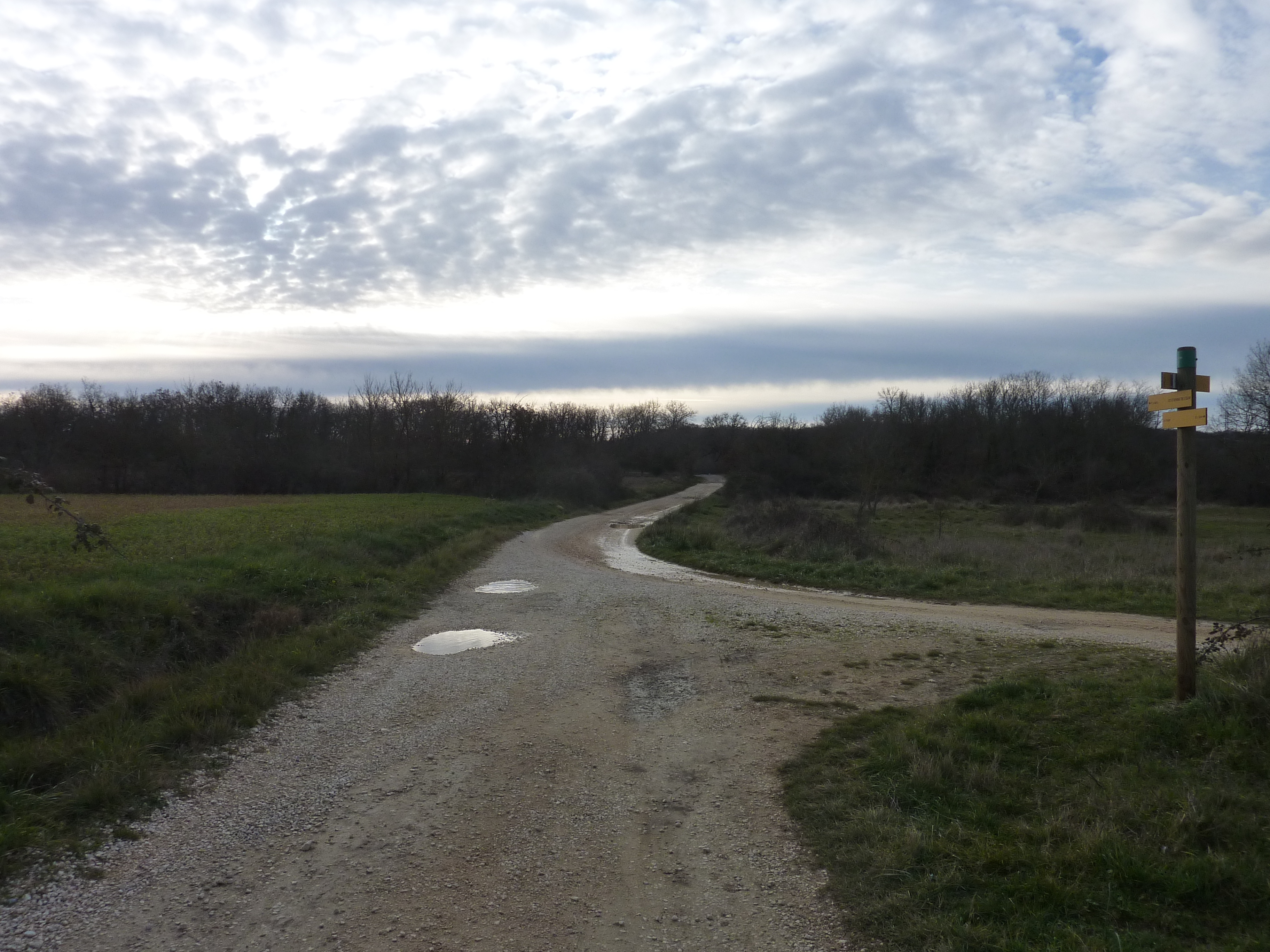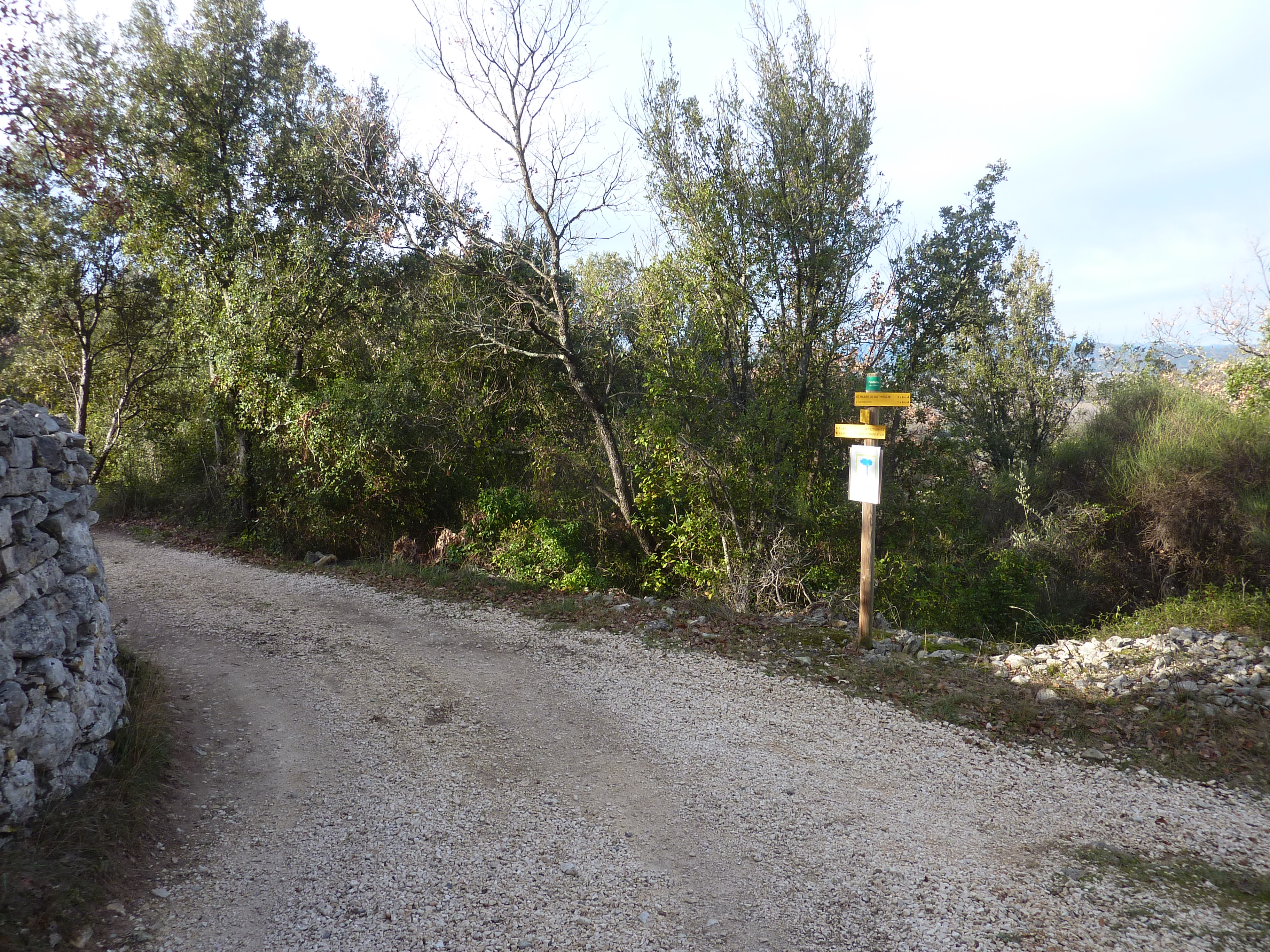 A ce croisement avec une piste (400 mètres après le lieu-dit "Martignargues - La Parrans"), suivre cette dernière sur la droite direction Saint-Étienne-de-l'Olm, balisé en jaune