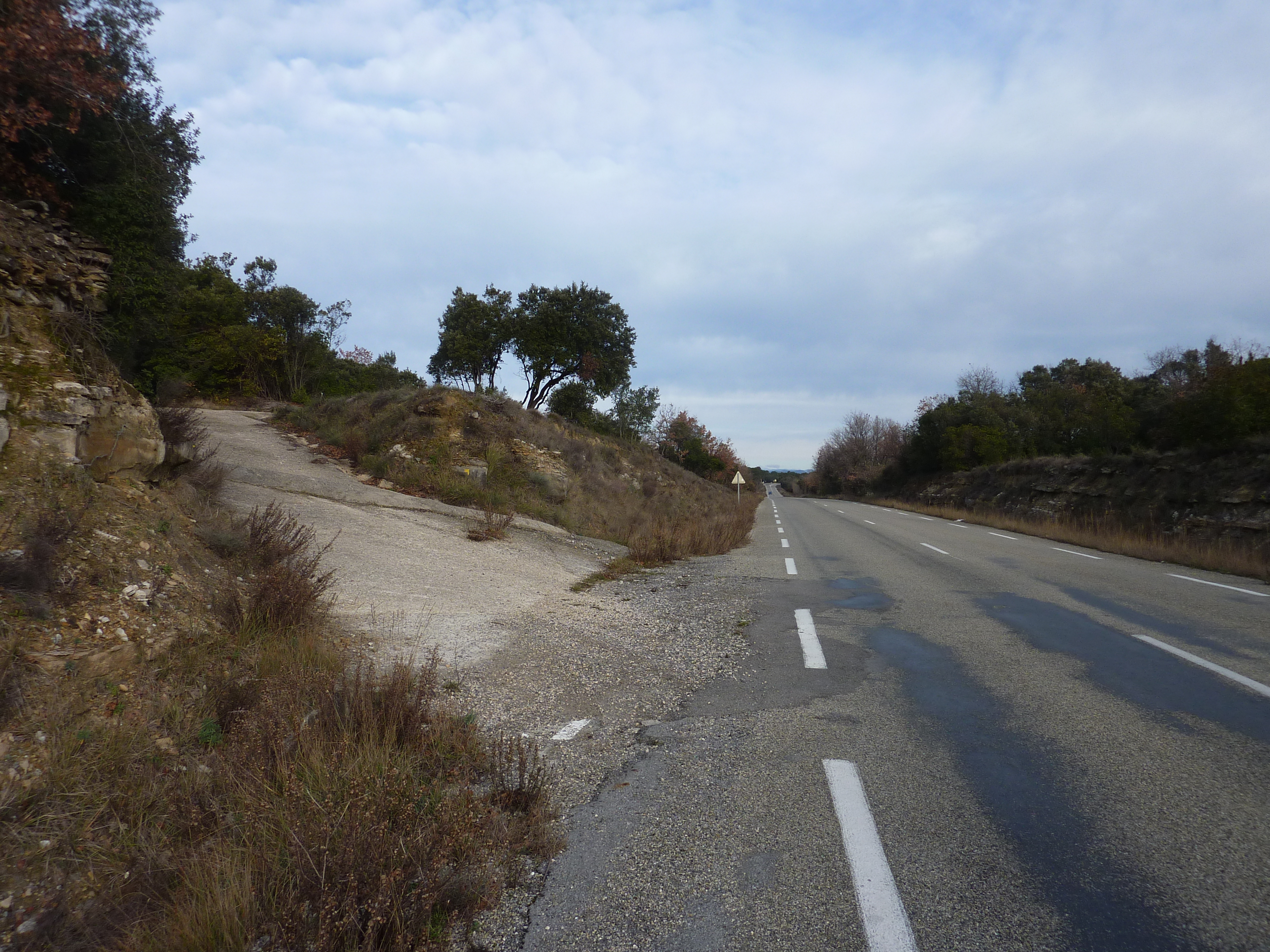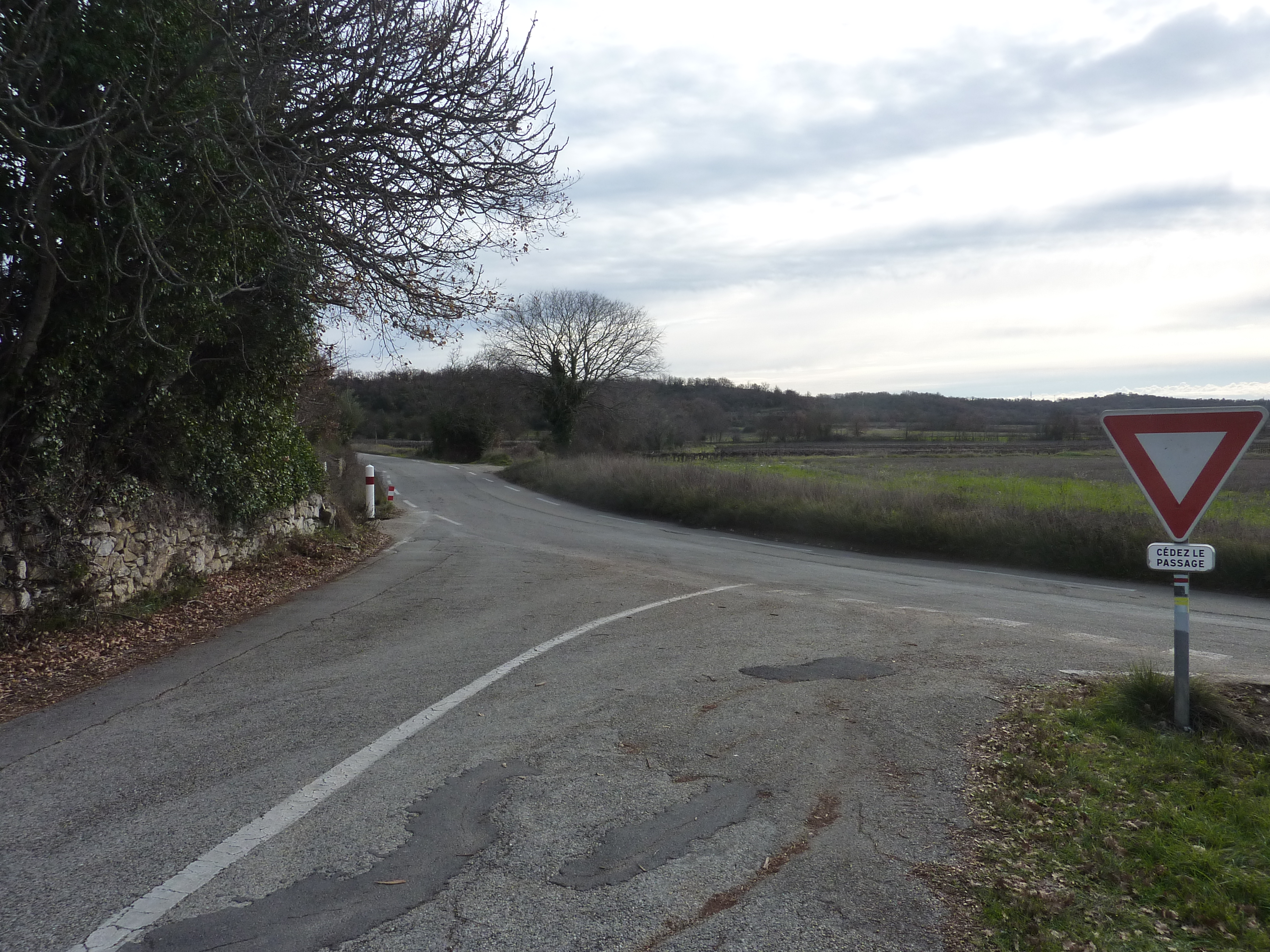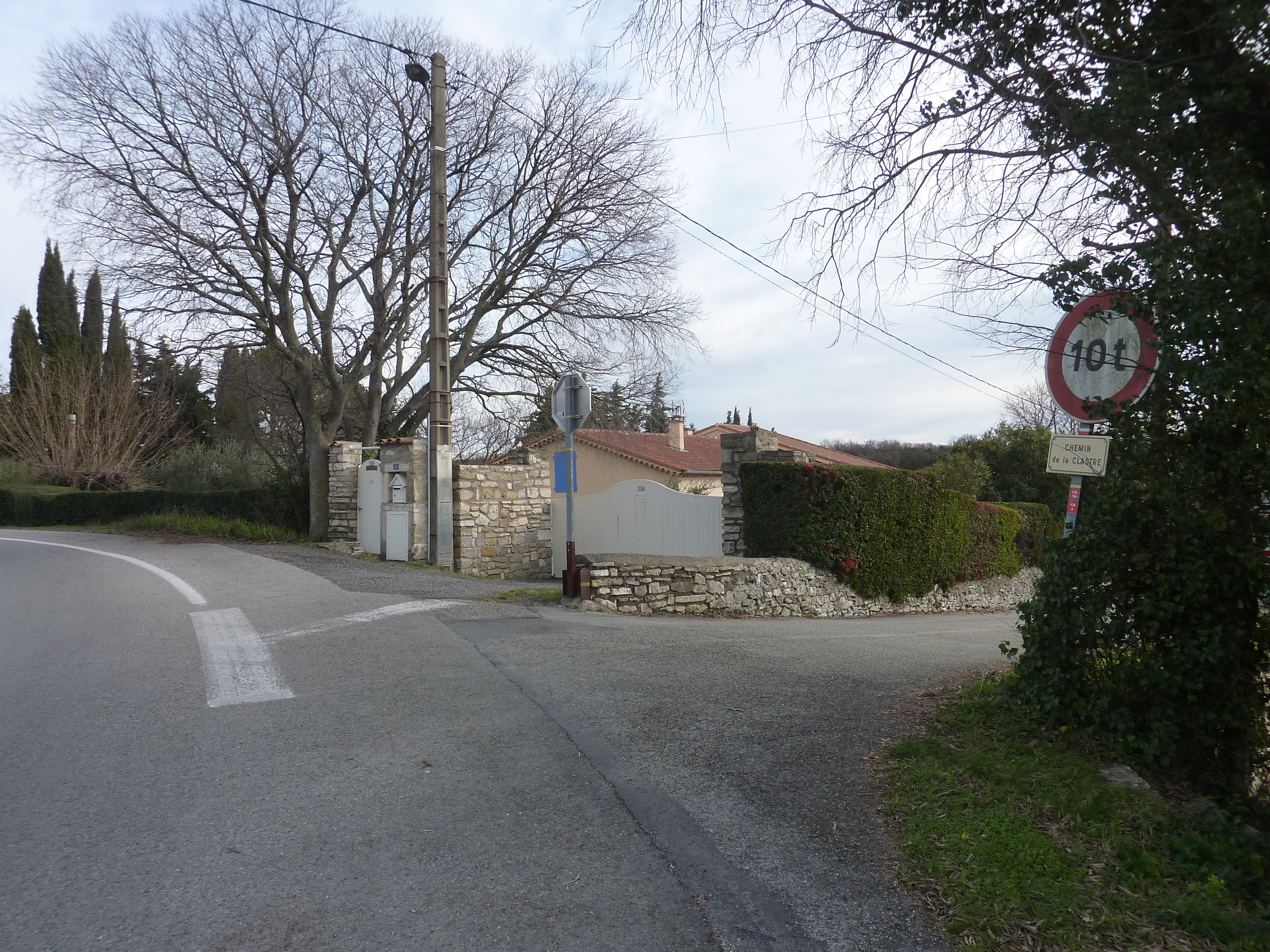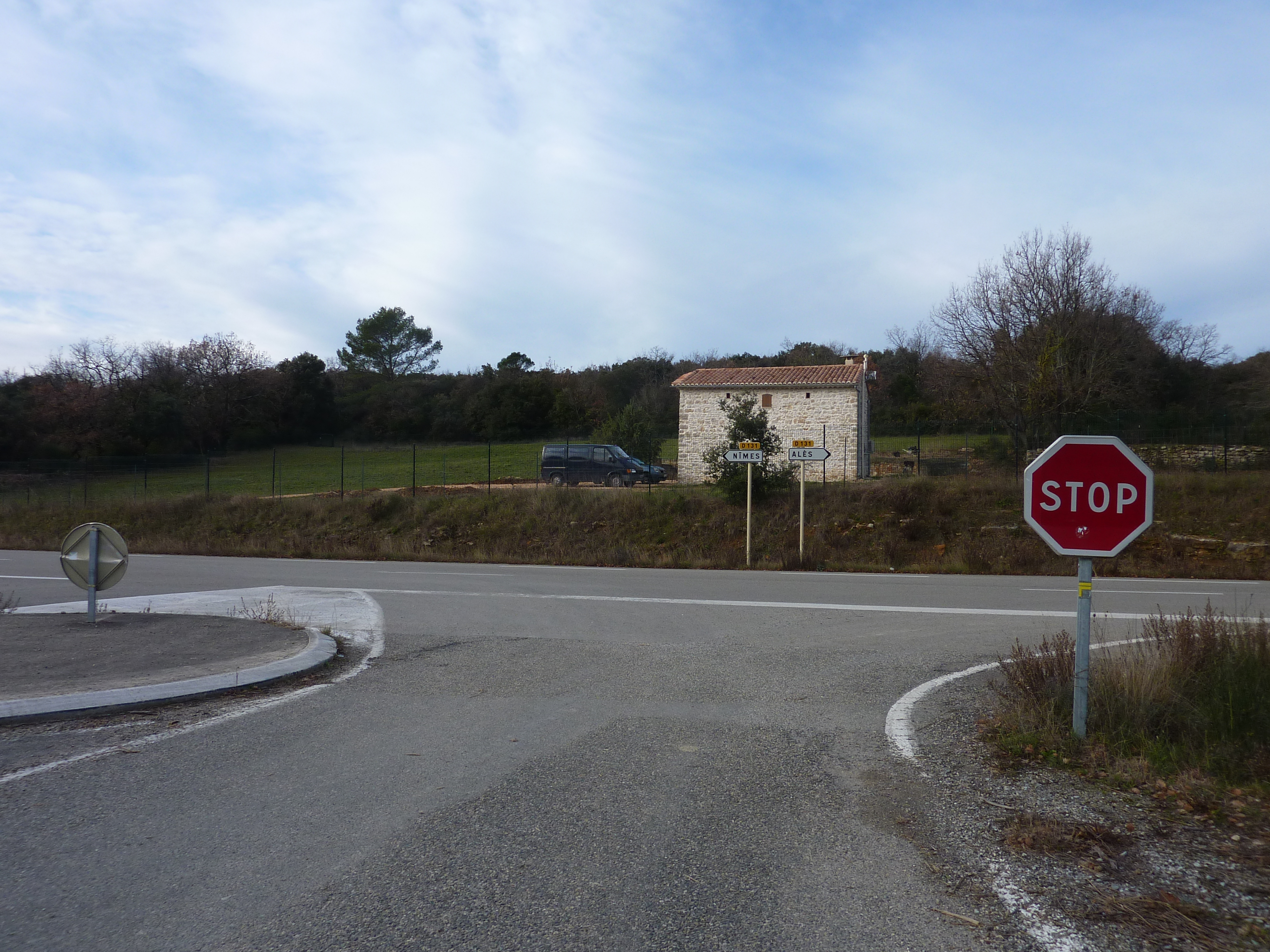 A cette intersection (150 mètres après le lieu-dit "Le Château de Calvière"), suivre la route partant sur la droite direction Martignargues, balisé en rouge et blanc, et en jaune