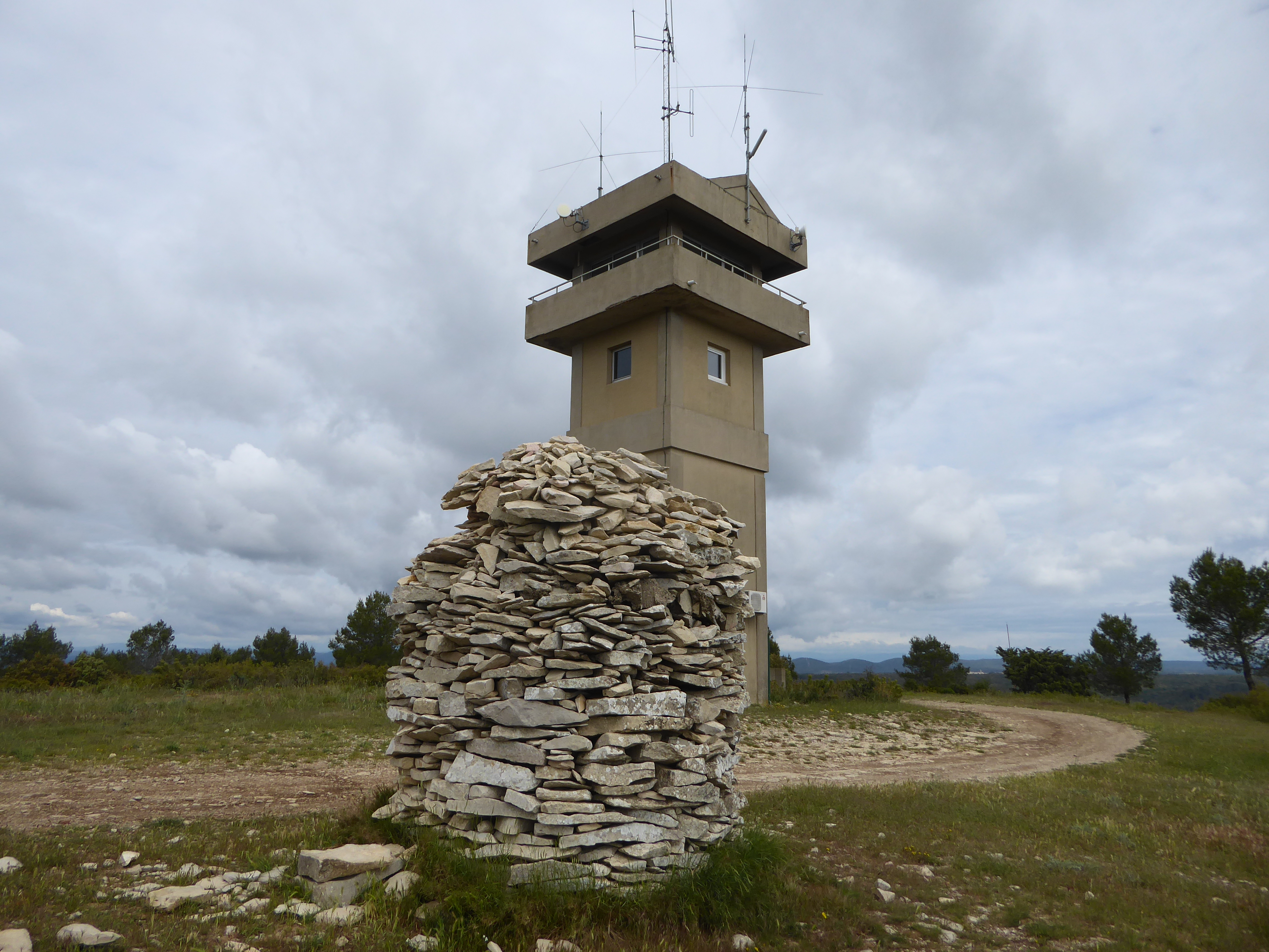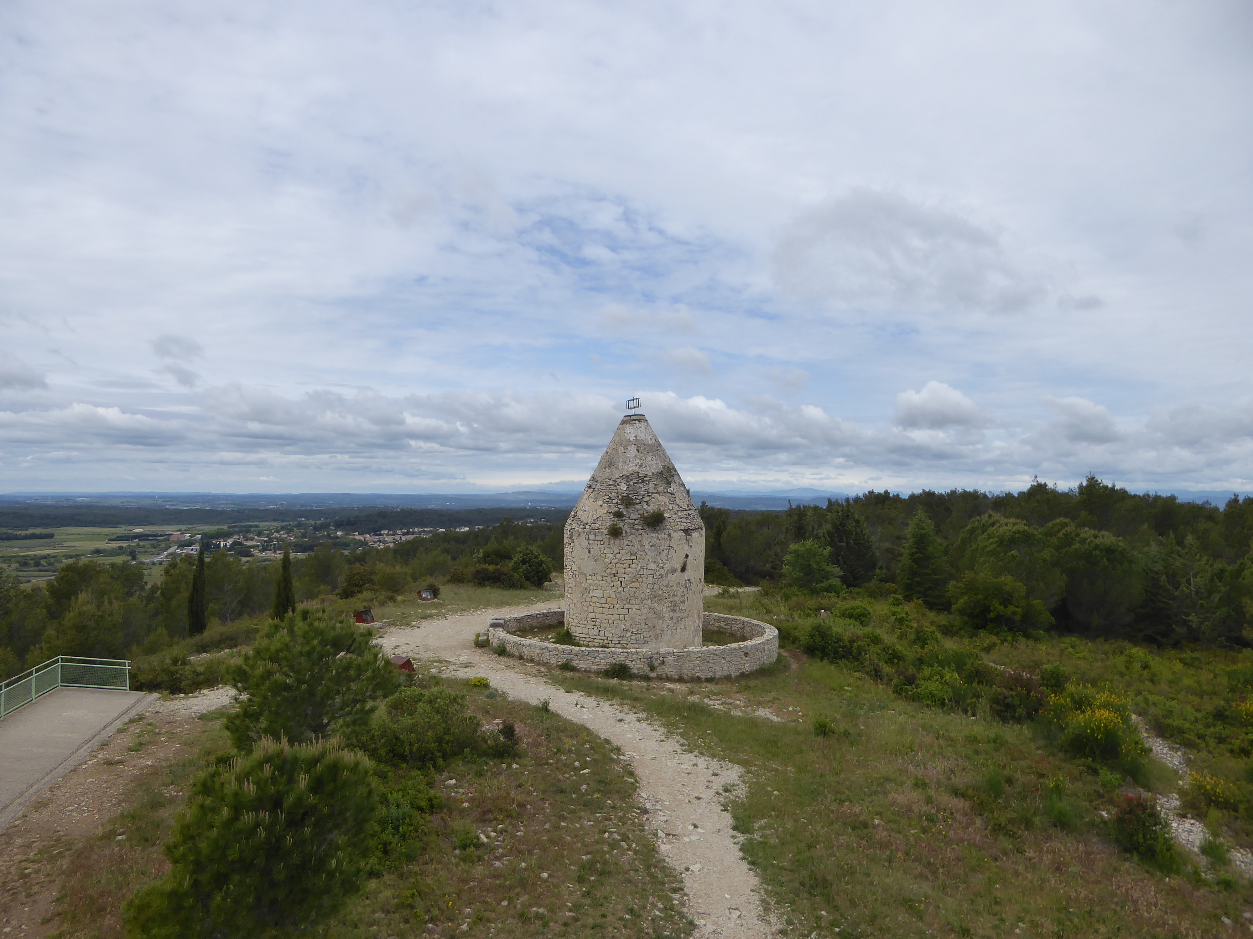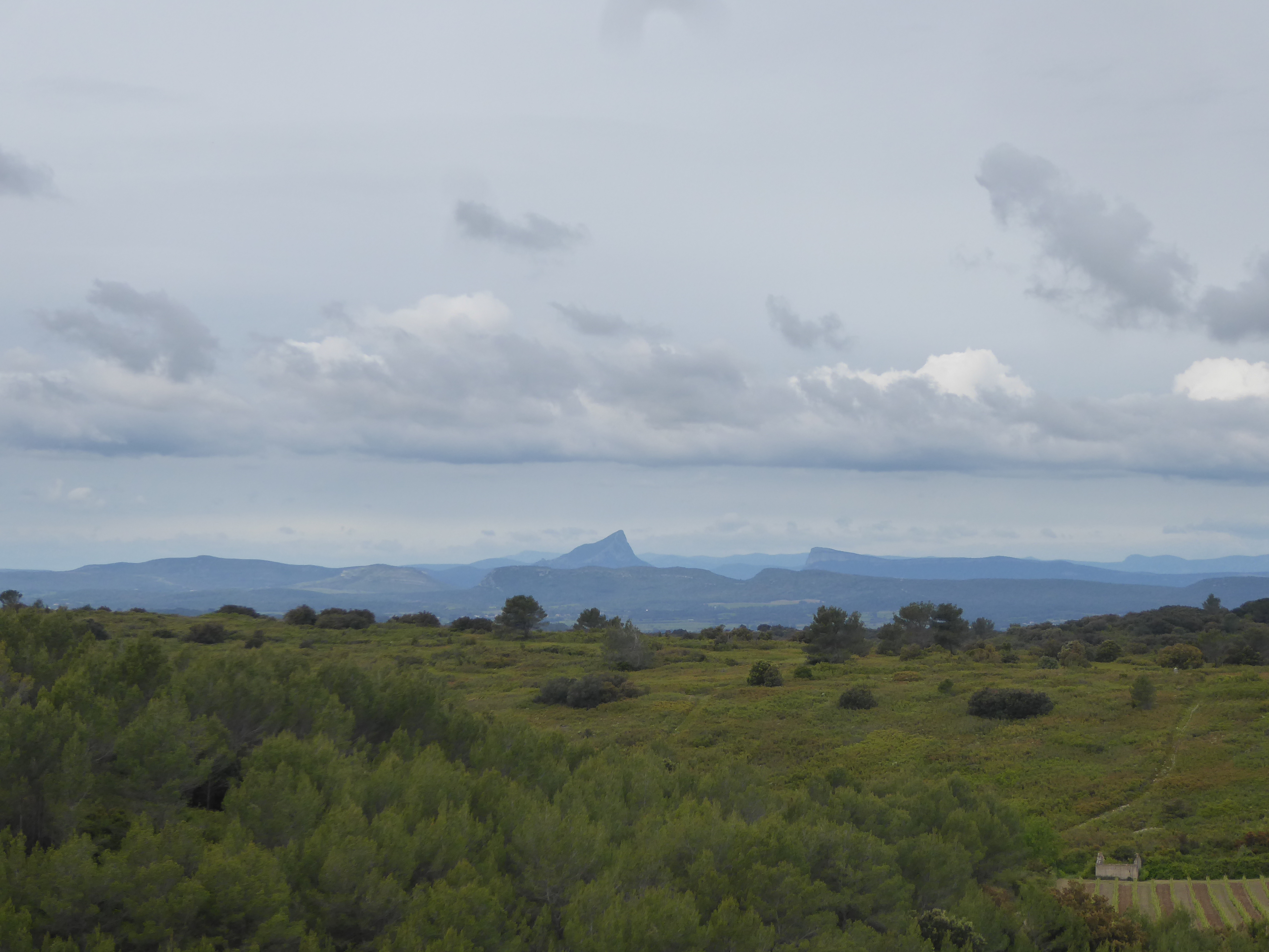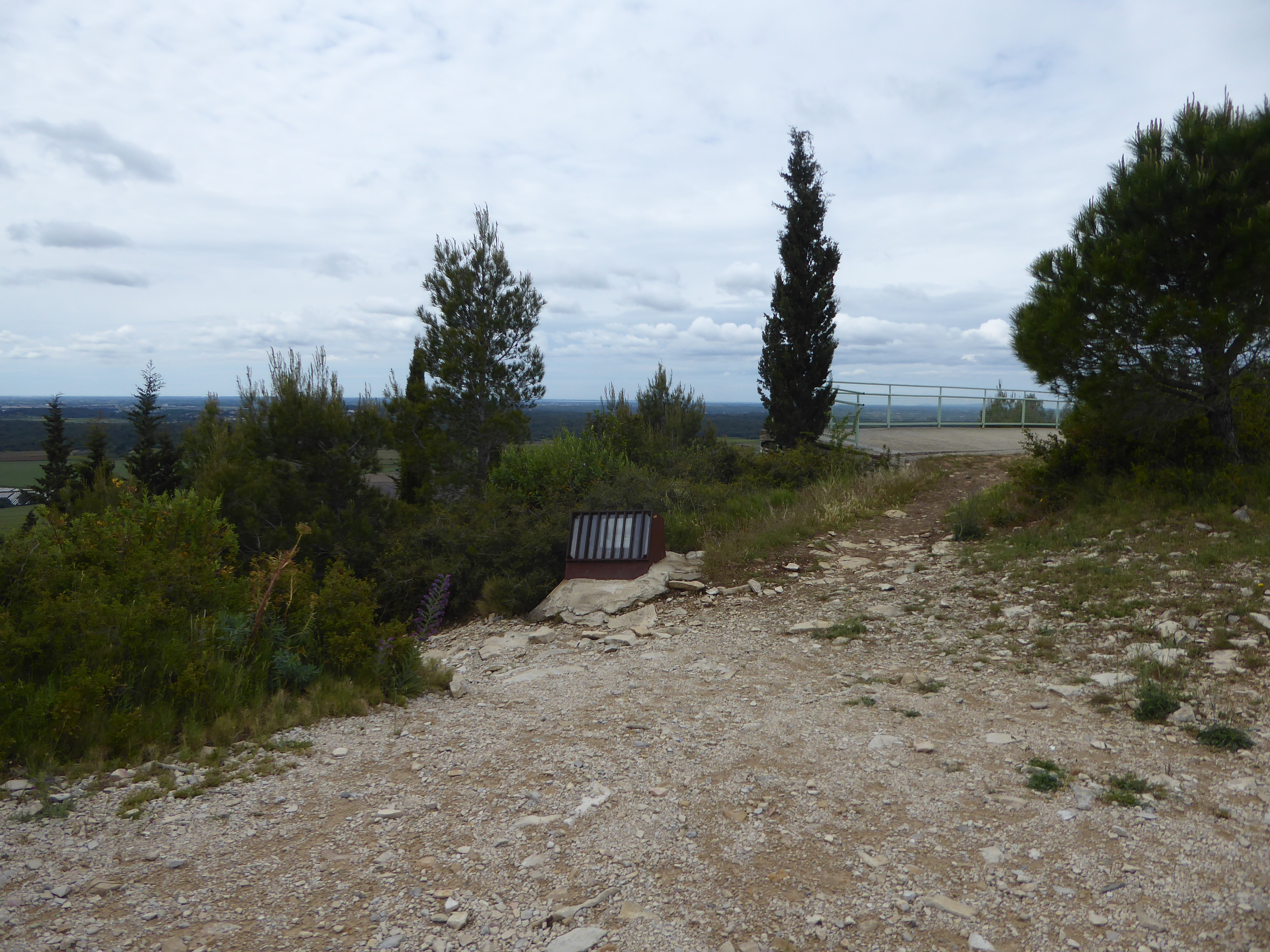 Arrivée au sommet du Roc de Gachone (167 m) : panorama très étendu sur la plaine gardoise et héraultaise ... les premiers sommets des Cévennes sont également visibles ainsi que ceux des Alpilles
