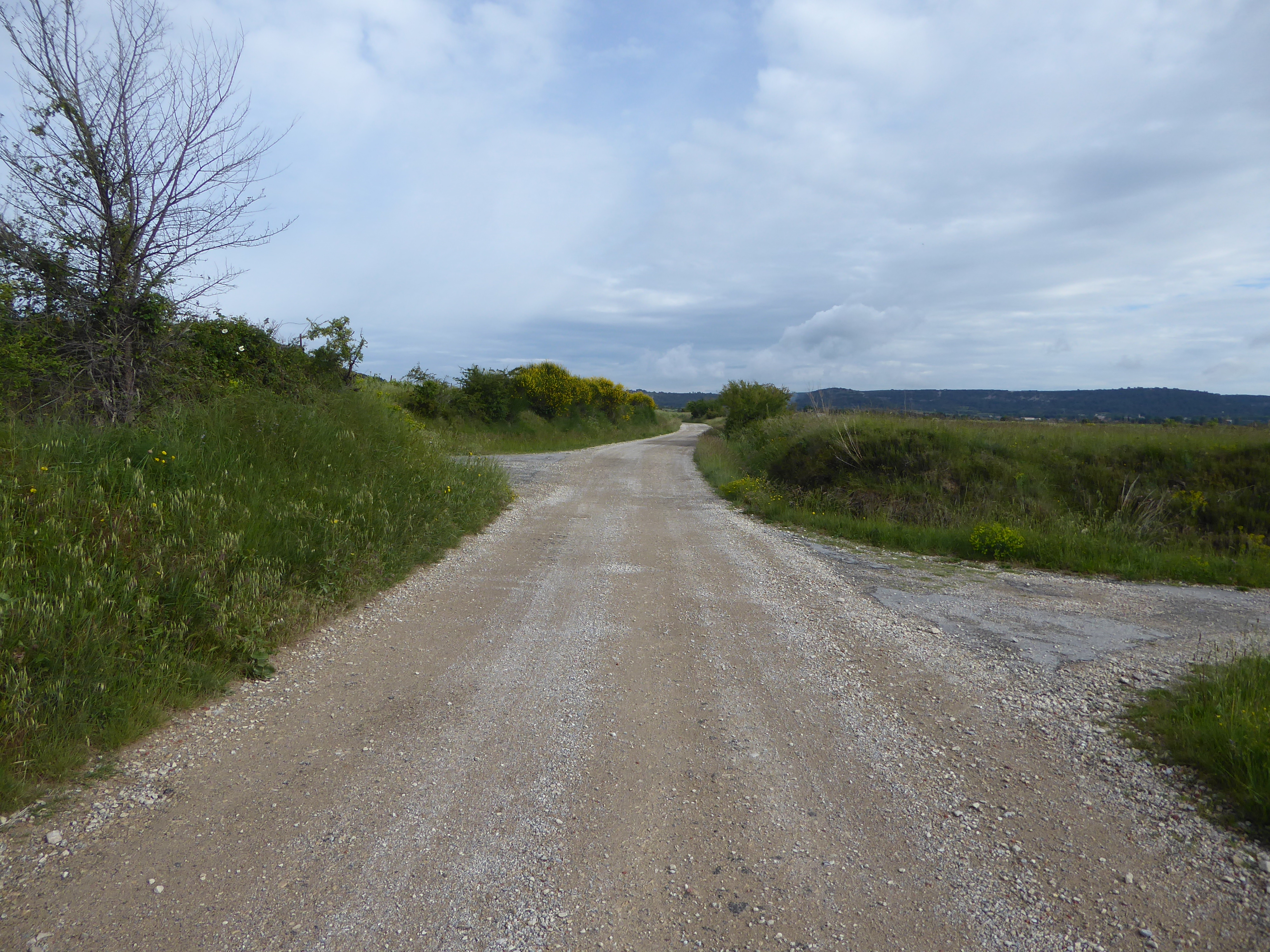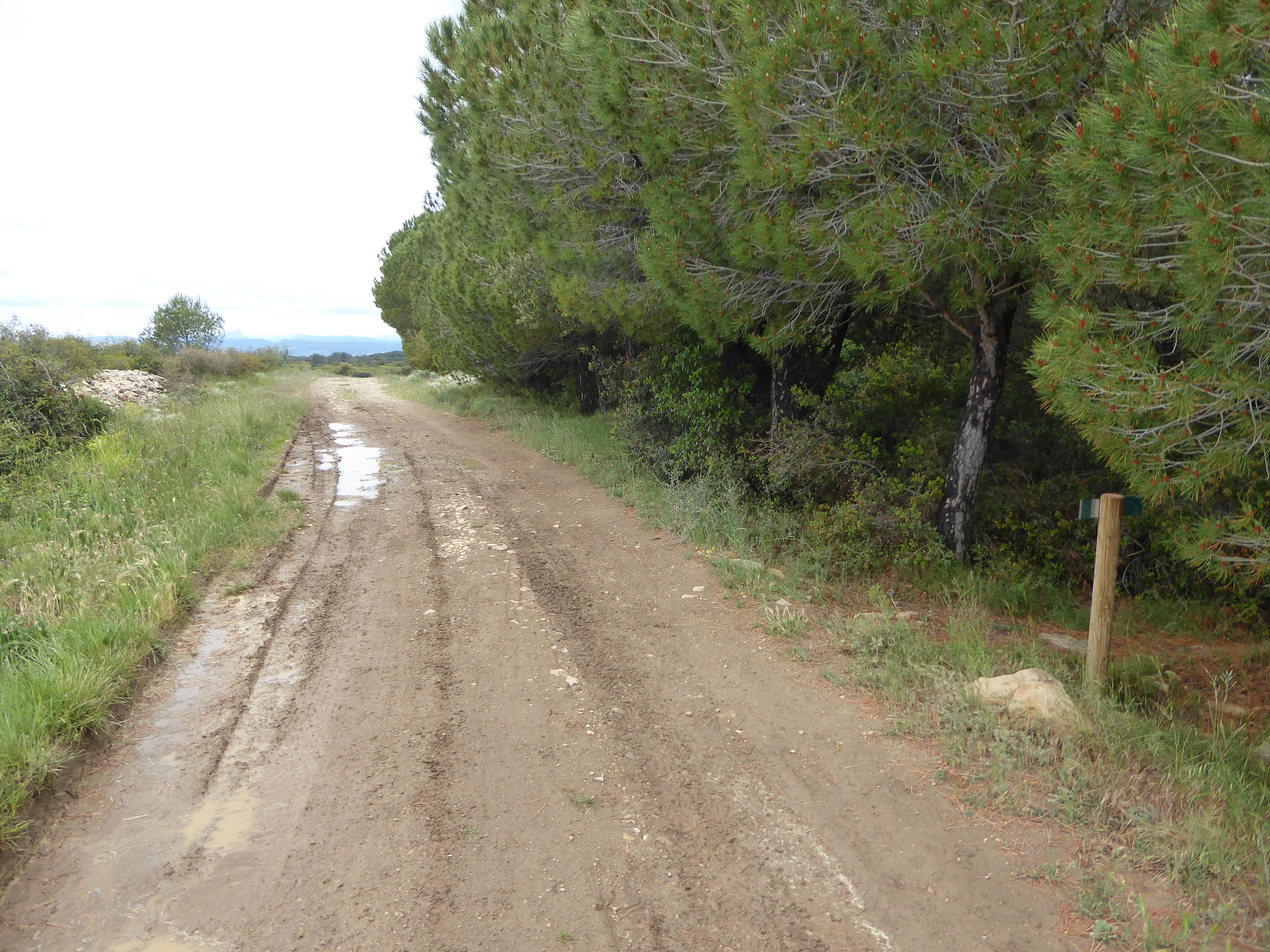 Ournèzes (79 m) : suivre la piste partant sur la gauche direction Calvisson, balisé sporadiquement en jaune