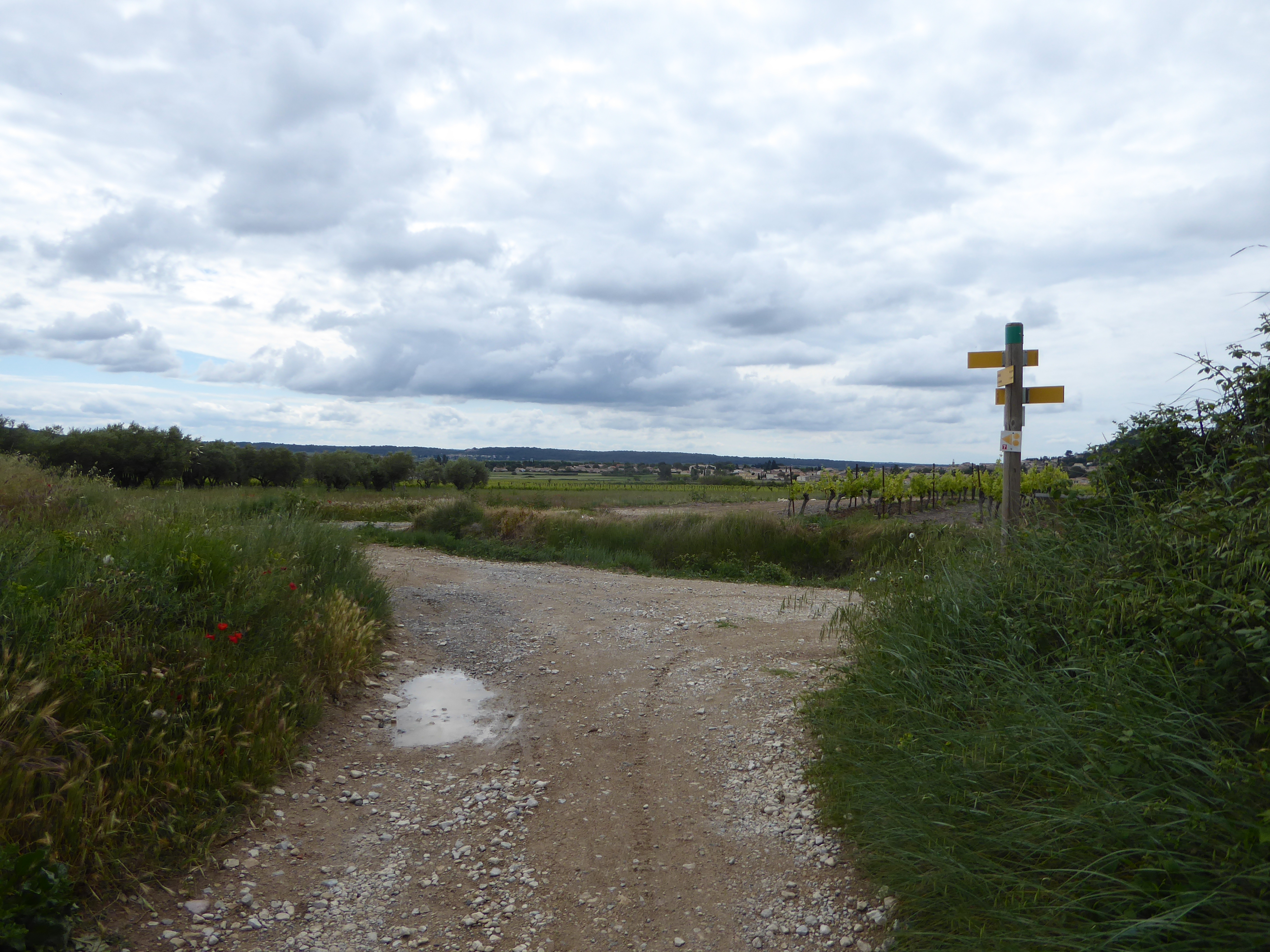 Chemin du Font de Coucou (61 m) : suivre la route partant sur la droite direction Calvisson, balisé en jaune dorénavant