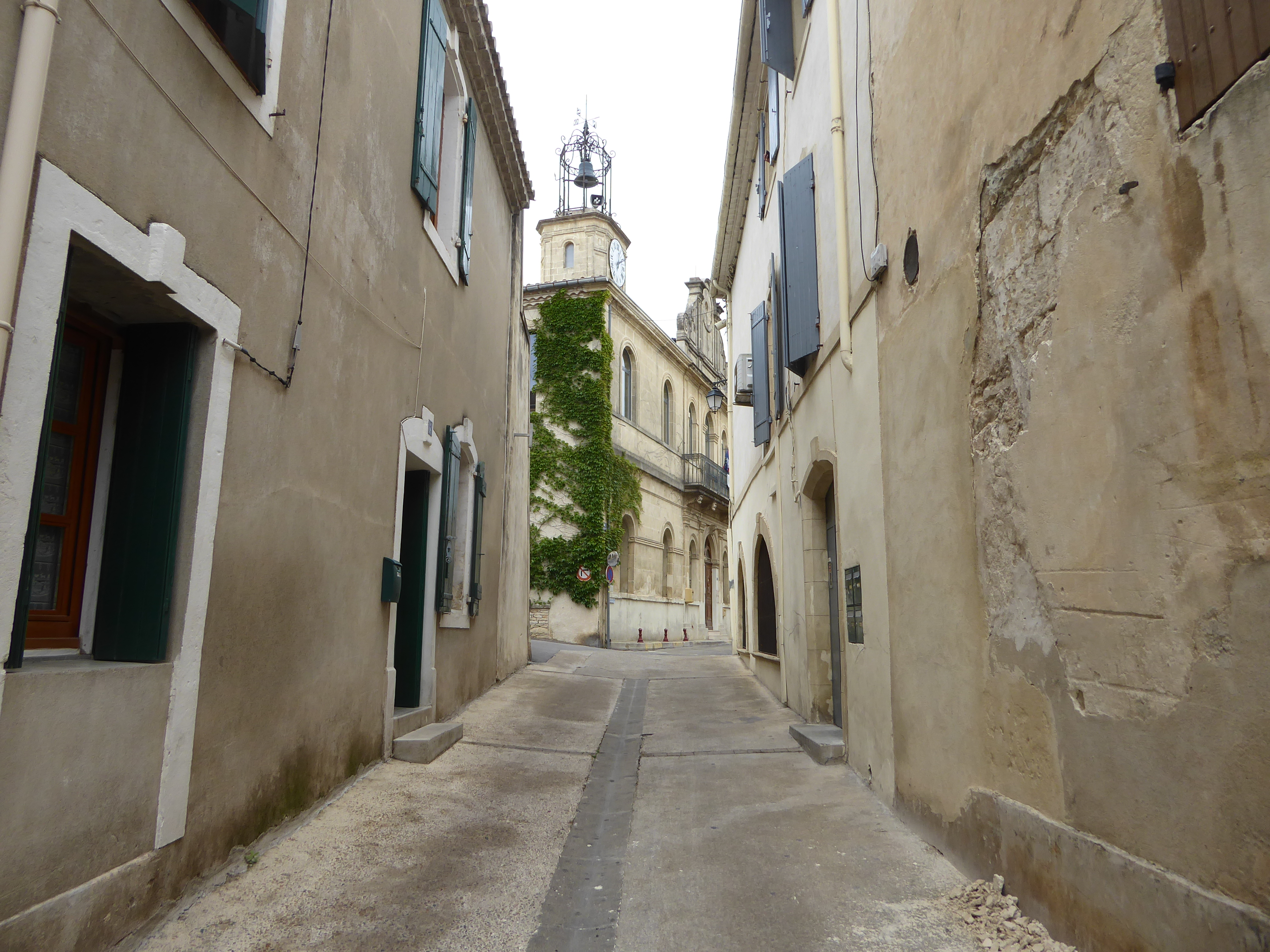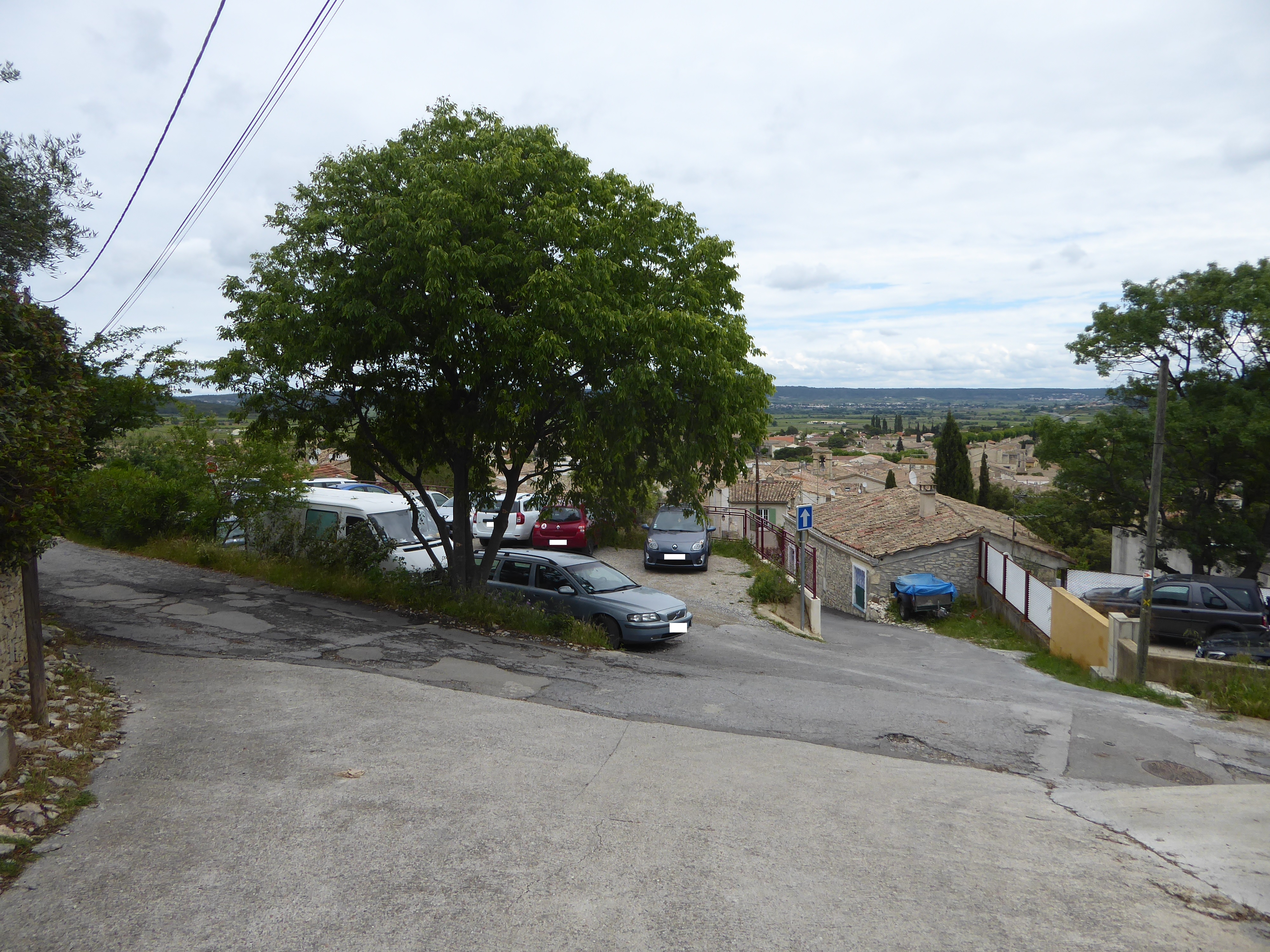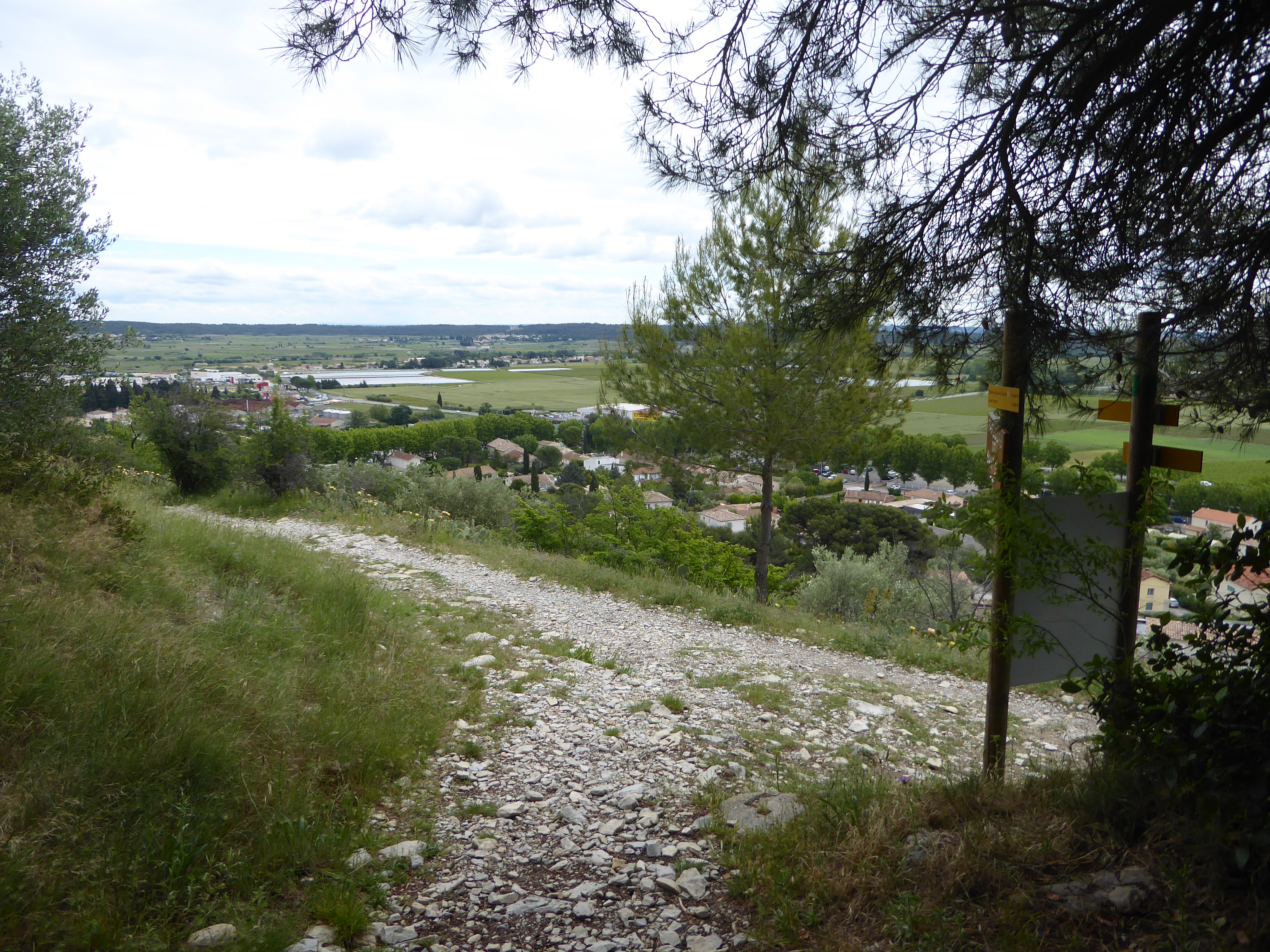 Roc de Gachone (95 m) : suivre la rue descendant sur la gauche direction Calvisson, balisé en jaune (bien suivre les balises jaunes aux différentes intersections dans les rues du village)