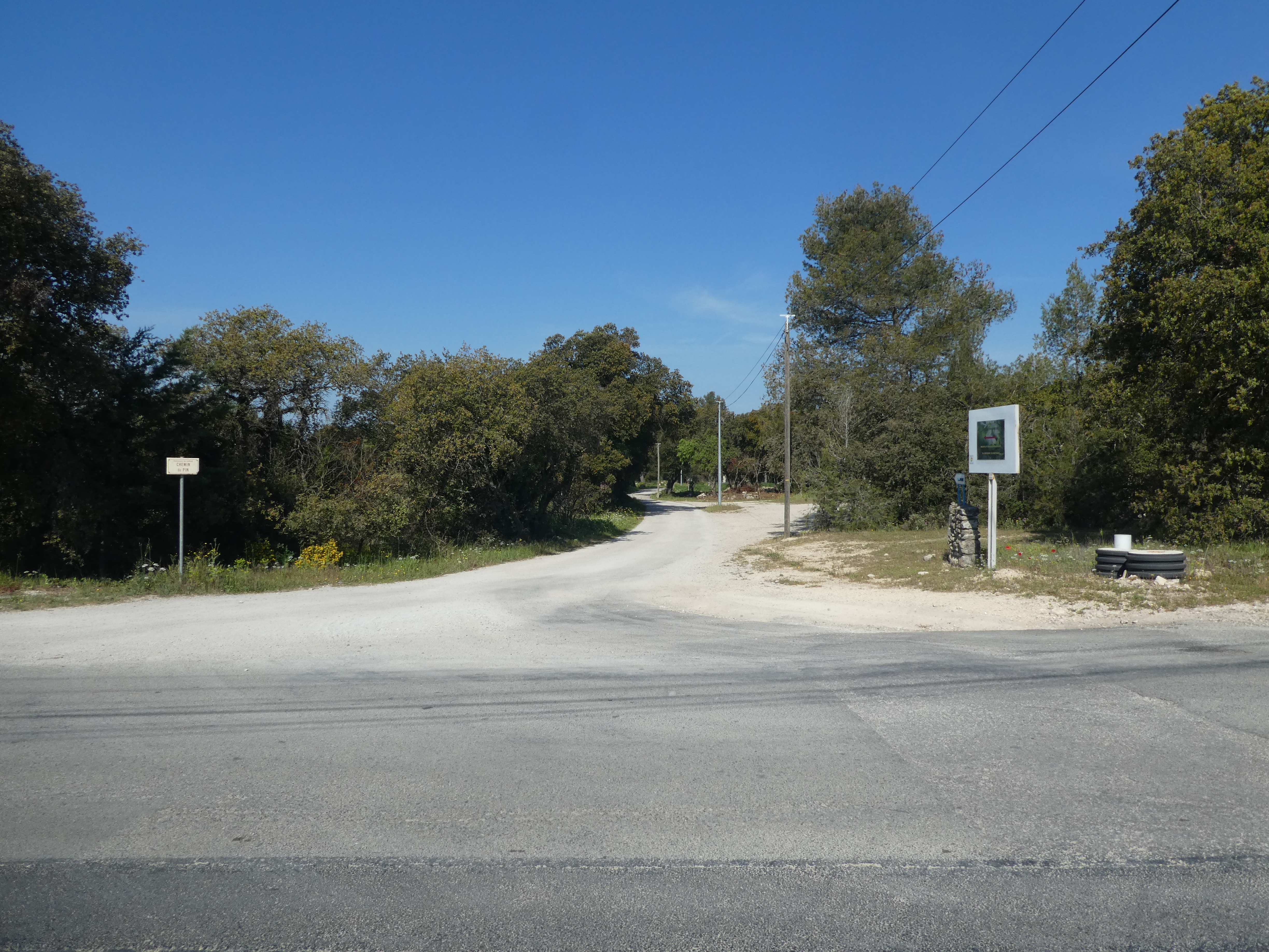 A ce croisement (200 mètres après le lieu-dit "le Frigoulier"), suivre la route partant sur la droite direction Chemin du Grès, balisé en jaune