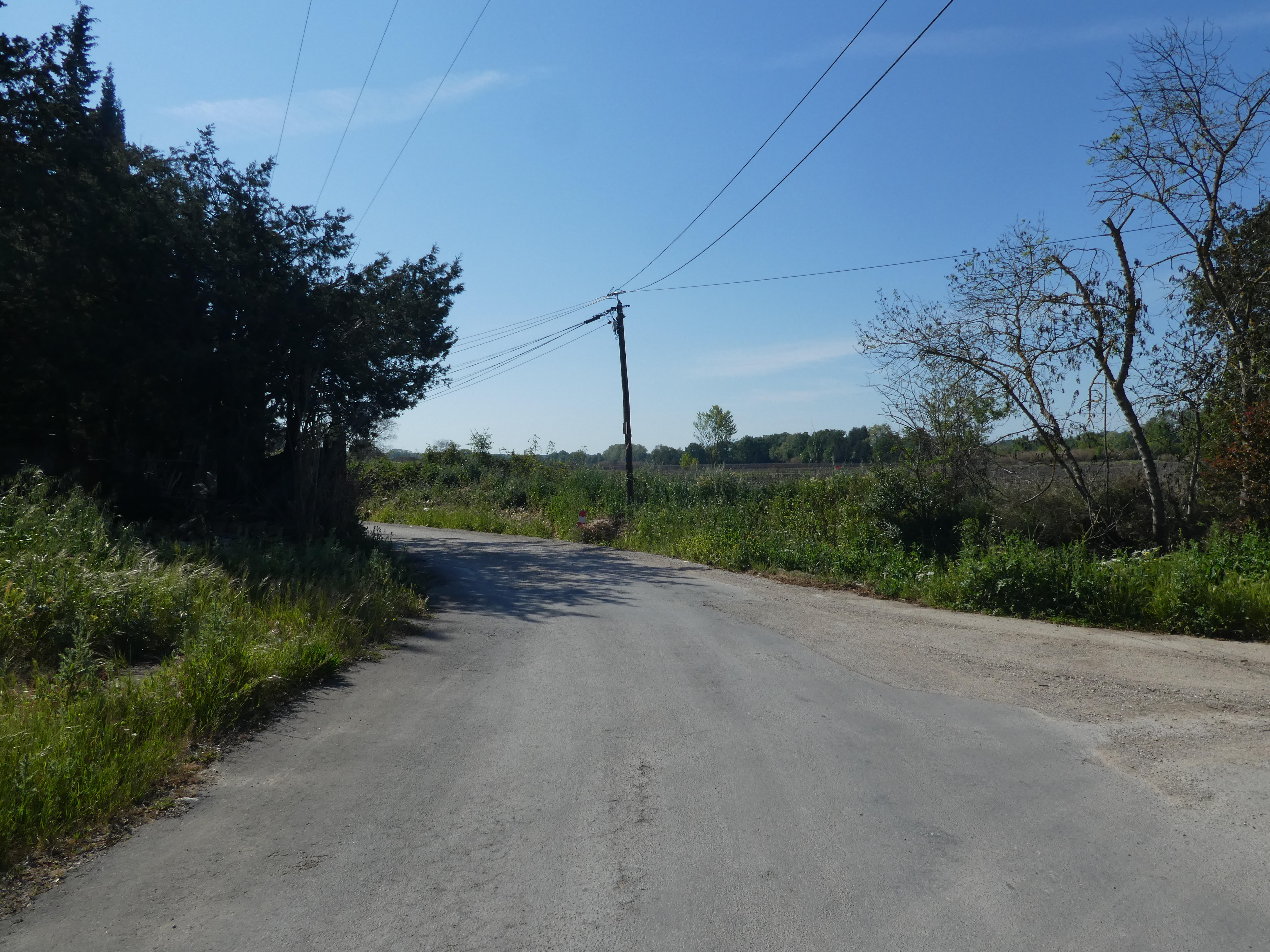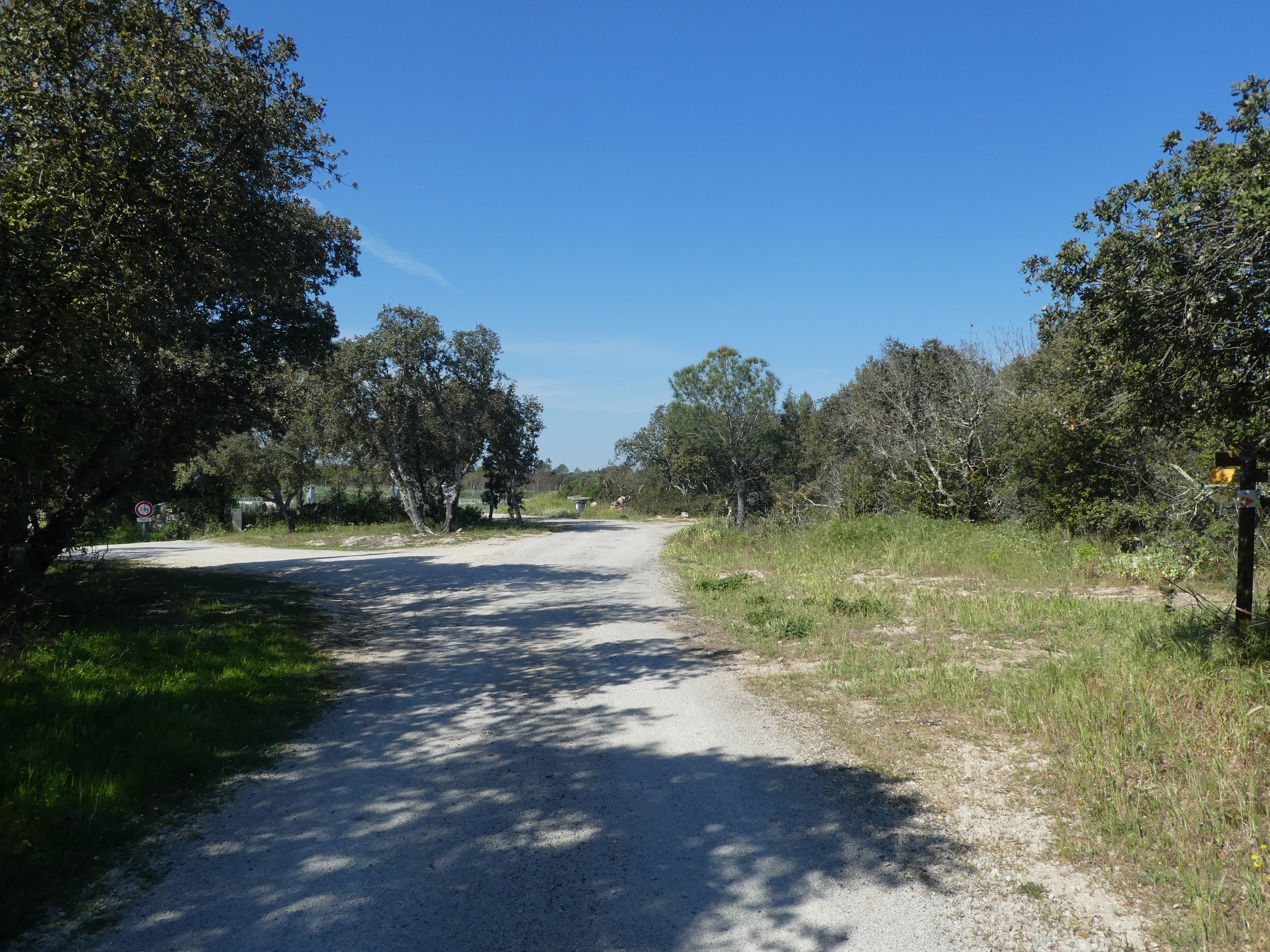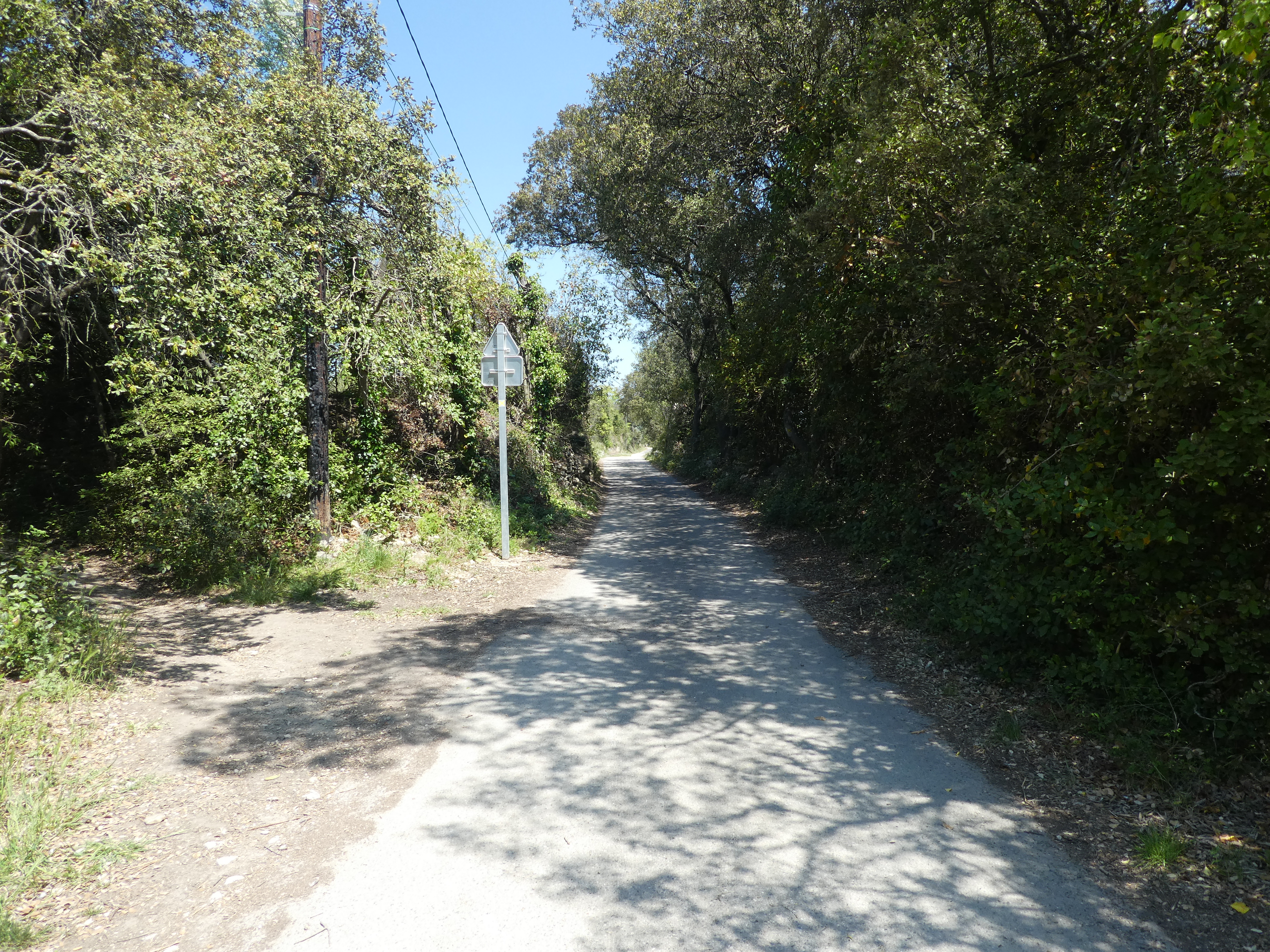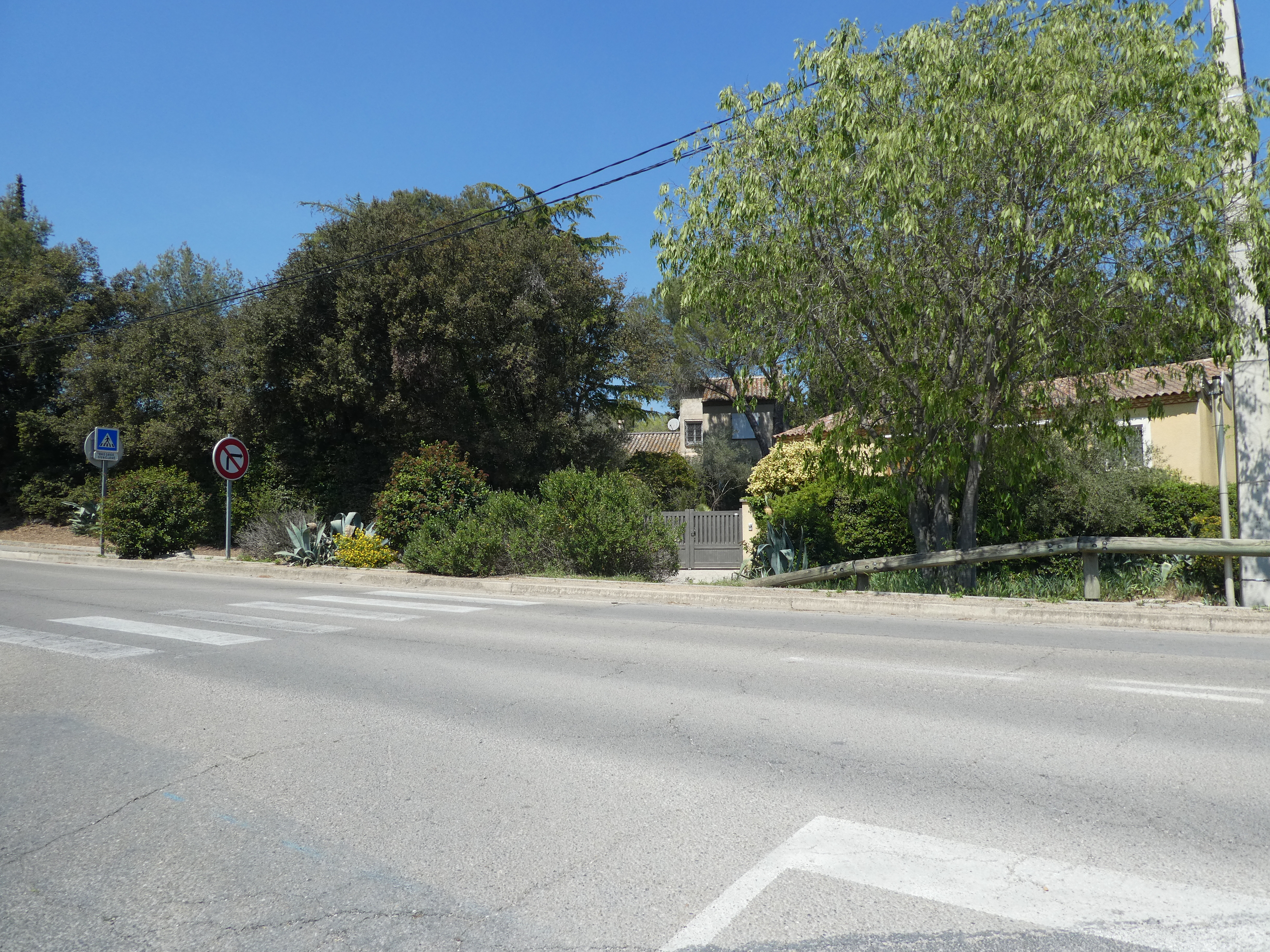 A cette intersection (500 mètres après le lieu-dit "Chapelle Saint-Nazaire"), suivre la route partant sur la gauche direction Aubais - Mairie