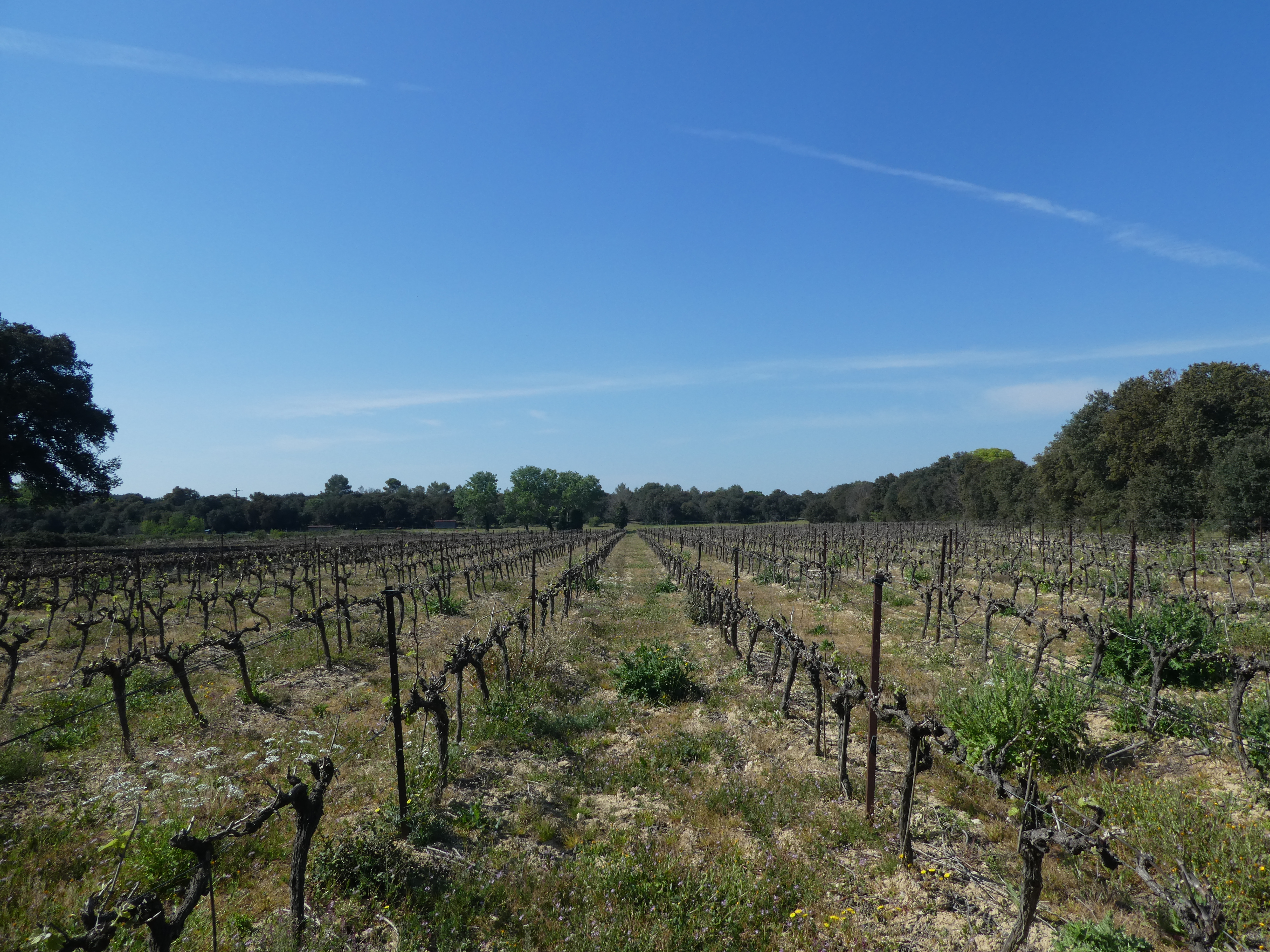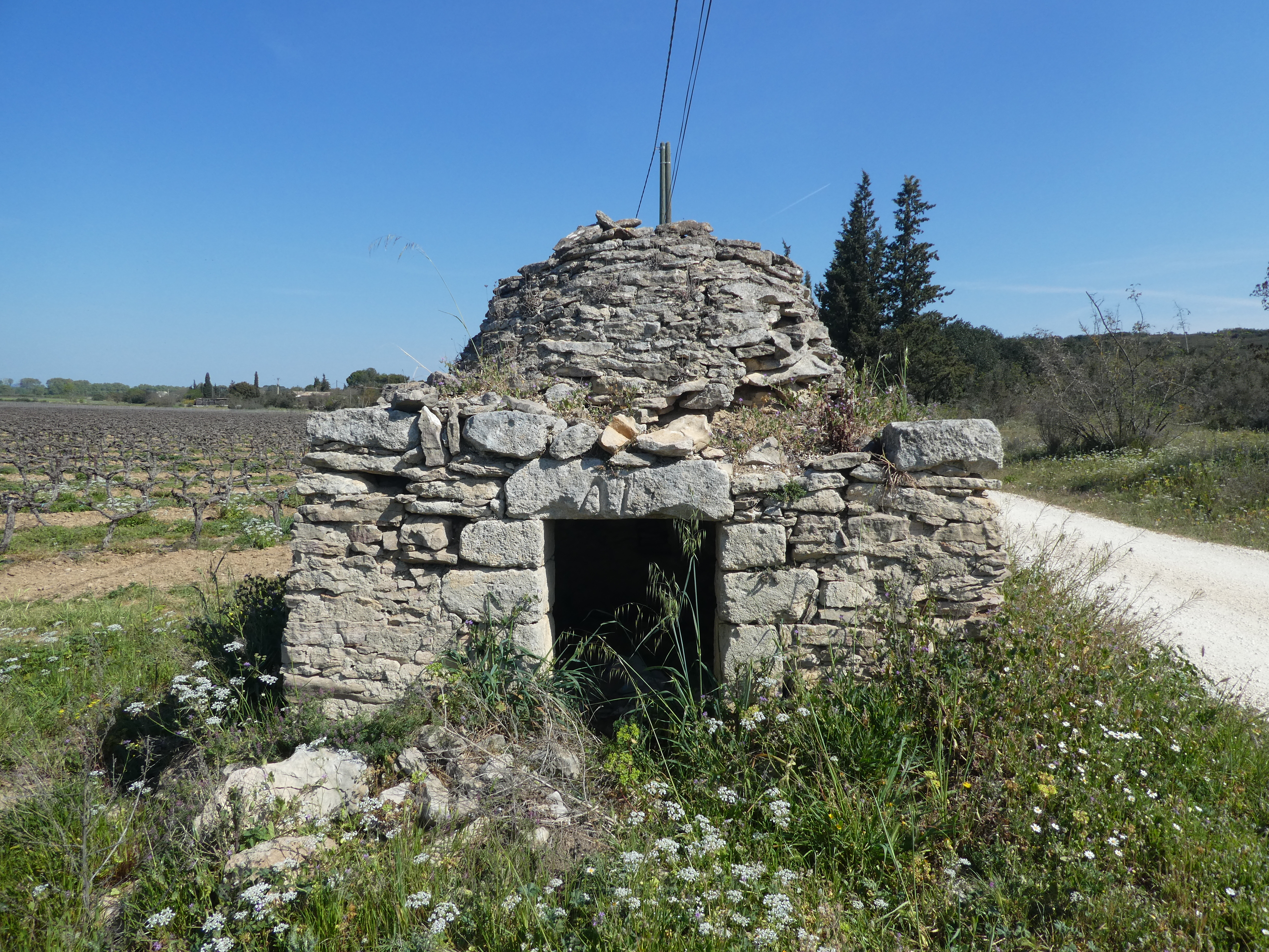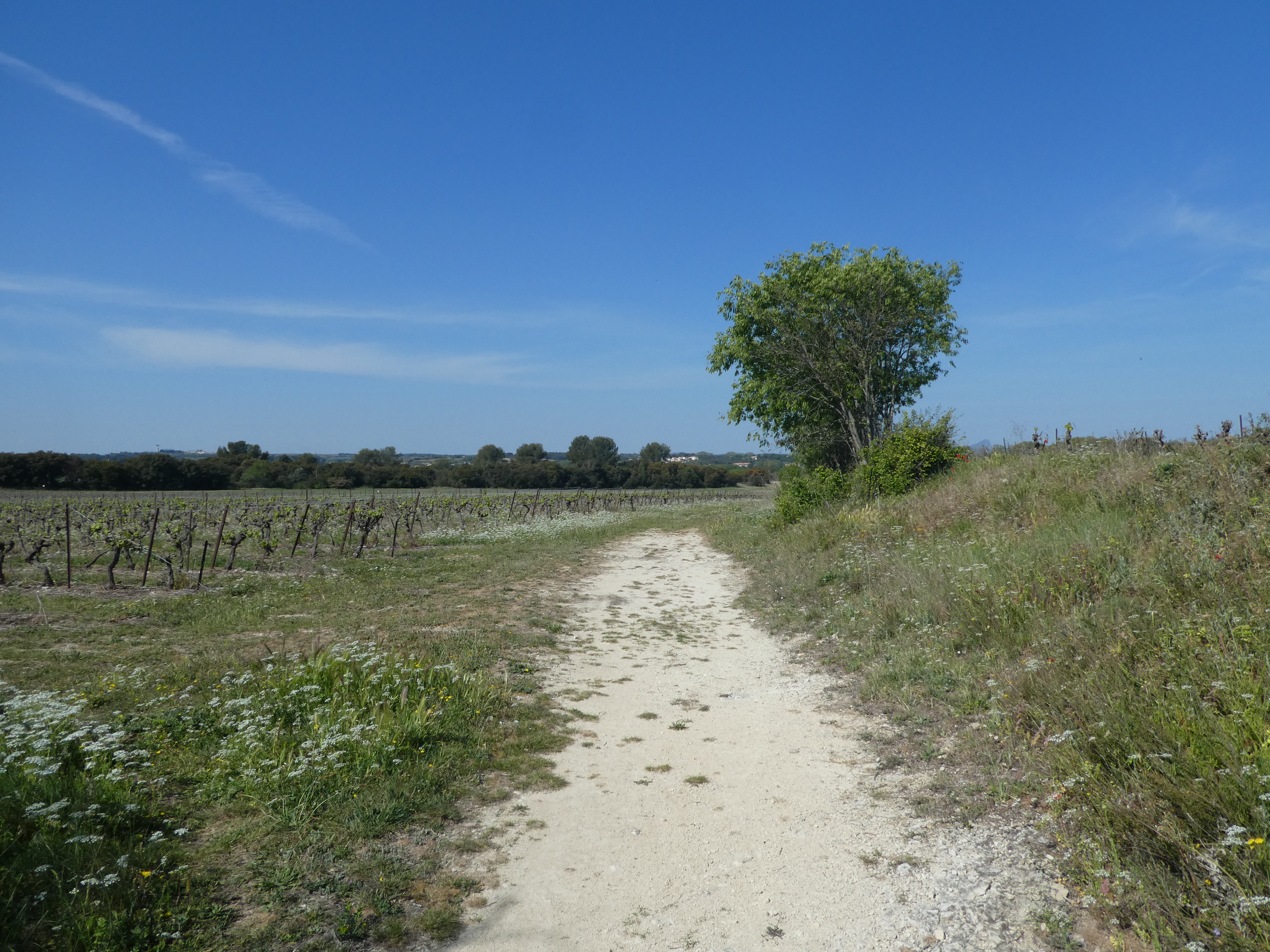 Aubais (70 m) : suivre la route partant tout droit direction Junas, balisé en jaune