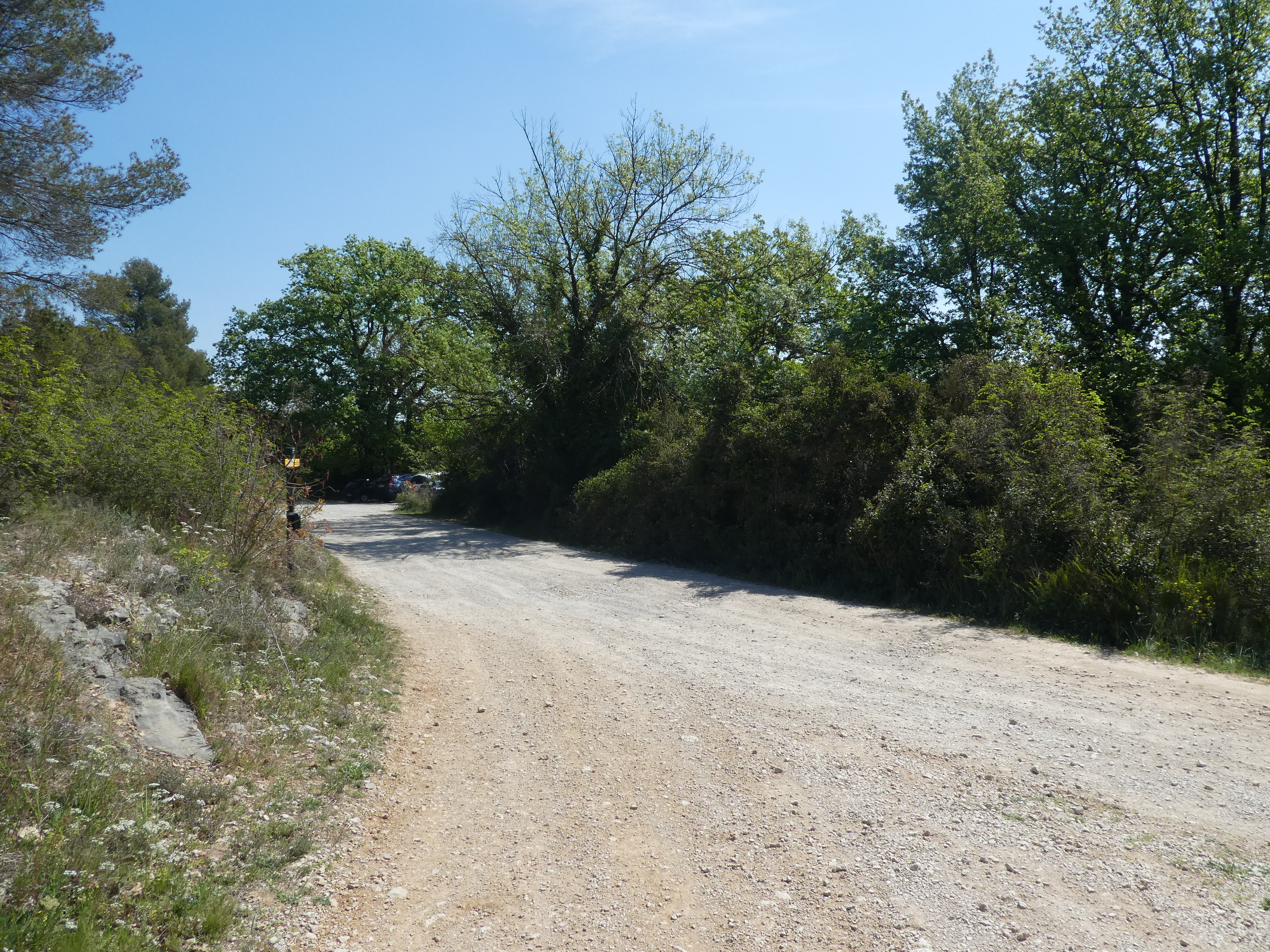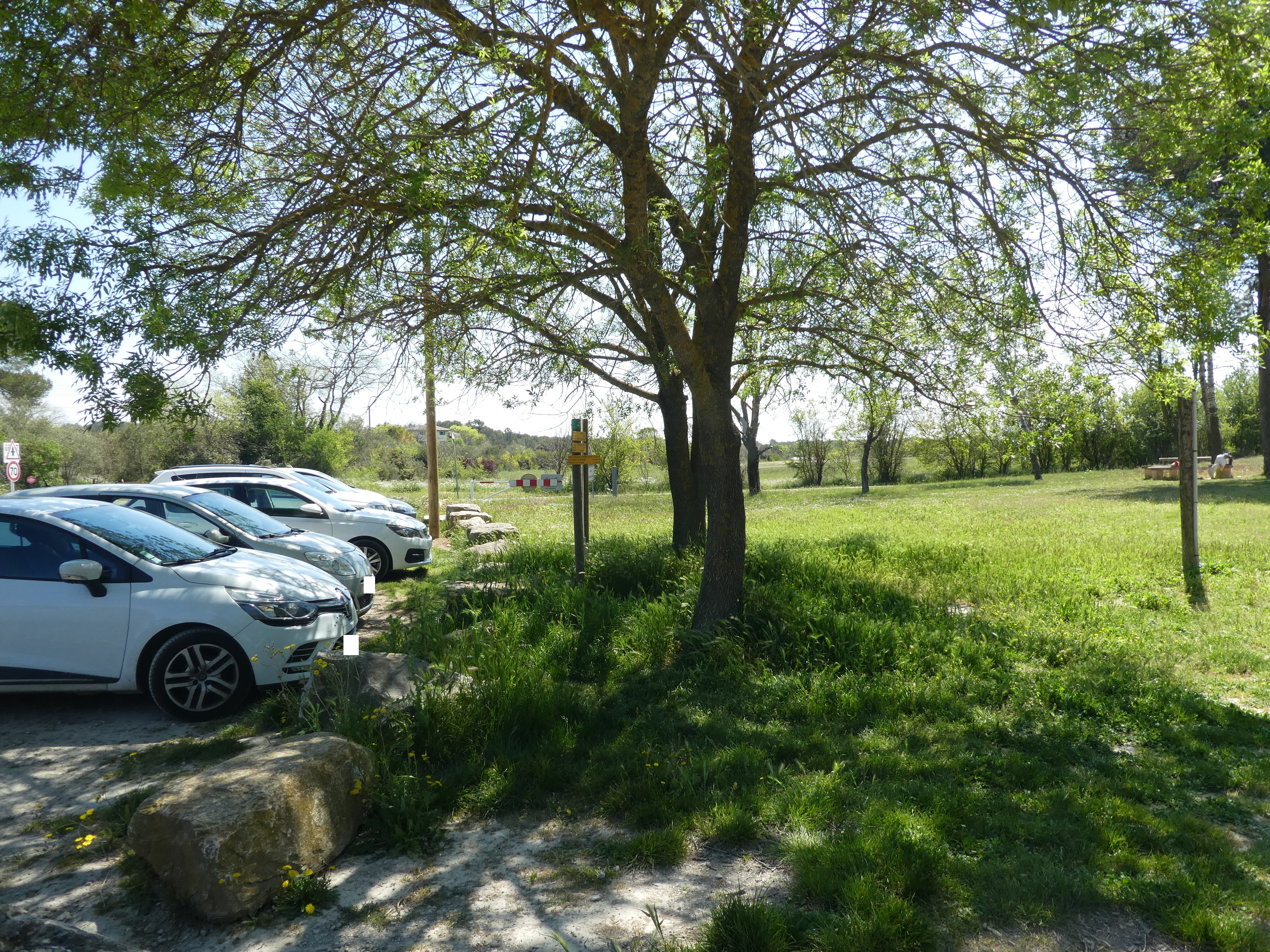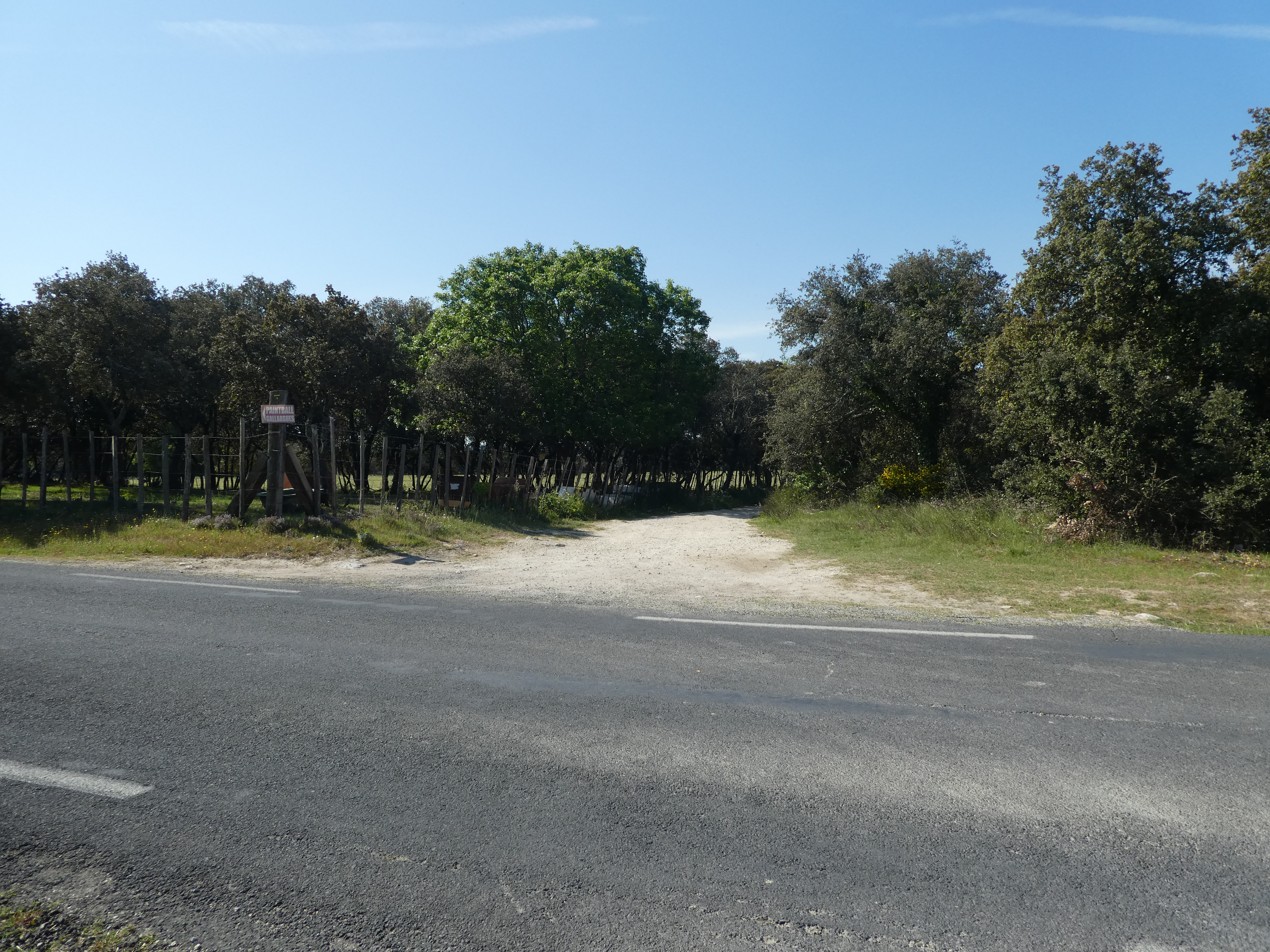 La Roque d'Aubais (19 m) : suivre la large piste partant légèrement sur la gauche direction Moulin de Carrière, balisé en jaune