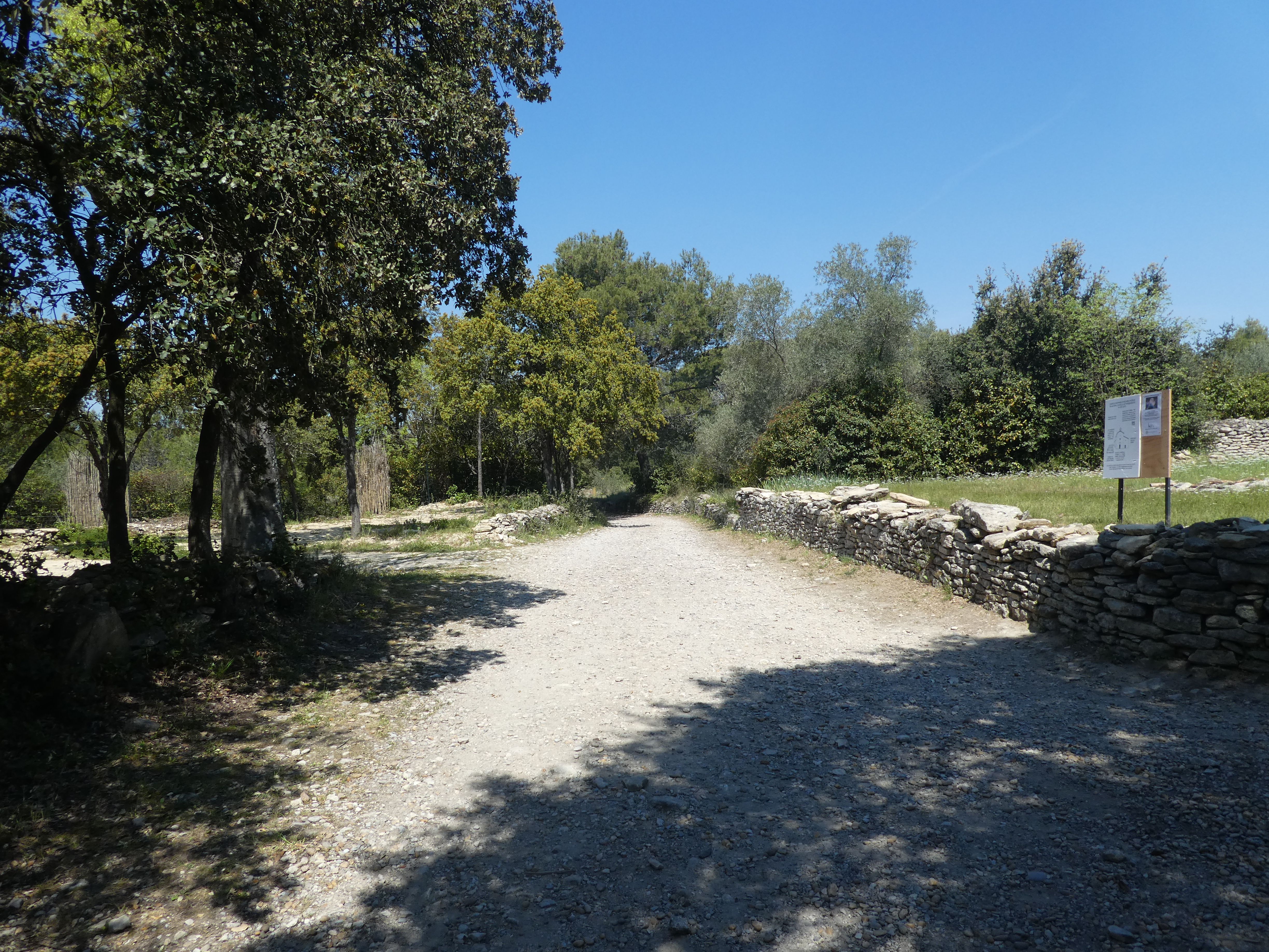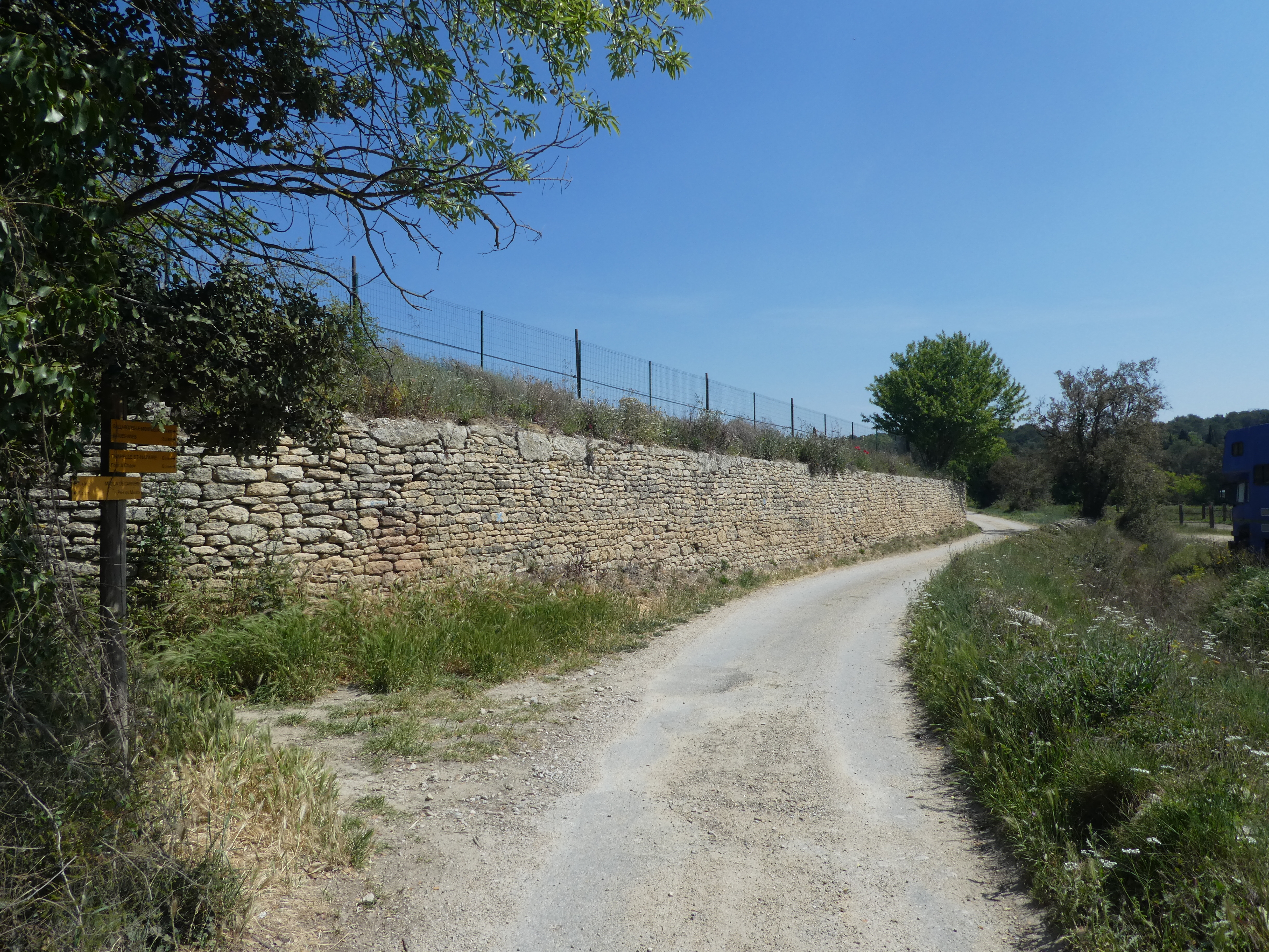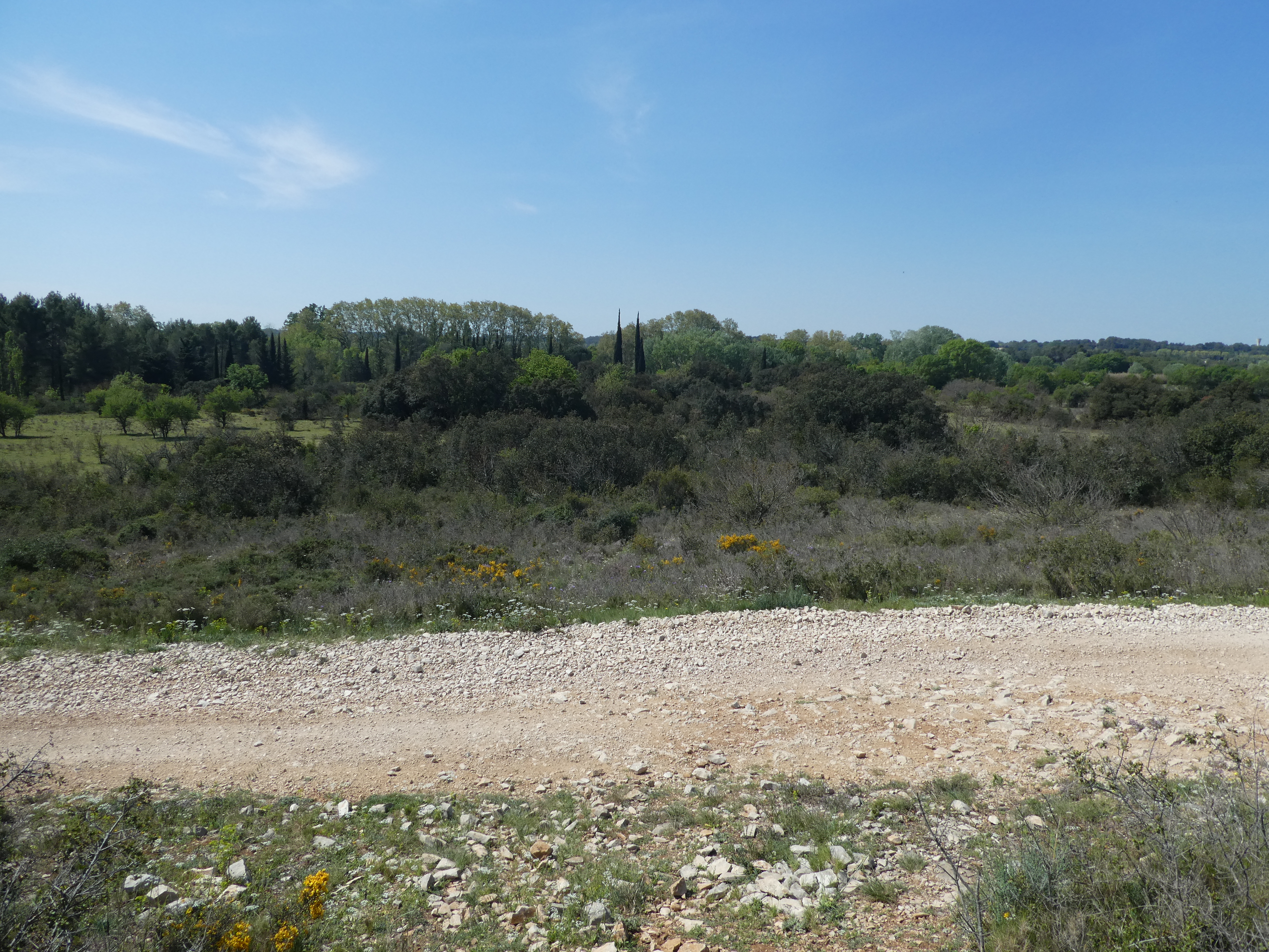 La Roque d'Aubais (19 m) : suivre la large piste partant légèrement sur la gauche direction Moulin de Carrière, balisé en jaune