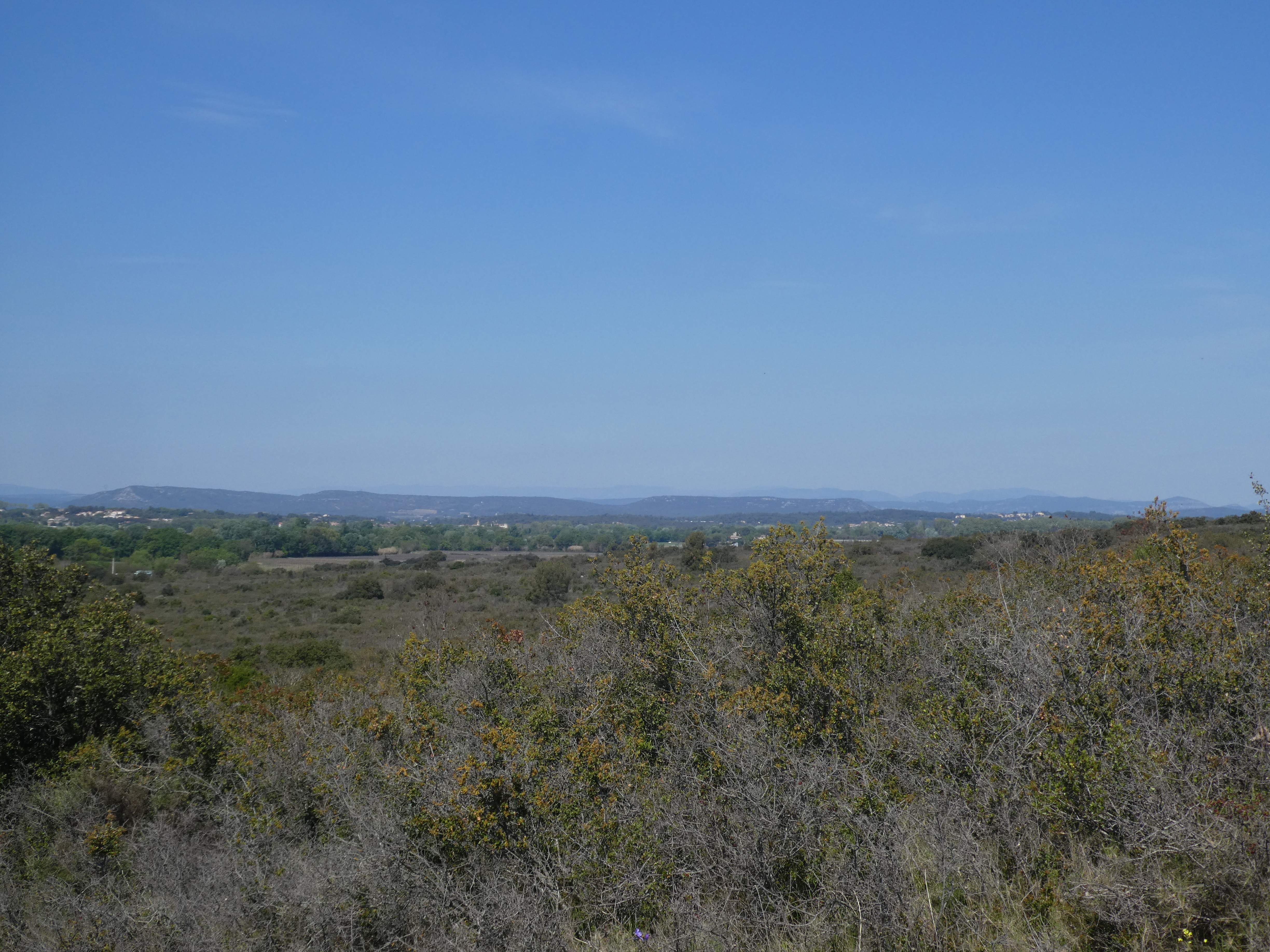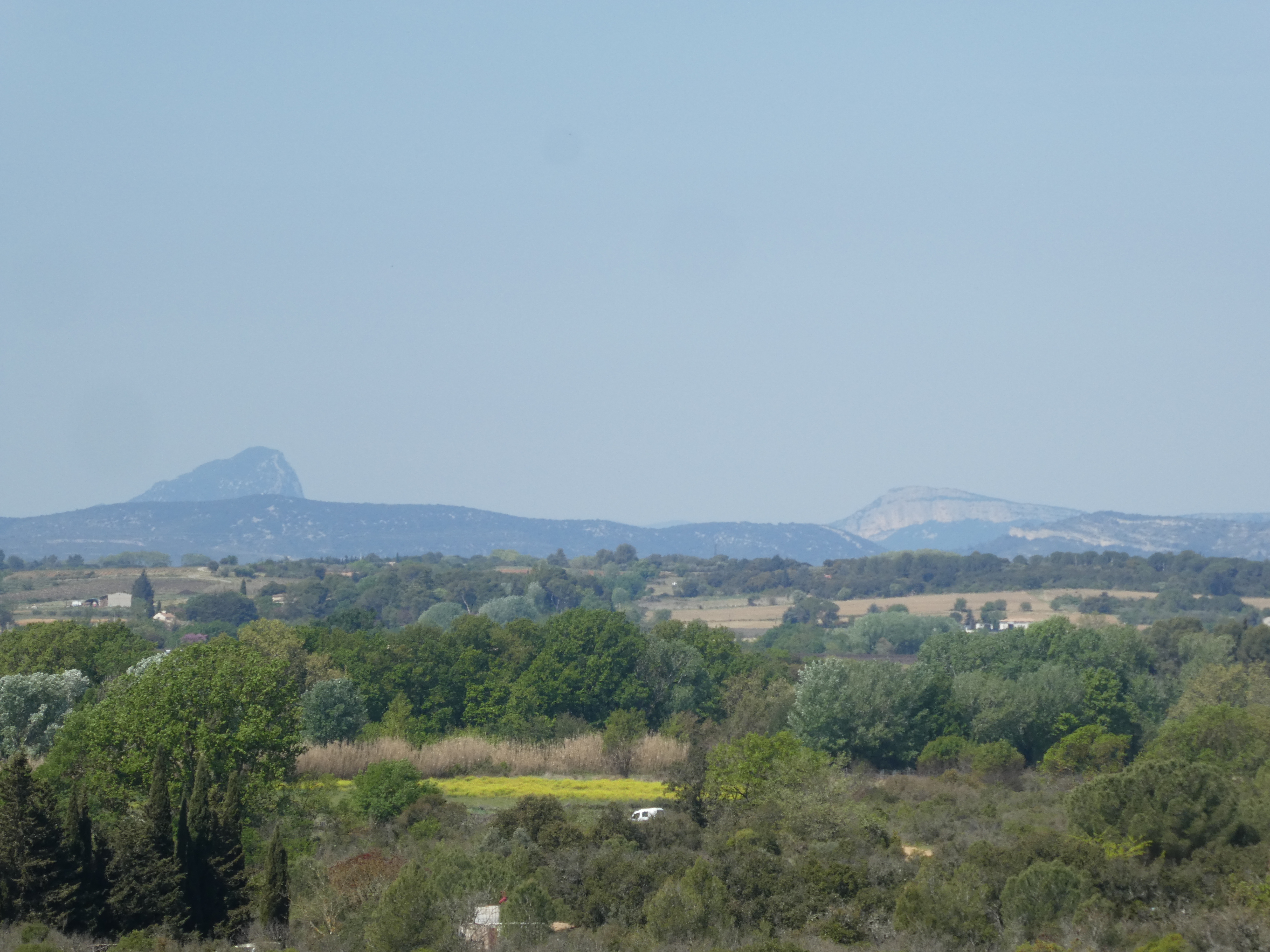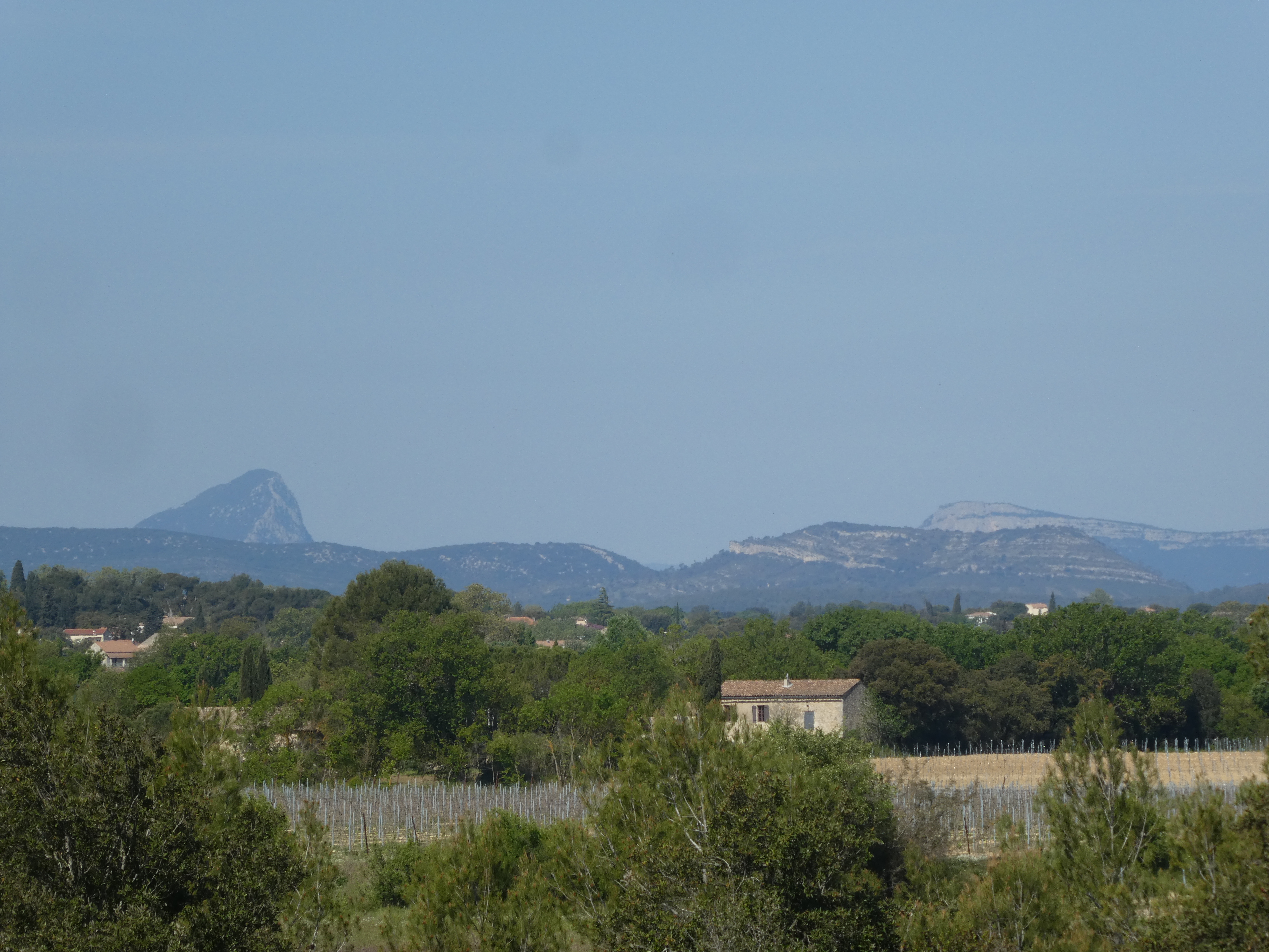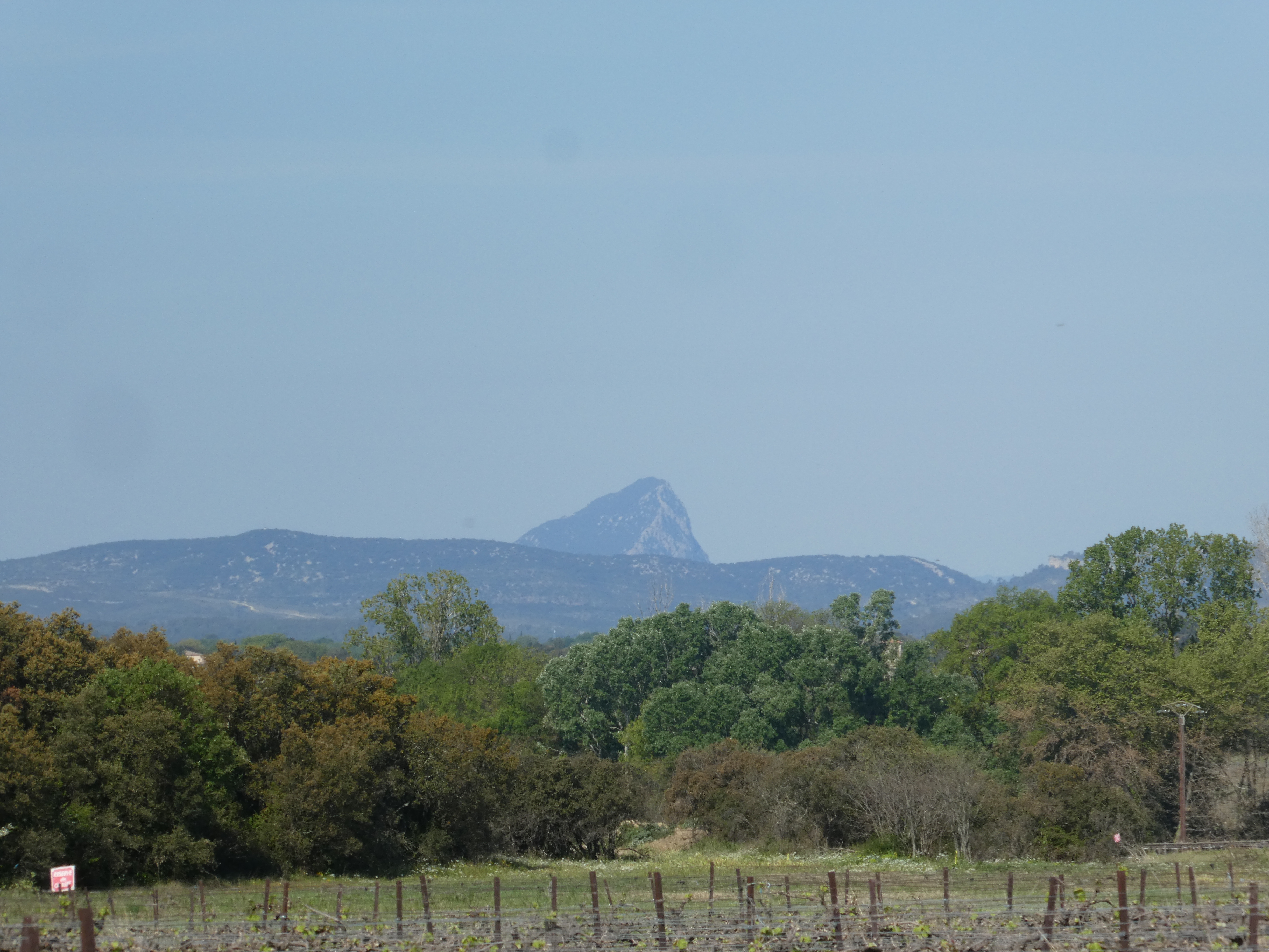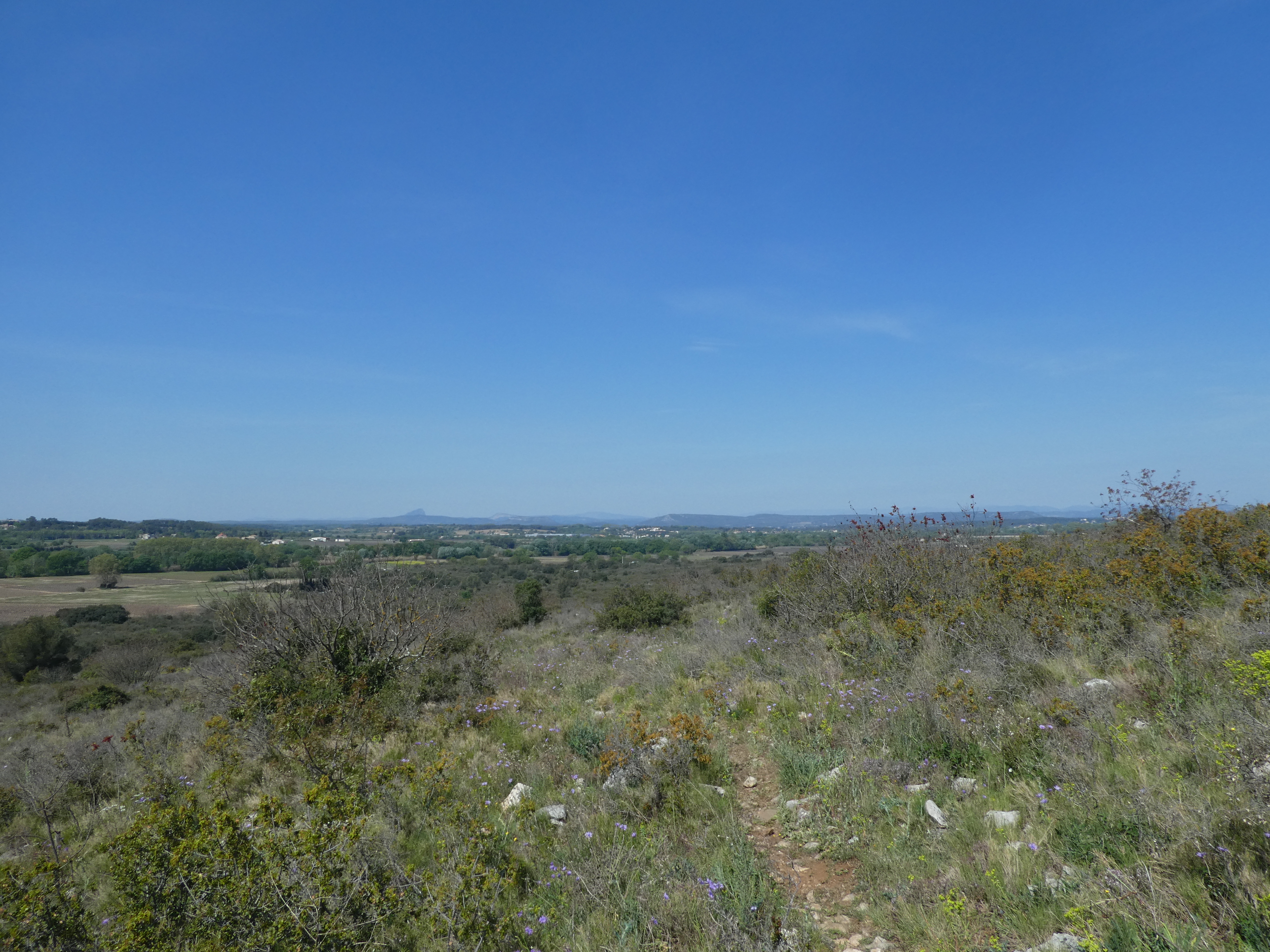 Vue en direction des sommets héraultais et notamment le Pic Saint-Loup à gauche