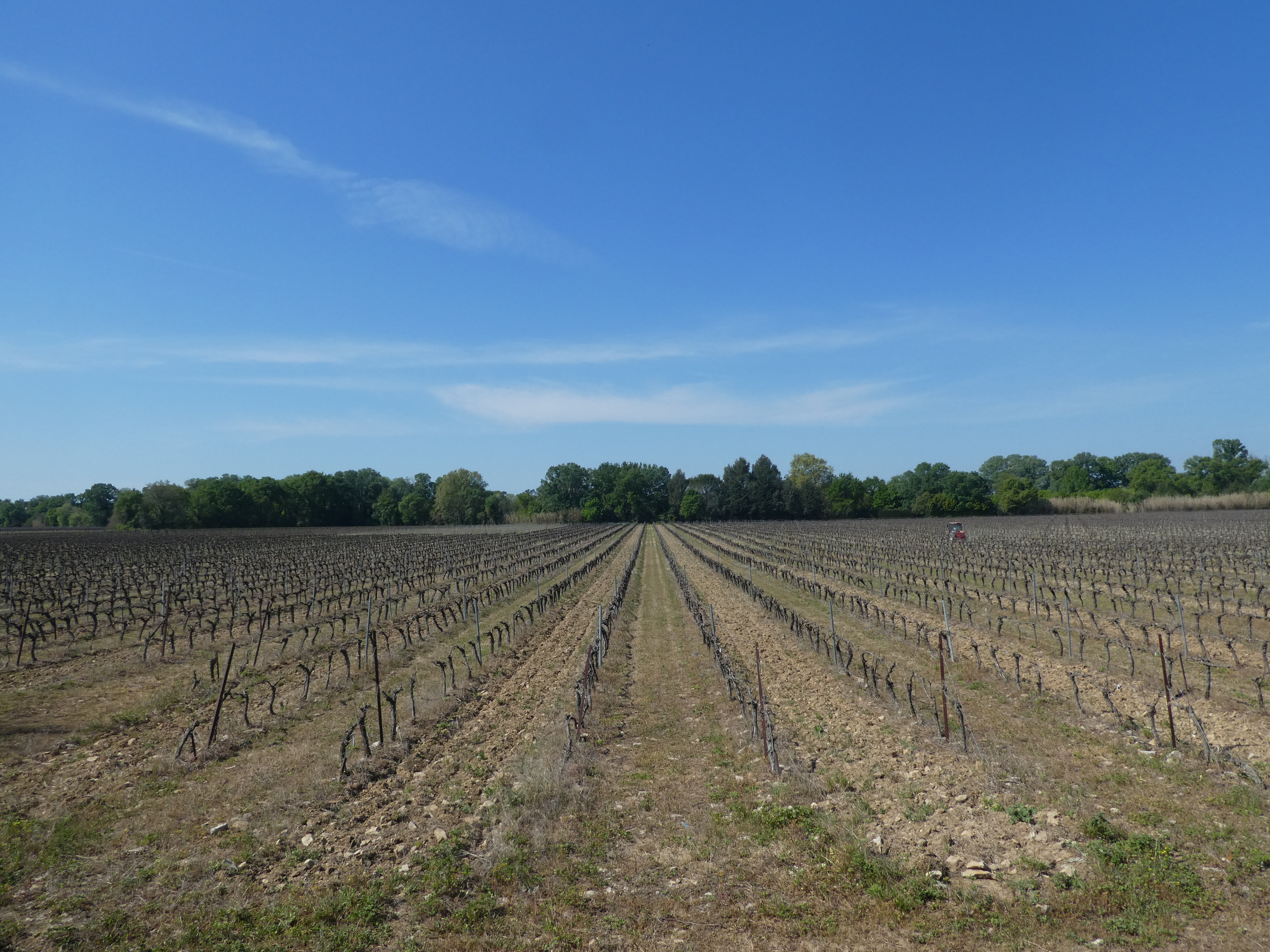 A ce croisement peu marqué (100 mètres après avoir traversé la D12), suivre le chemin partant sur la gauche et longeant les vignes direction le Frigoulier, balisé en jaune