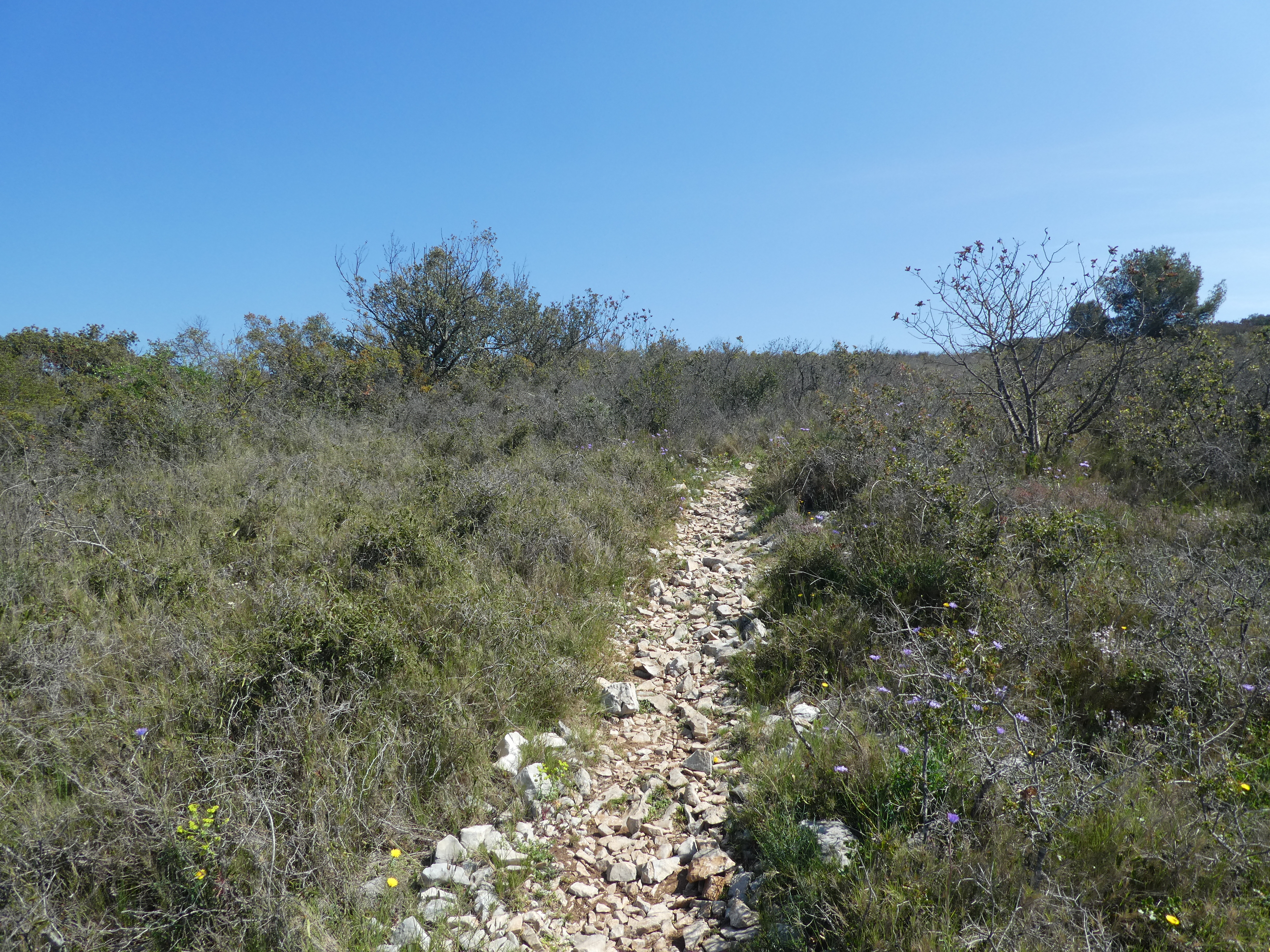 - Itinéraire de montée vers le sommet de la Roque d'Aubais non balisée mais cairnée