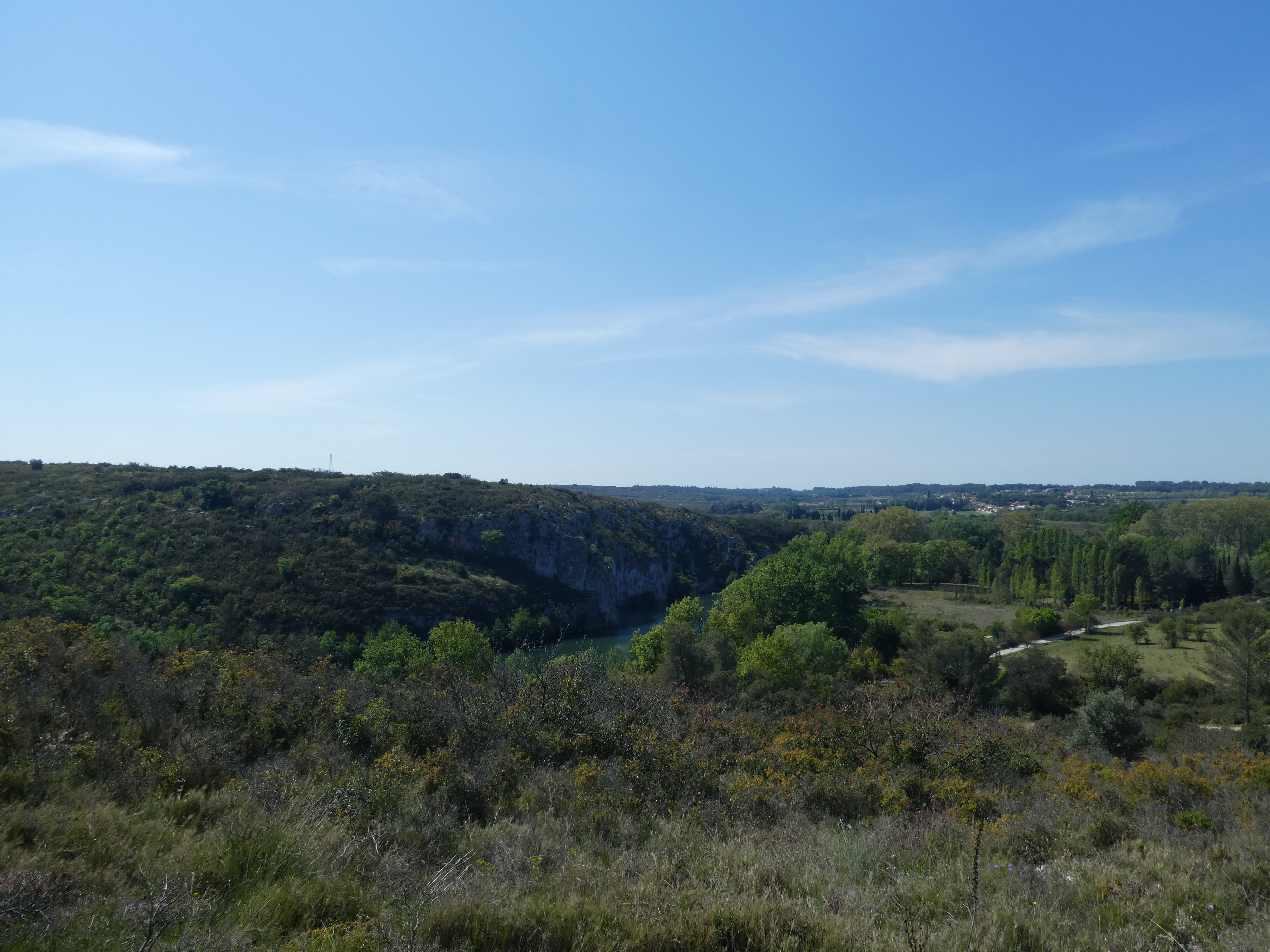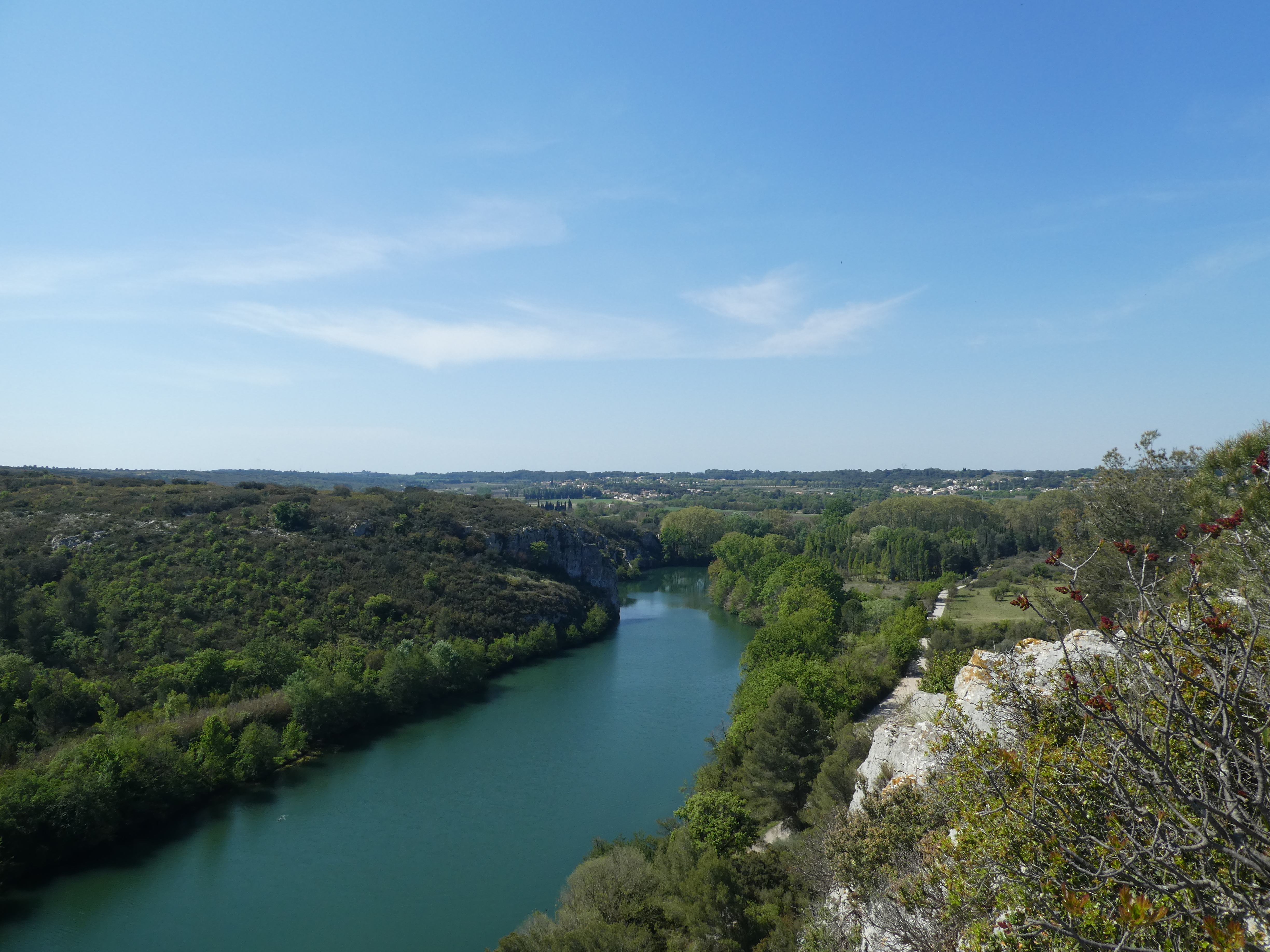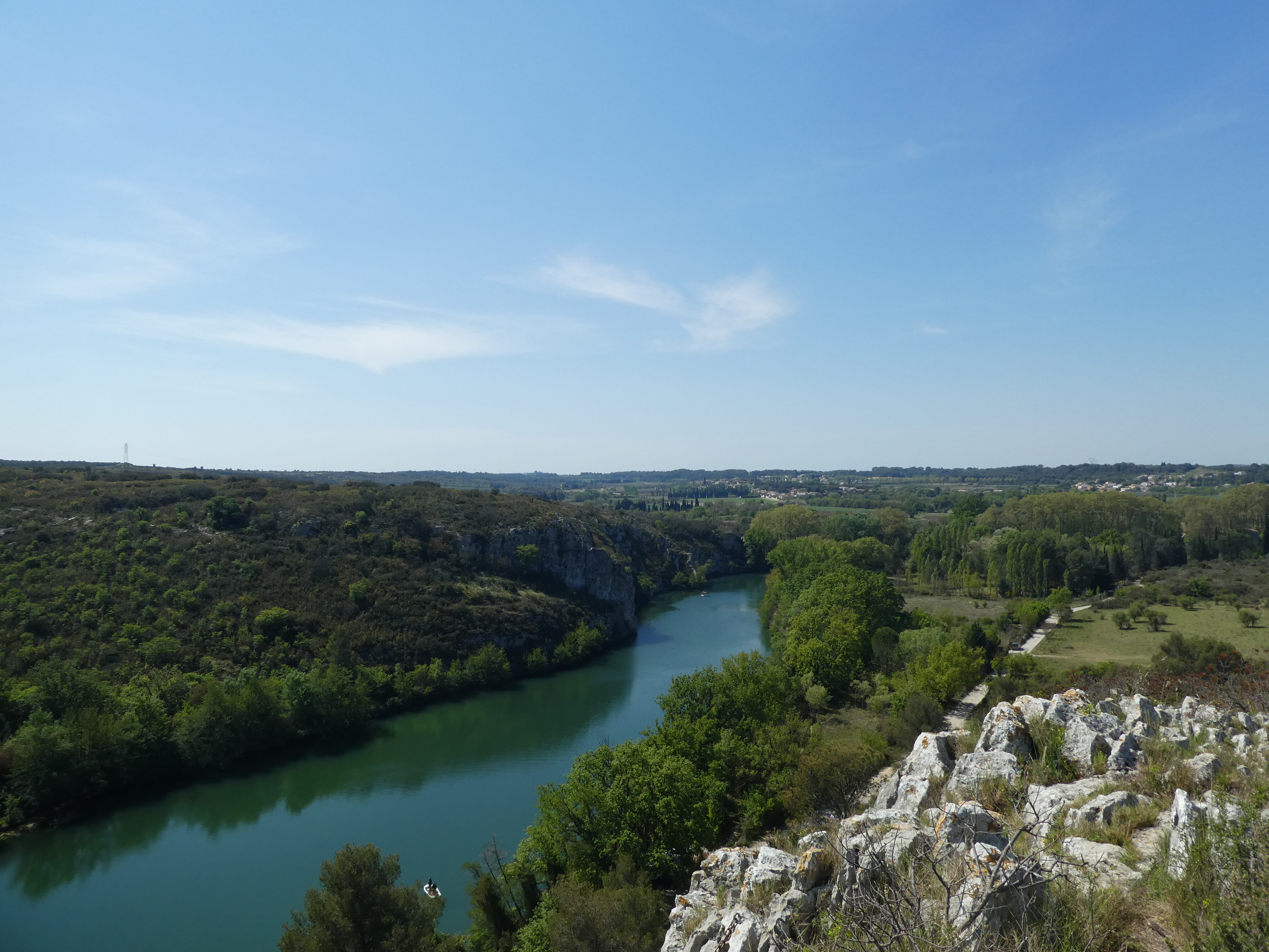 Vue sur le défilé sur le Vidourle formé par la Roque d'Aubais à gauche