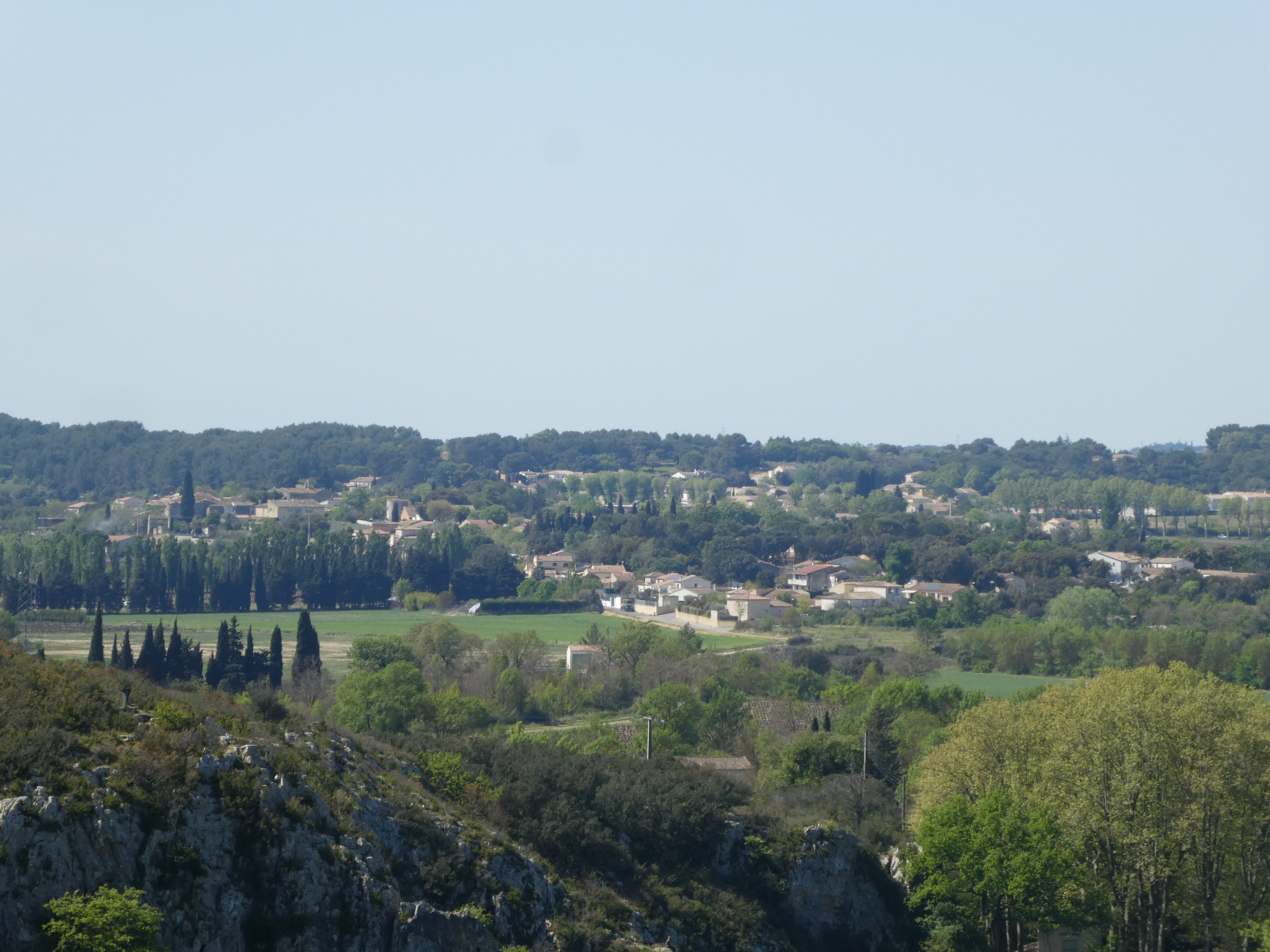 Dès que le chemin de montée atteint son point culminant (300 mètres après le précédent croisement), le quitter pour accéder au belvédère situé sur la droite direction la Roque d'Aubais