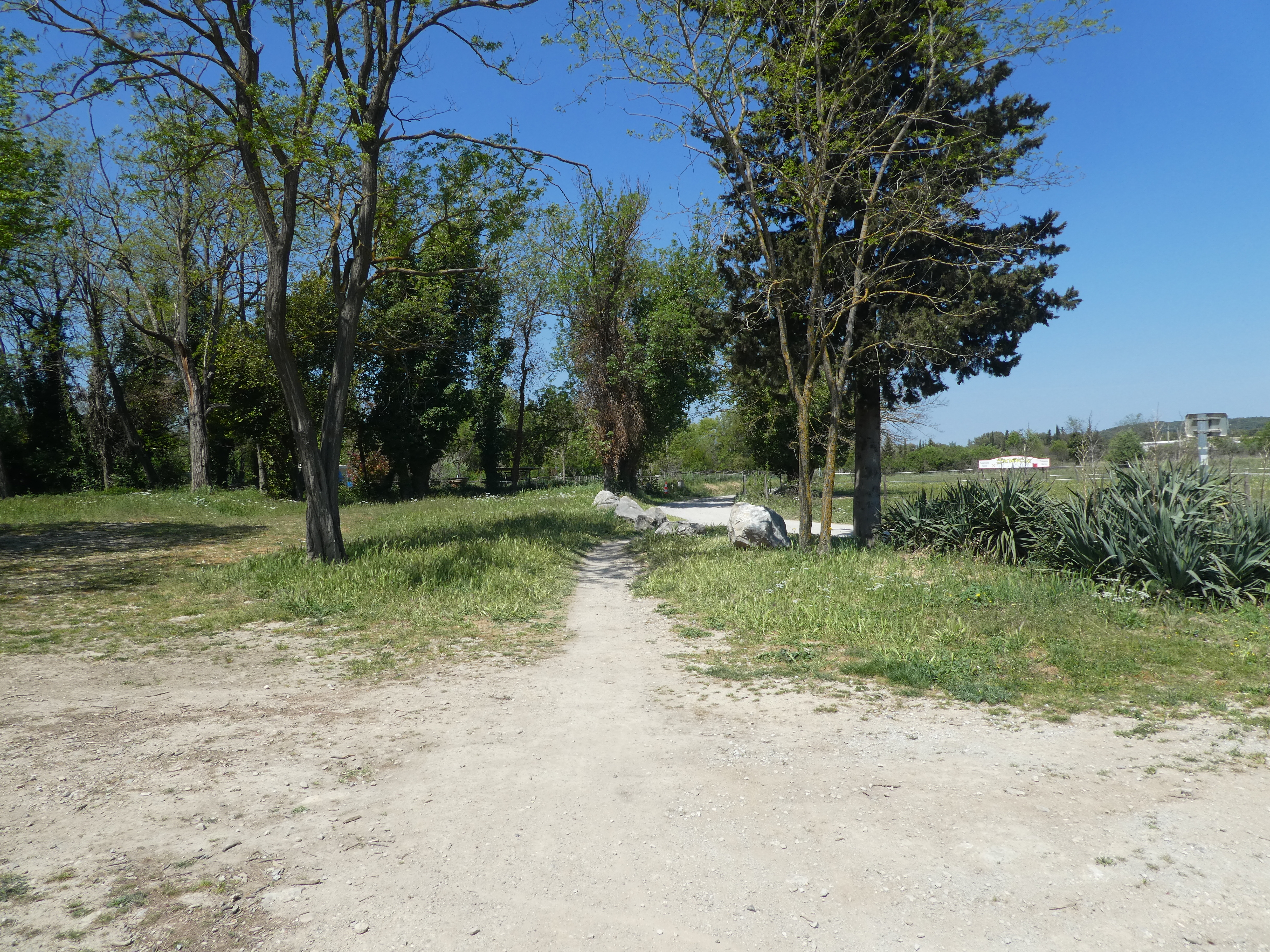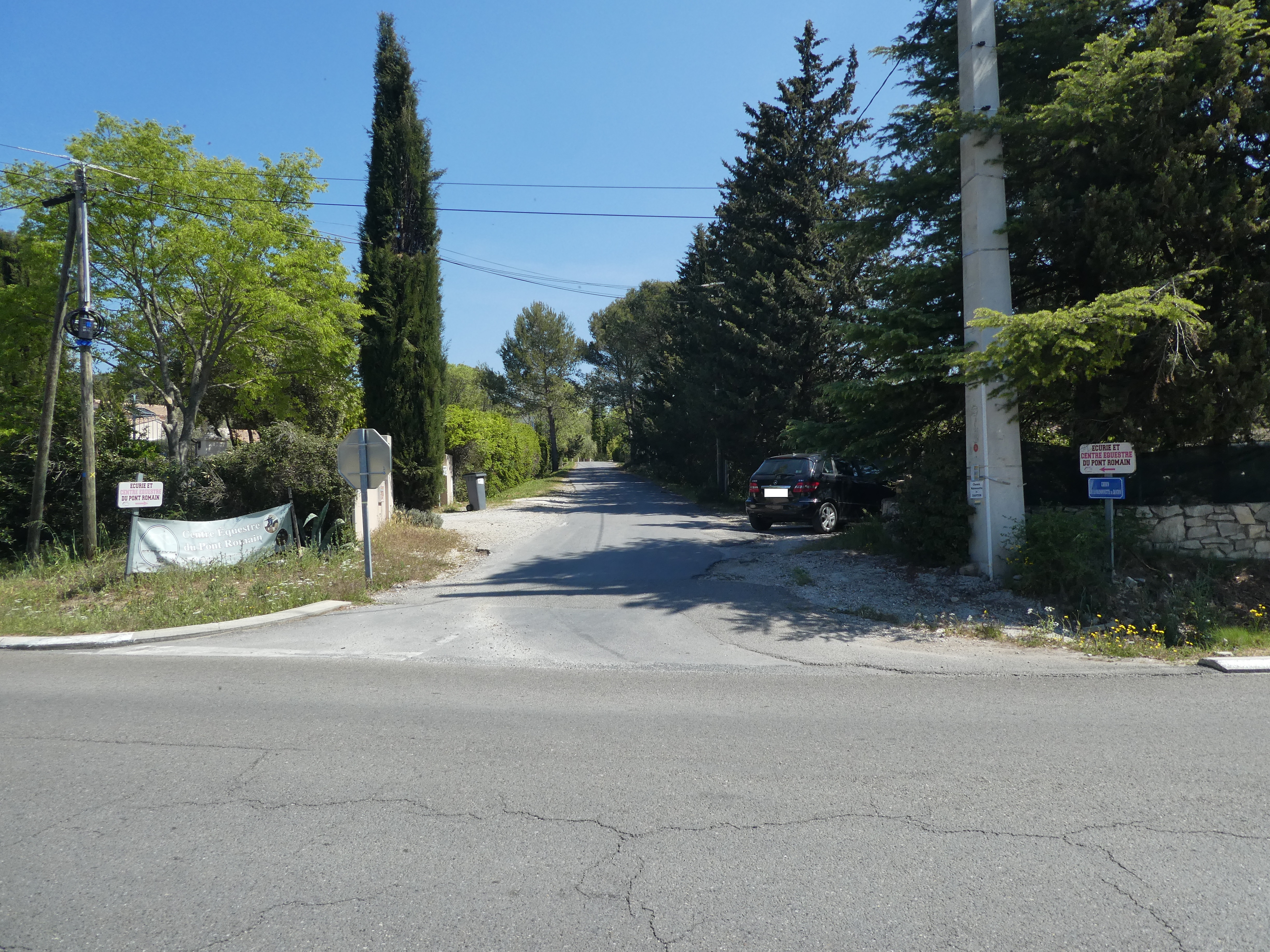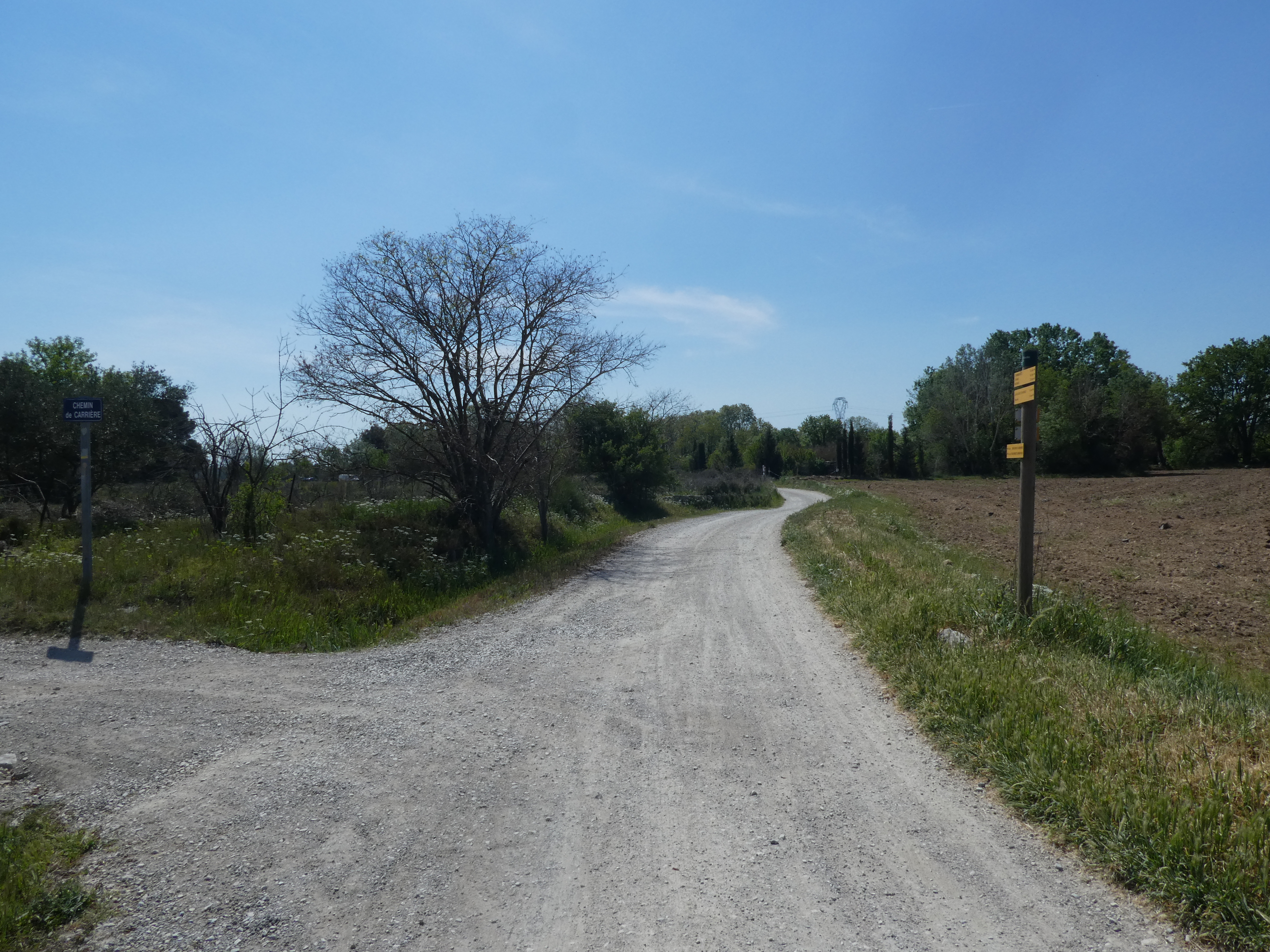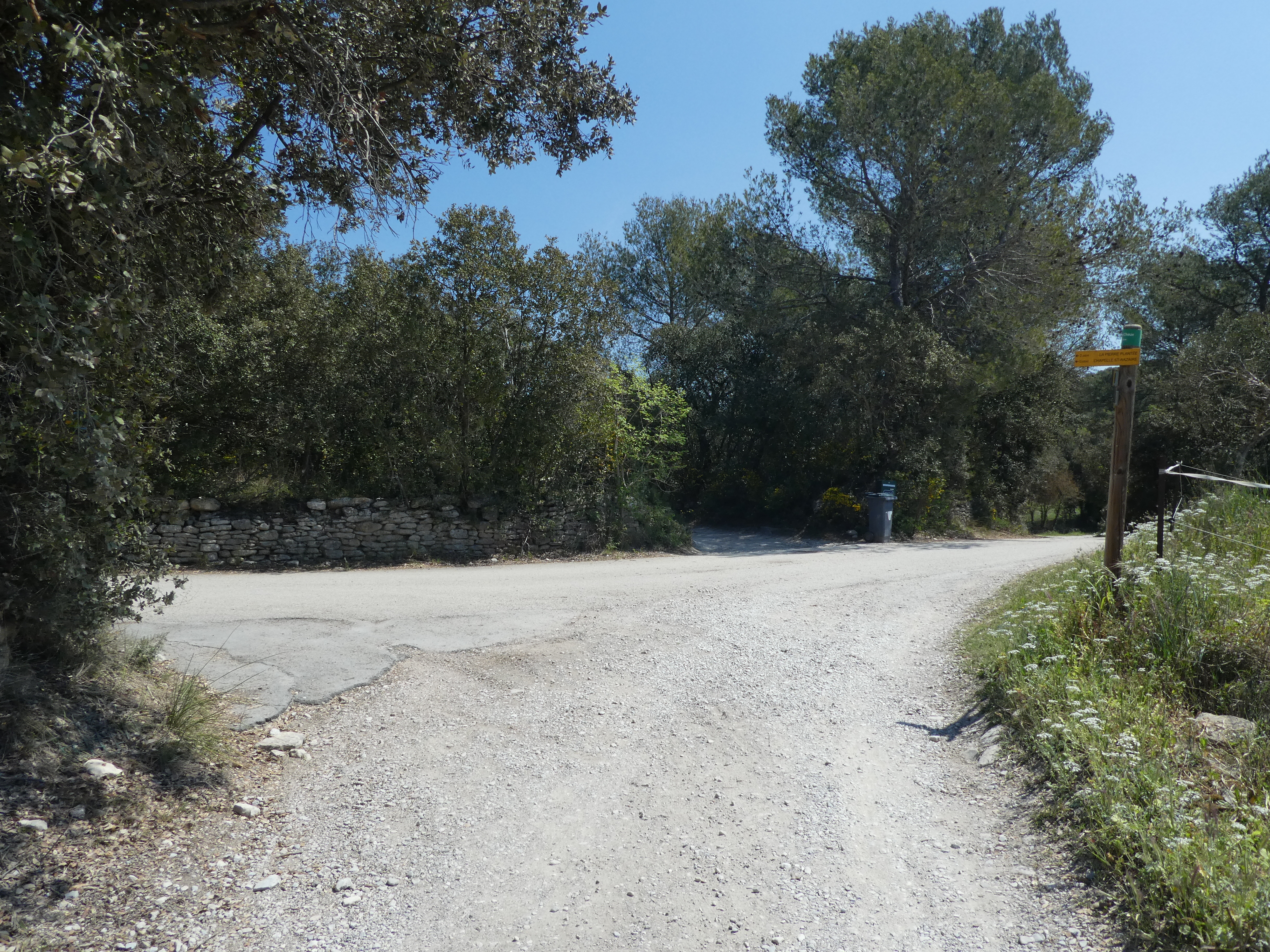Chemin du Rieu (44 m) : suivre le chemin partant sur la gauche direction Junas, balisé en jaune