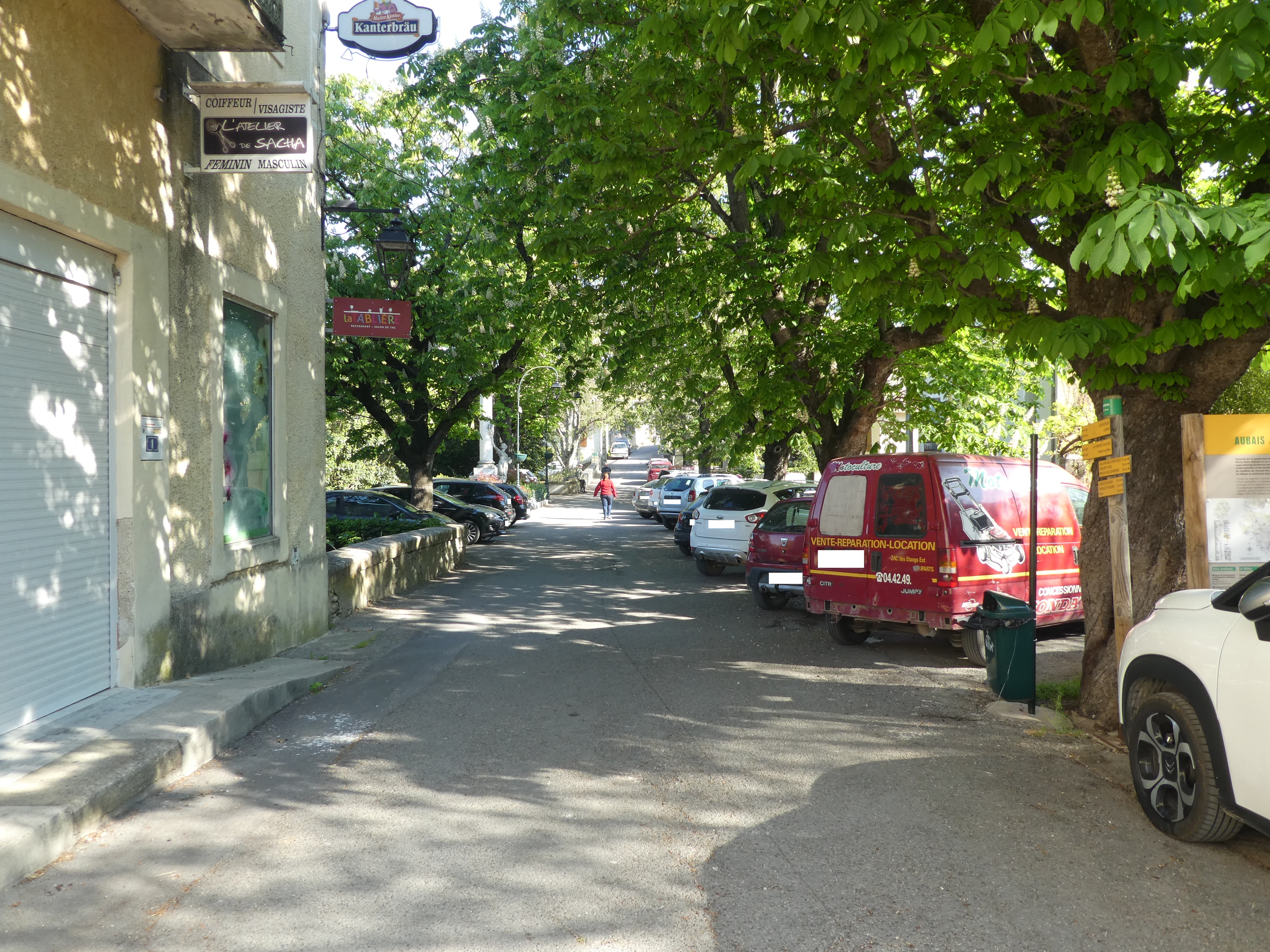 Chemin du Grès (22 m) : suivre la route partant sur la gauche direction la Roque d'Aubais, balisé en jaune