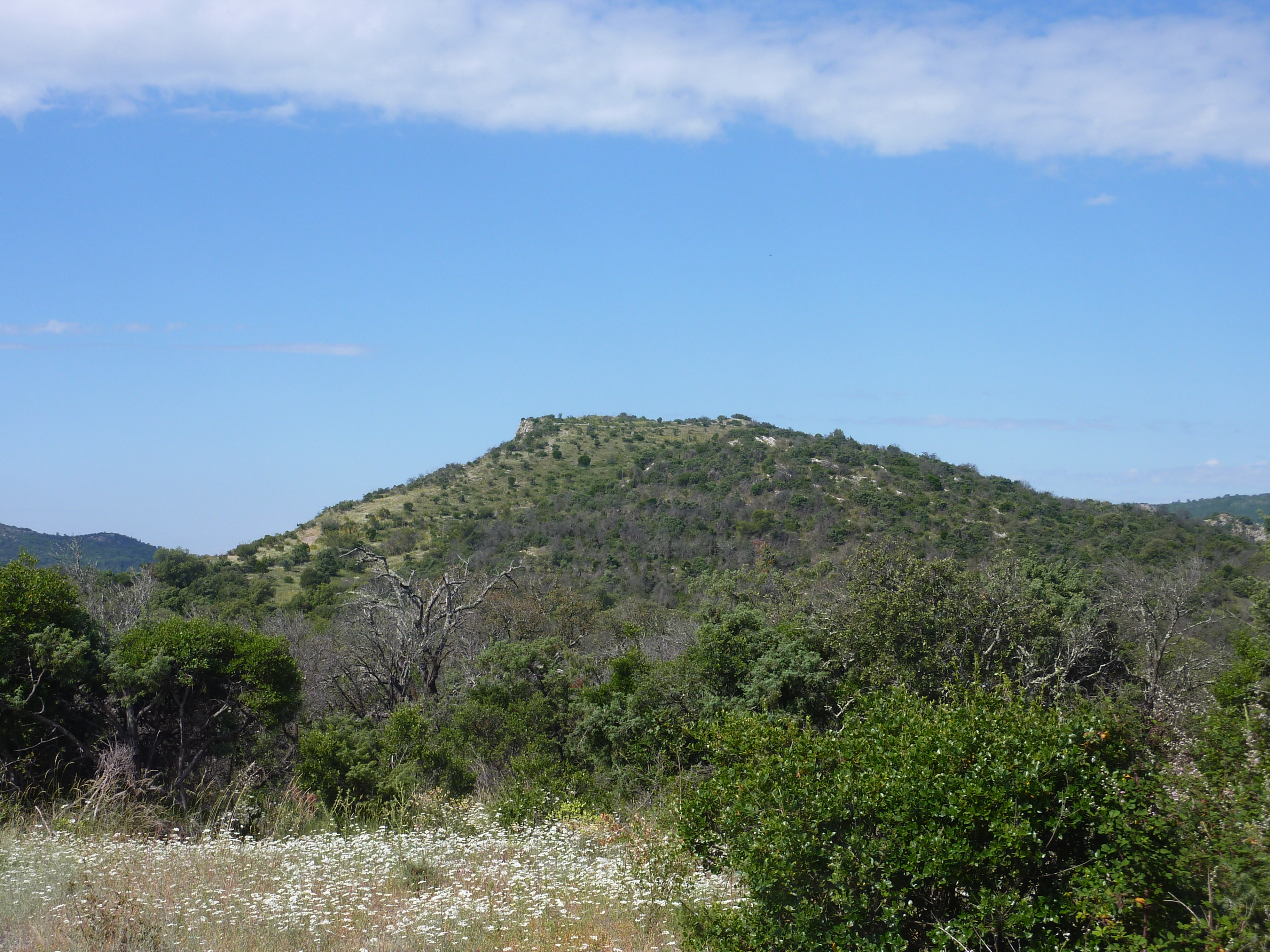 Arrivée au sommet du Fort de Rohan (343 m) : belle vue sur les sommets du Piémont Cévenol et de la Vallée Borgne ainsi que sur la plaine languedocienne ... la ville d'Anduze n'est pas visible du Fort de Rohan (il faut descendre un peu plus au bord de la falaise de Peyremale)