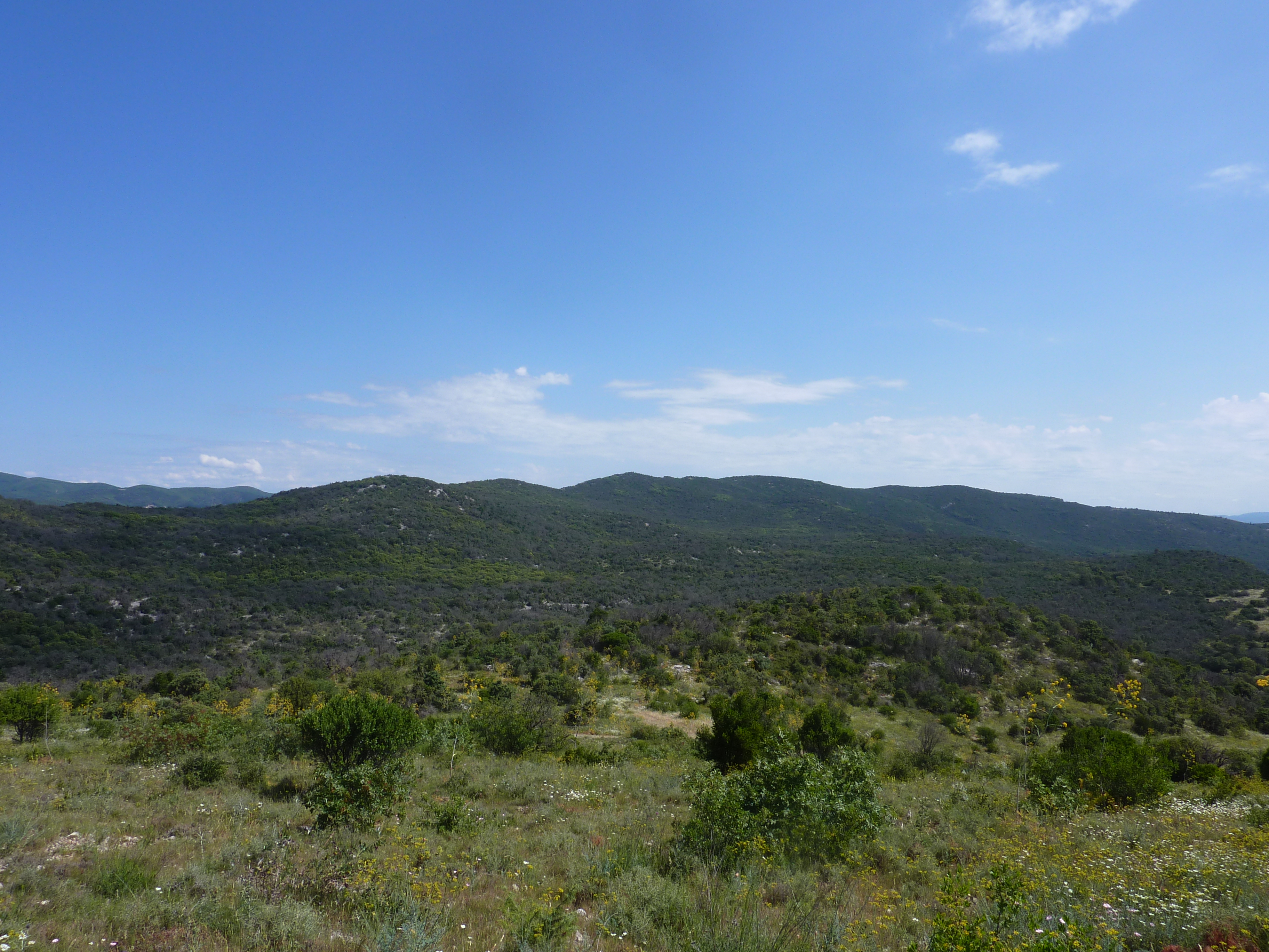 Vue arrière en direction du Pays Alésien et le Mont Bouquet au fond