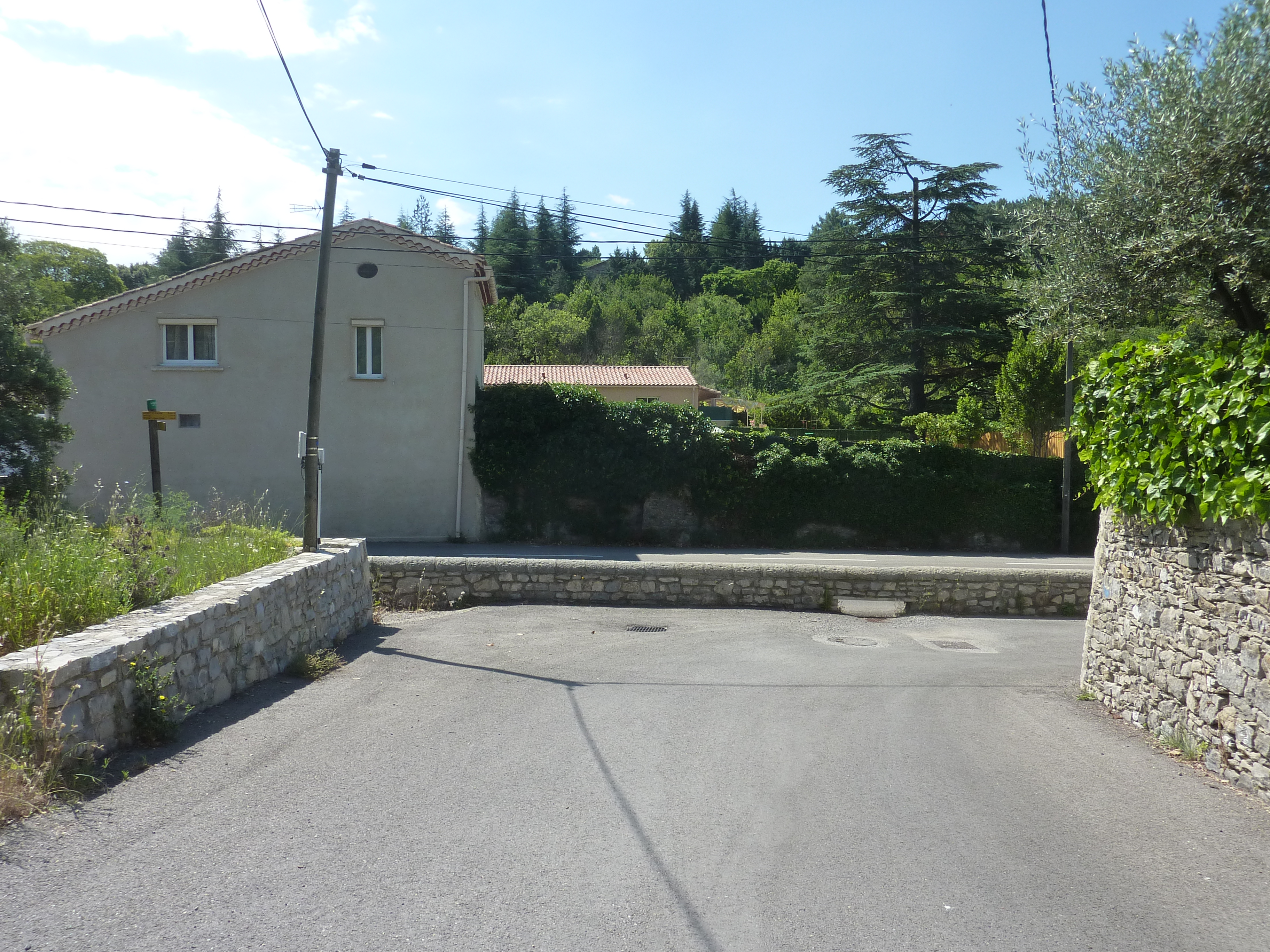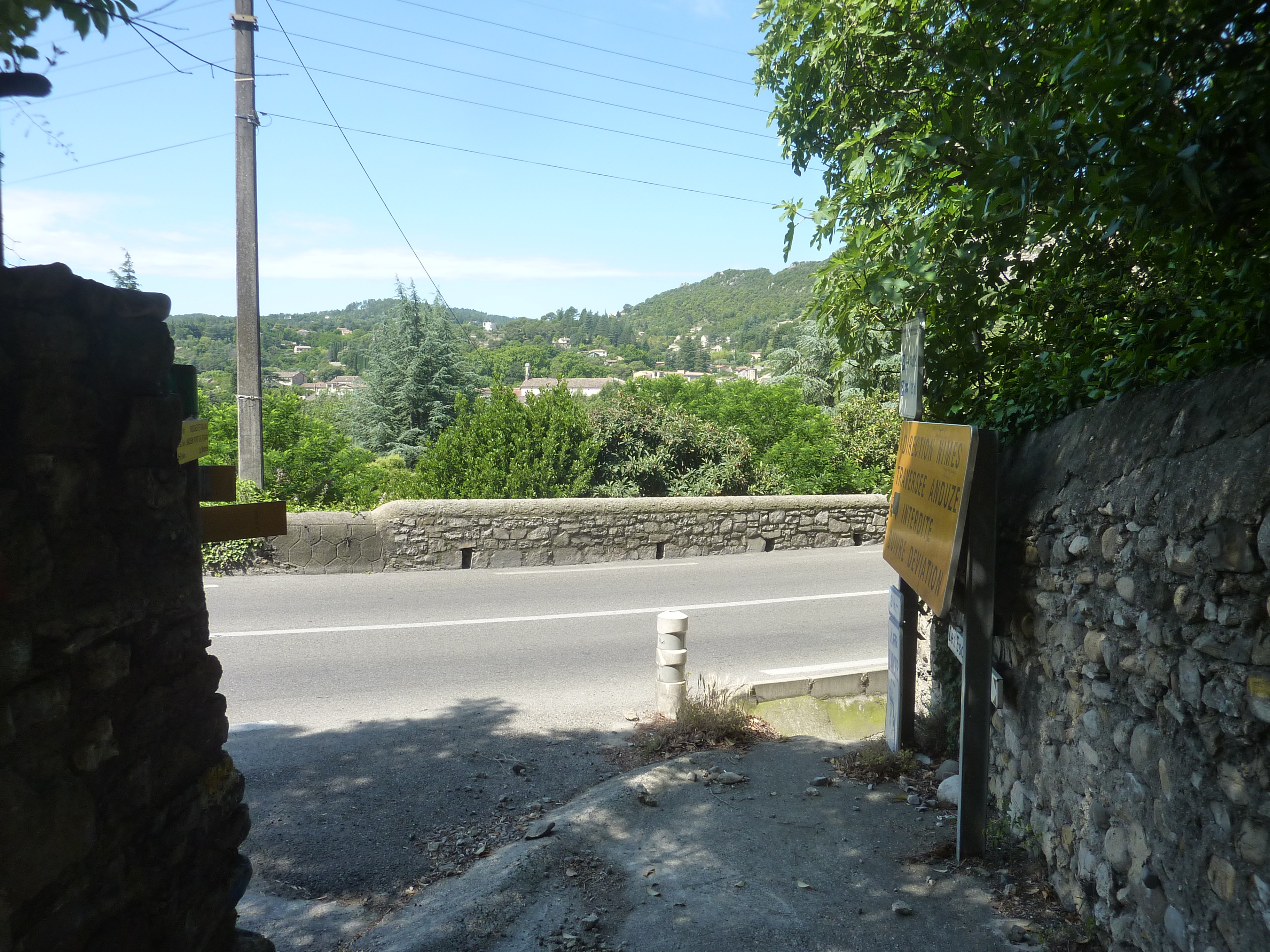 La Montade (199 m) : suivre la route partant tout droit et qui va ensuite rejoindre la D910A qu'il va falloir longer sur le bas-côté direction Anduze, balisé en jaune (prudence avec la circulation automobile)