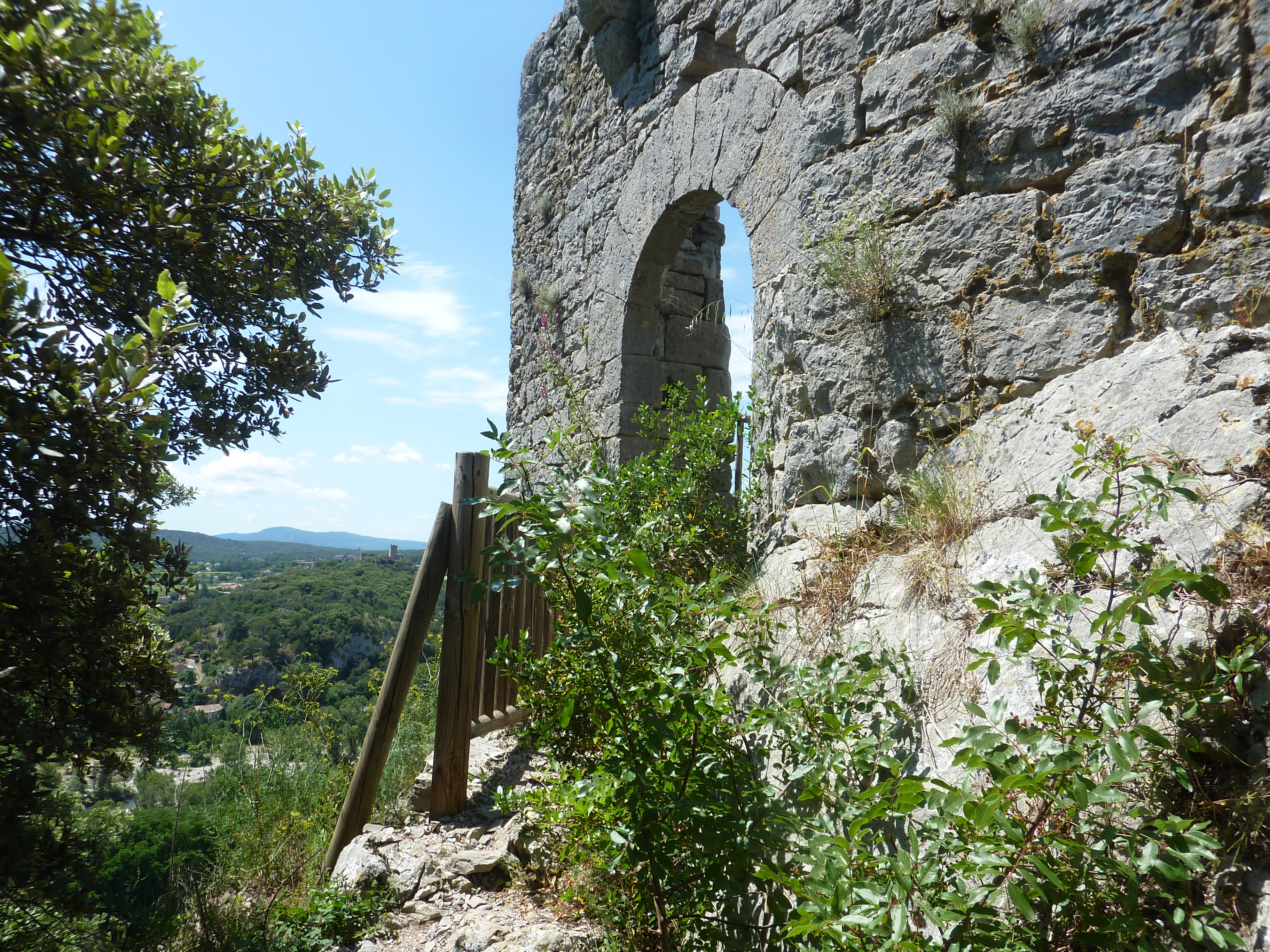 Arrivée au Château de Pouillan (191 m) : belle vue sur la Vallée du Gardon de Saint-Jean et le Château de Tornac