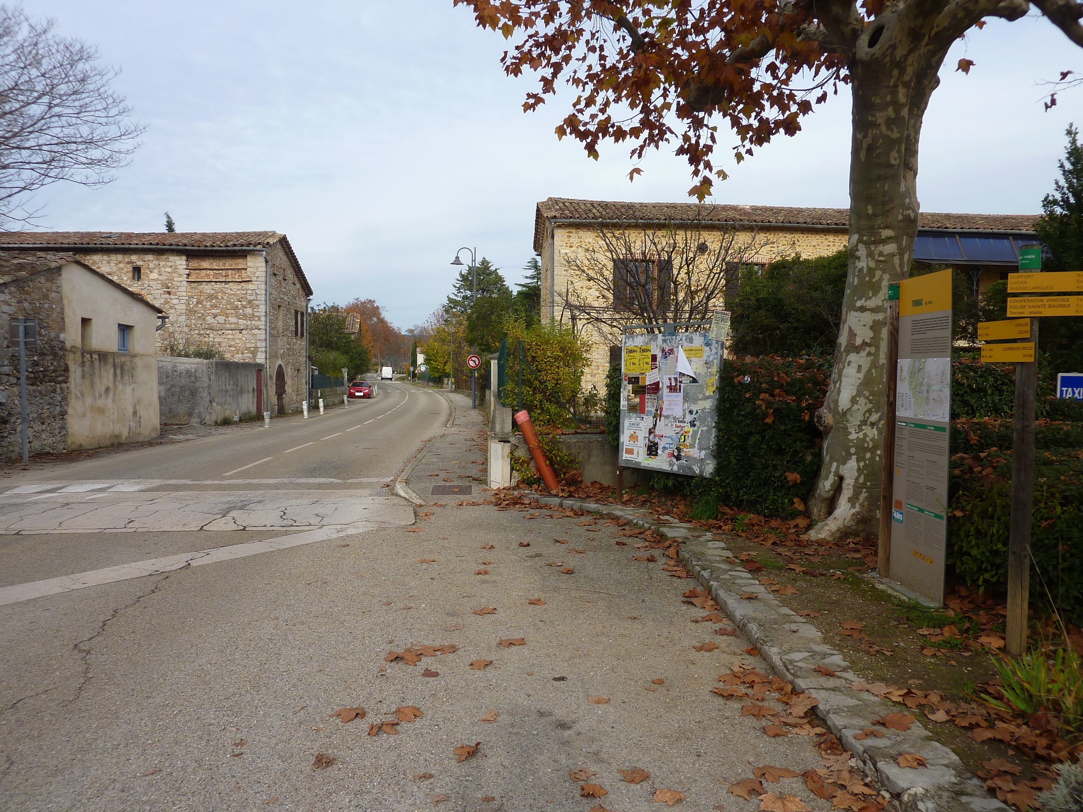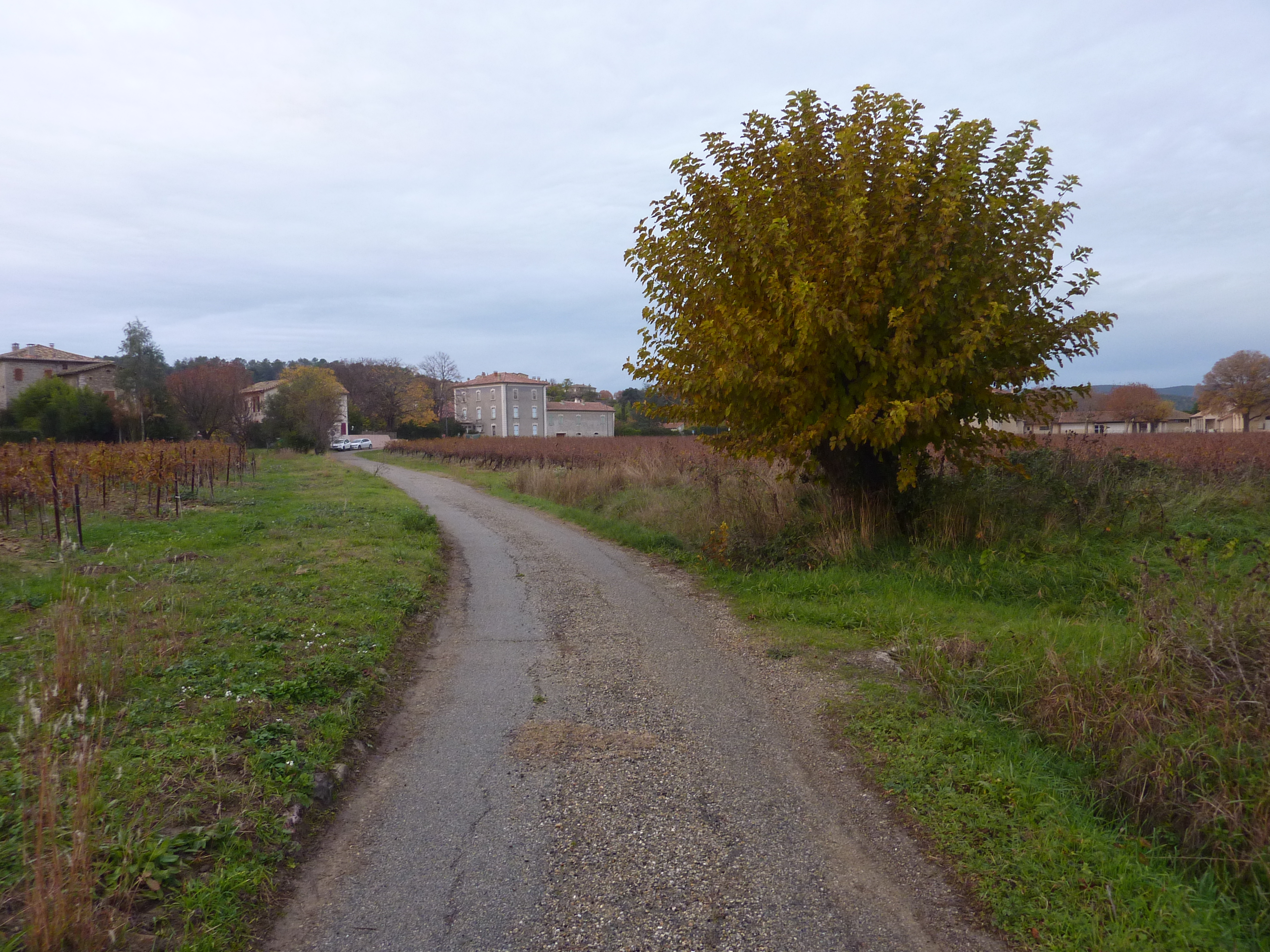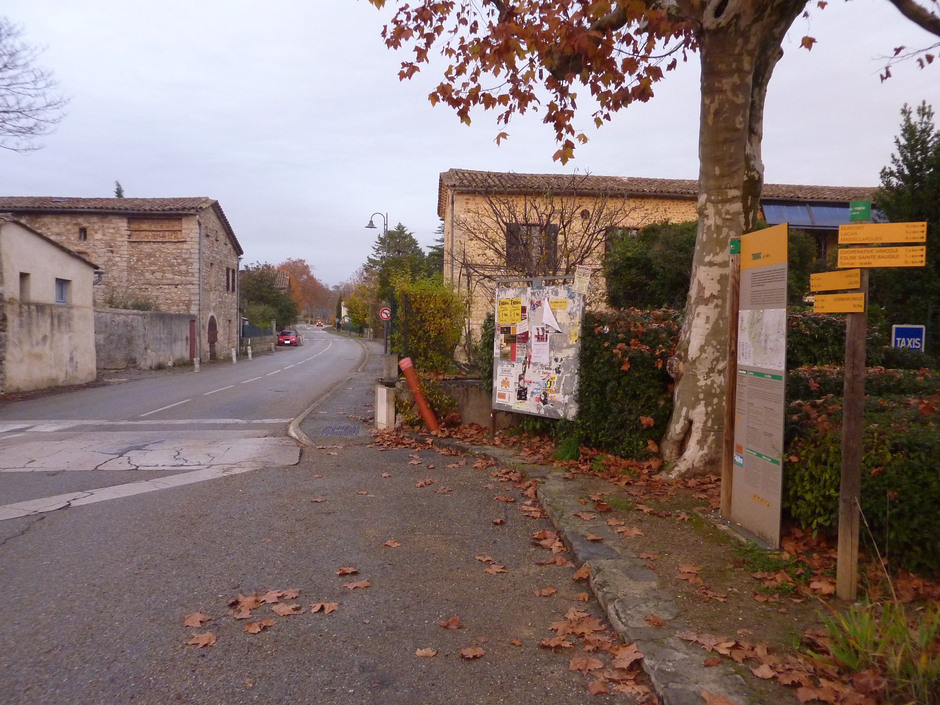 Le Bosc (223 m) : suivre le large chemin partant tout droit direction Tornac, balisé en jaune