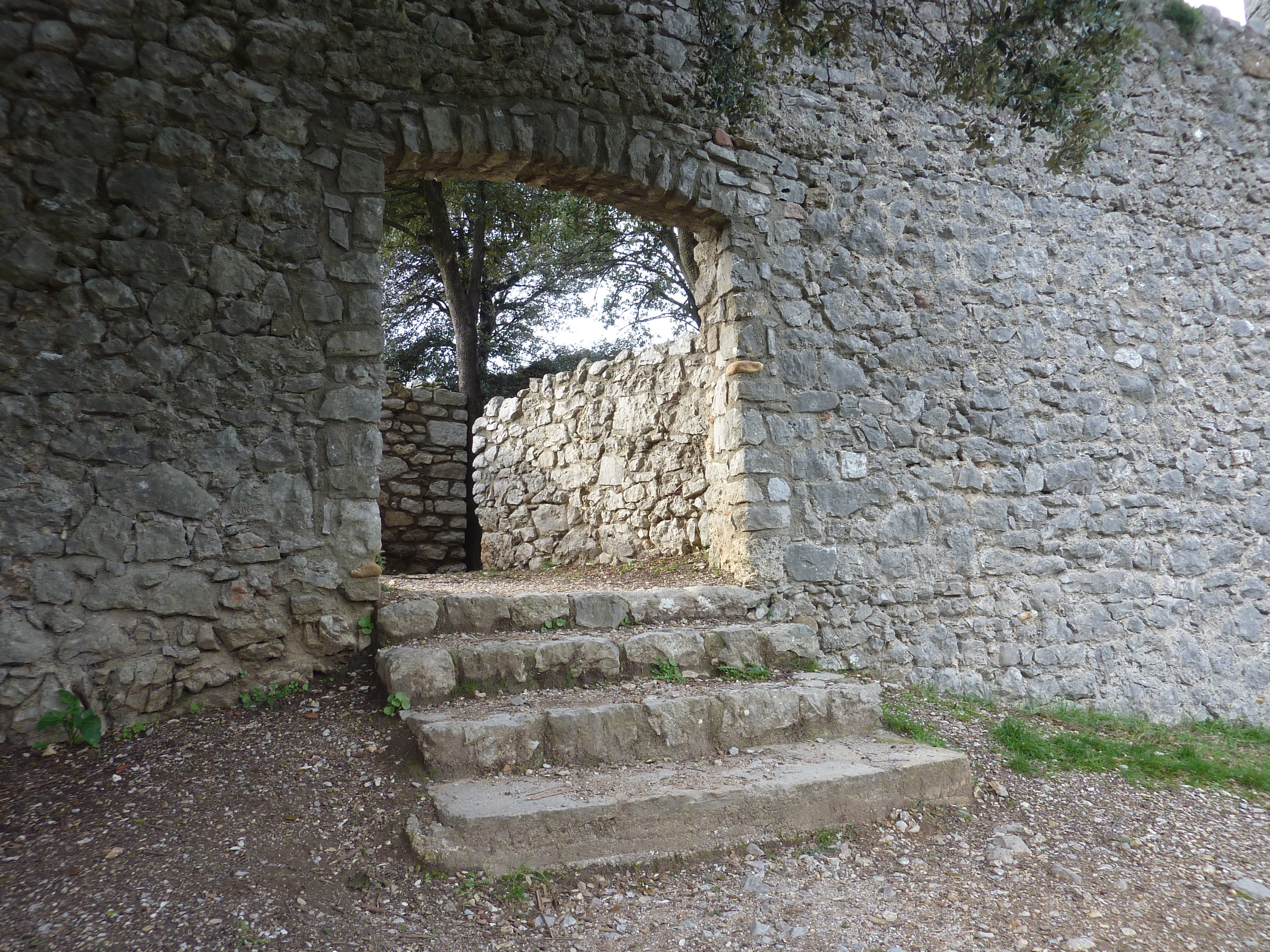 Château de Tornac (168 m) : suivre le chemin descendant sur la droite direction Anduze, balisé en rouge et blanc, et en jaune dorénavant