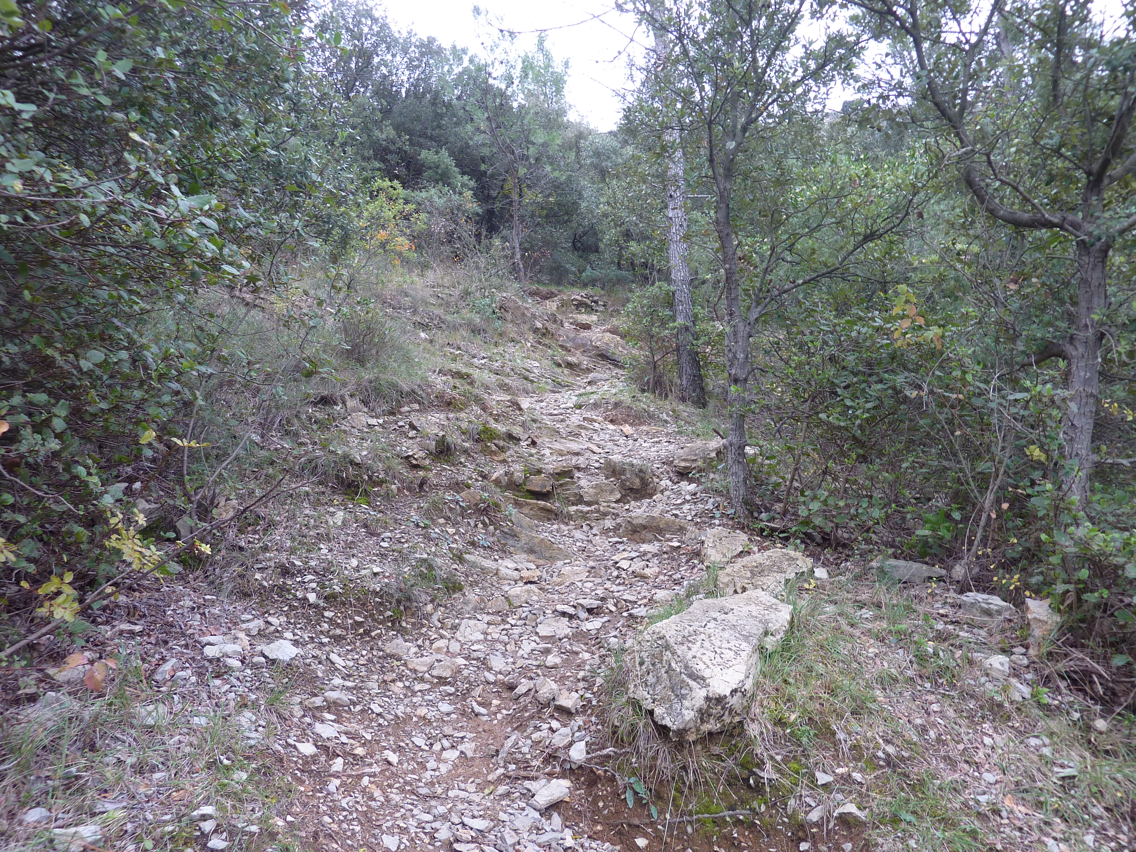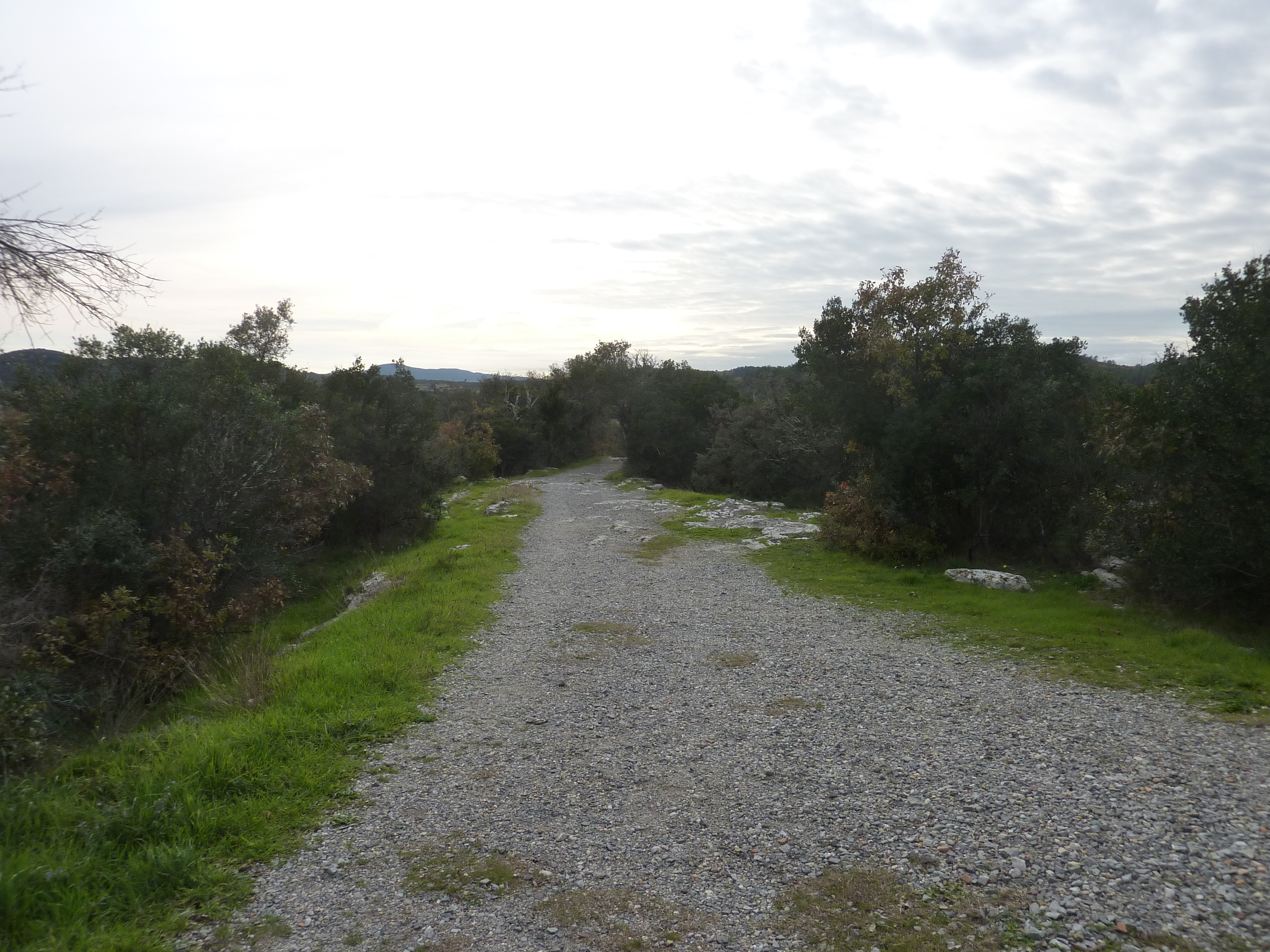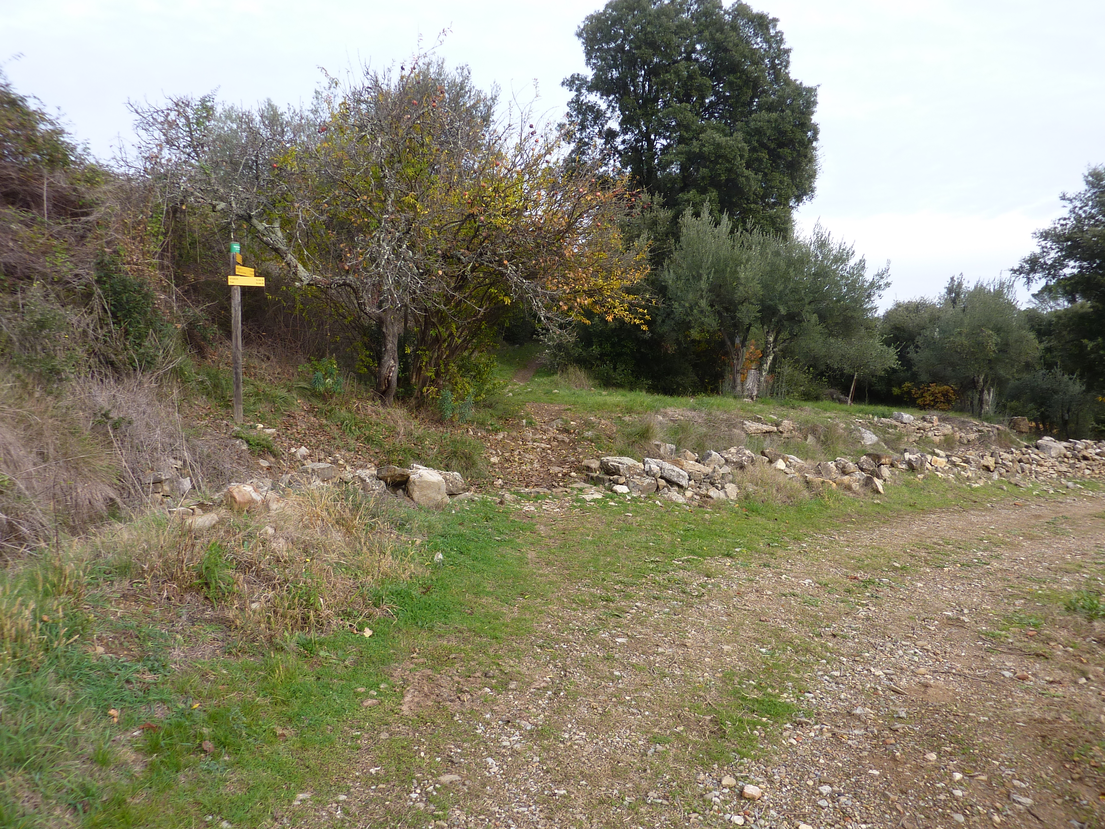 Pied du Bosc (151 m) : suivre le chemin partant légèrement sur la gauche direction Anduze, balisé en rouge et blanc, et en jaune