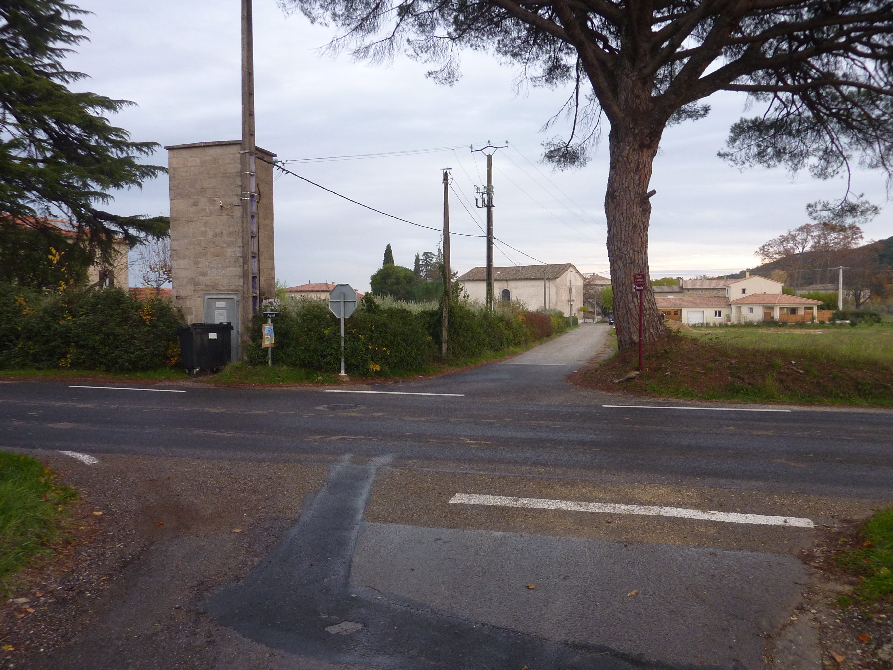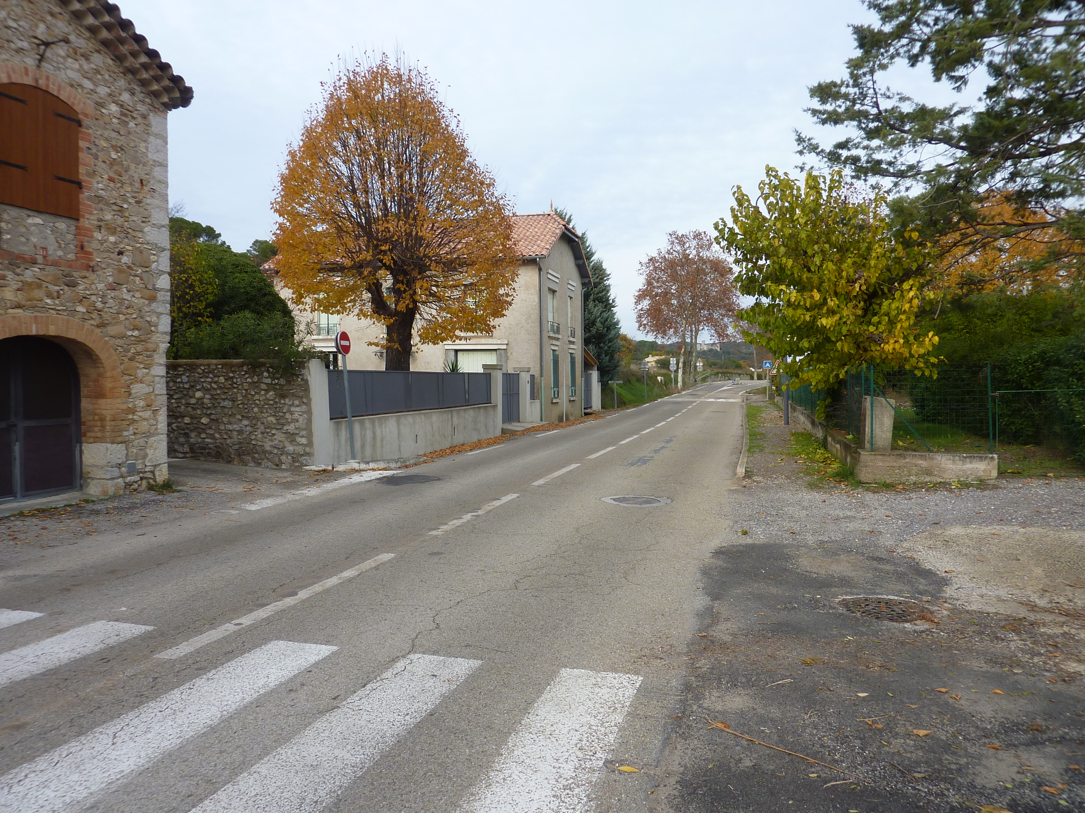 A cette intersection (100 mètres après le lieu-dit "Pié Pâle"), suivre la rue partant tout droit direction Anduze, balisé en jaune