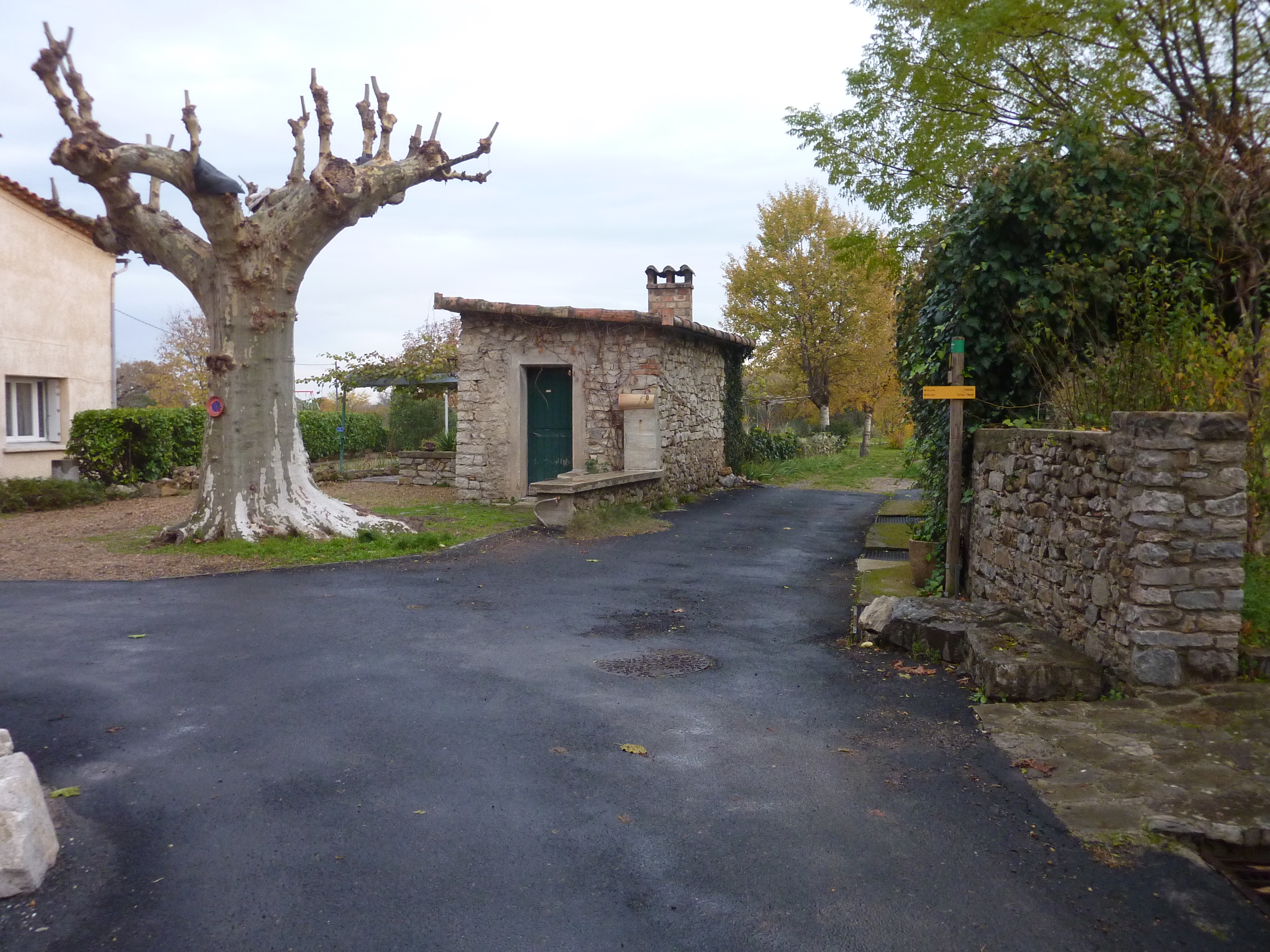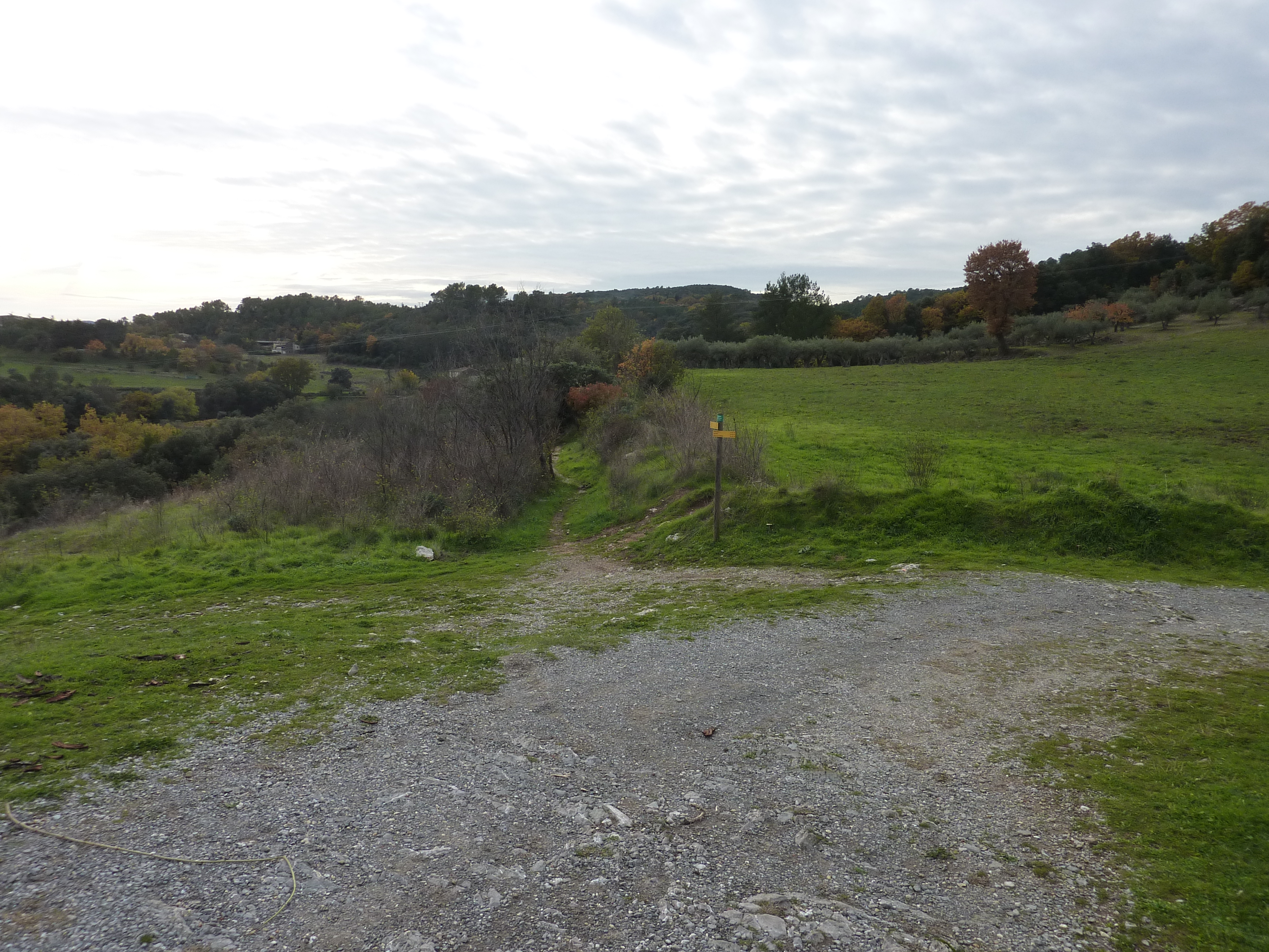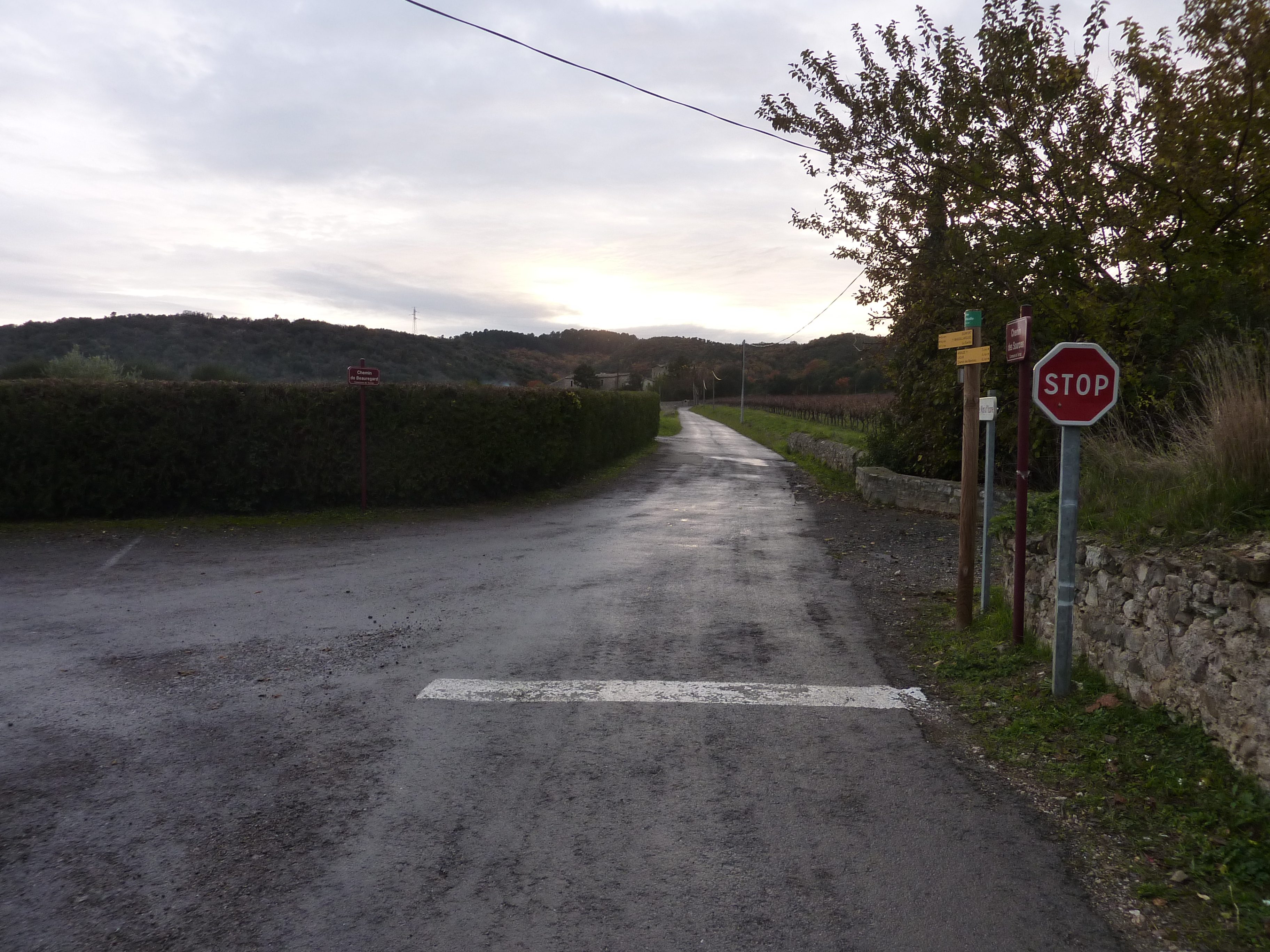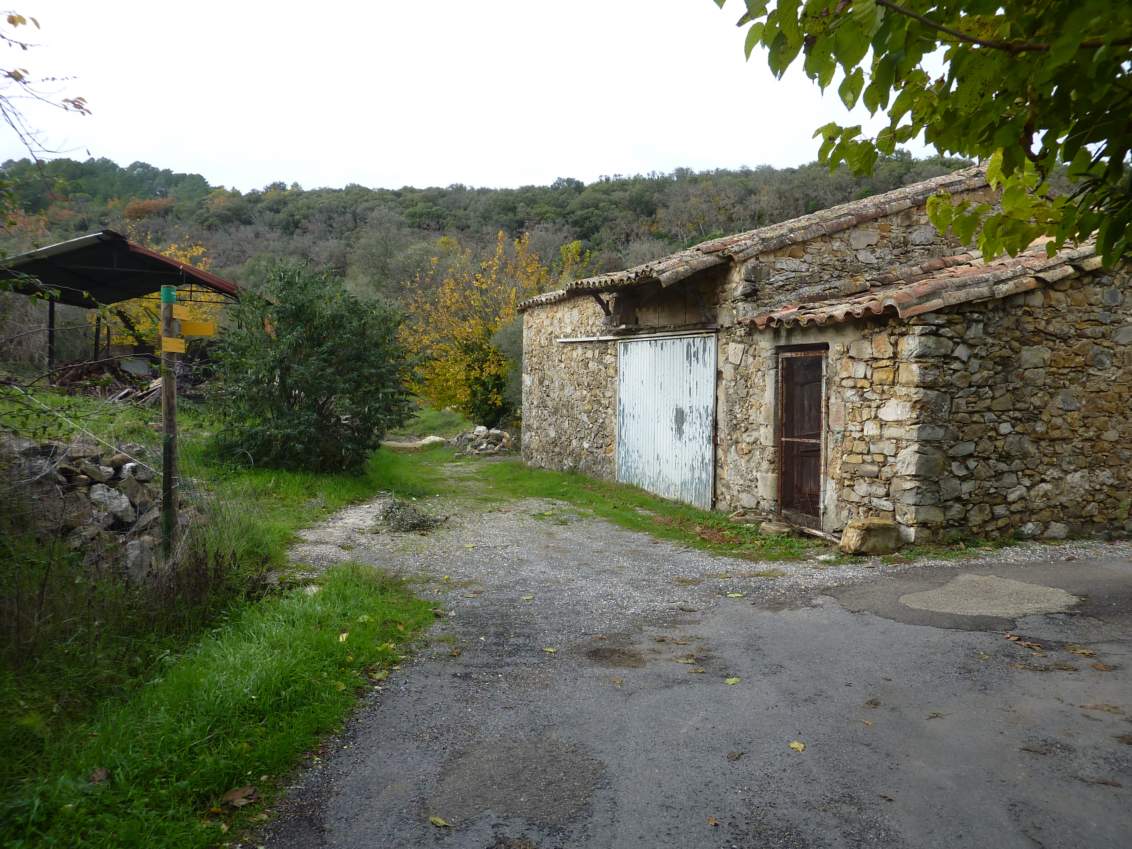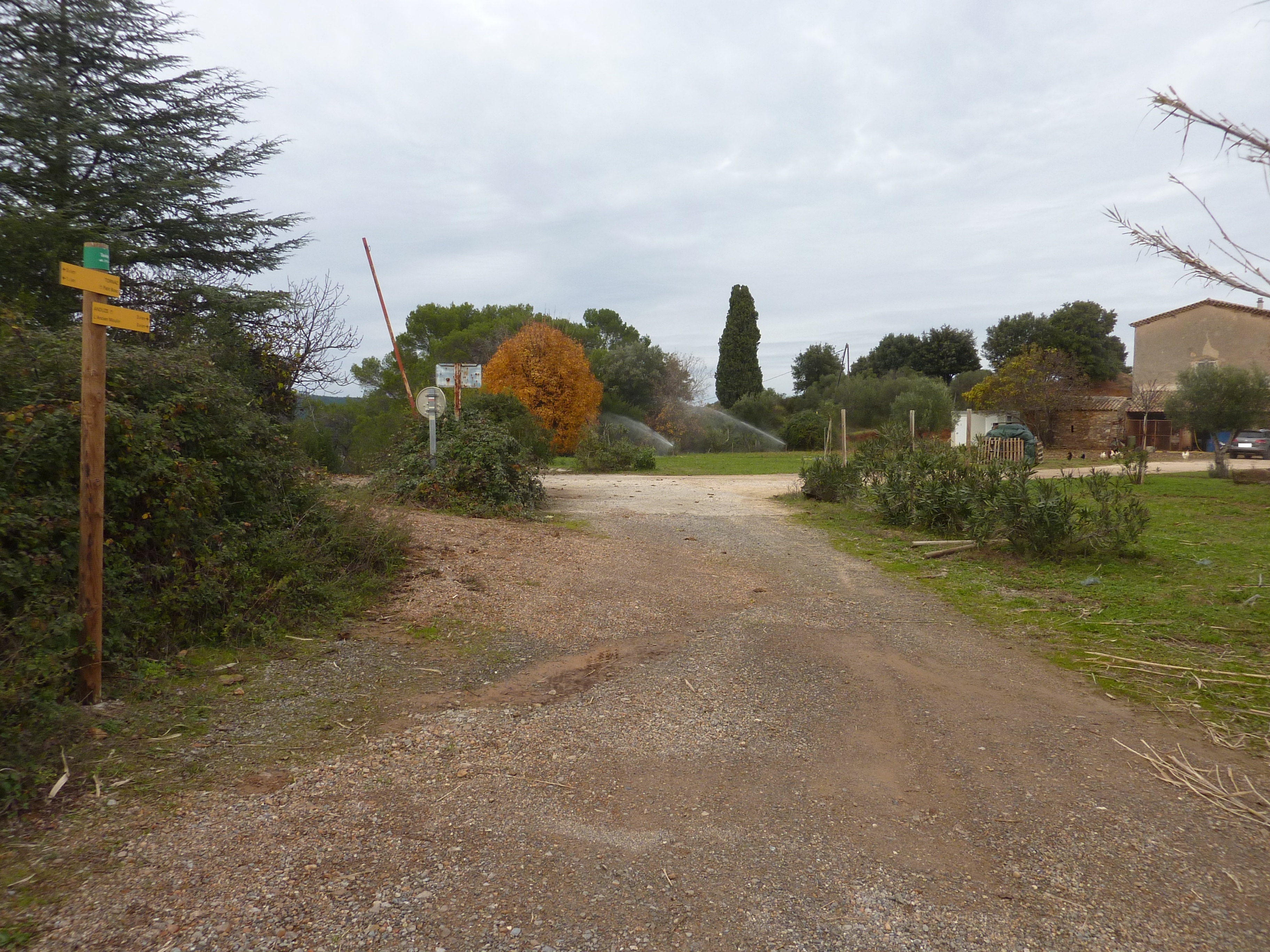 A ce croisement au niveau du hameau des Aures, suivre le chemin partant sur la gauche direction Tornac, balisé sporadiquement en jaune dorénavant