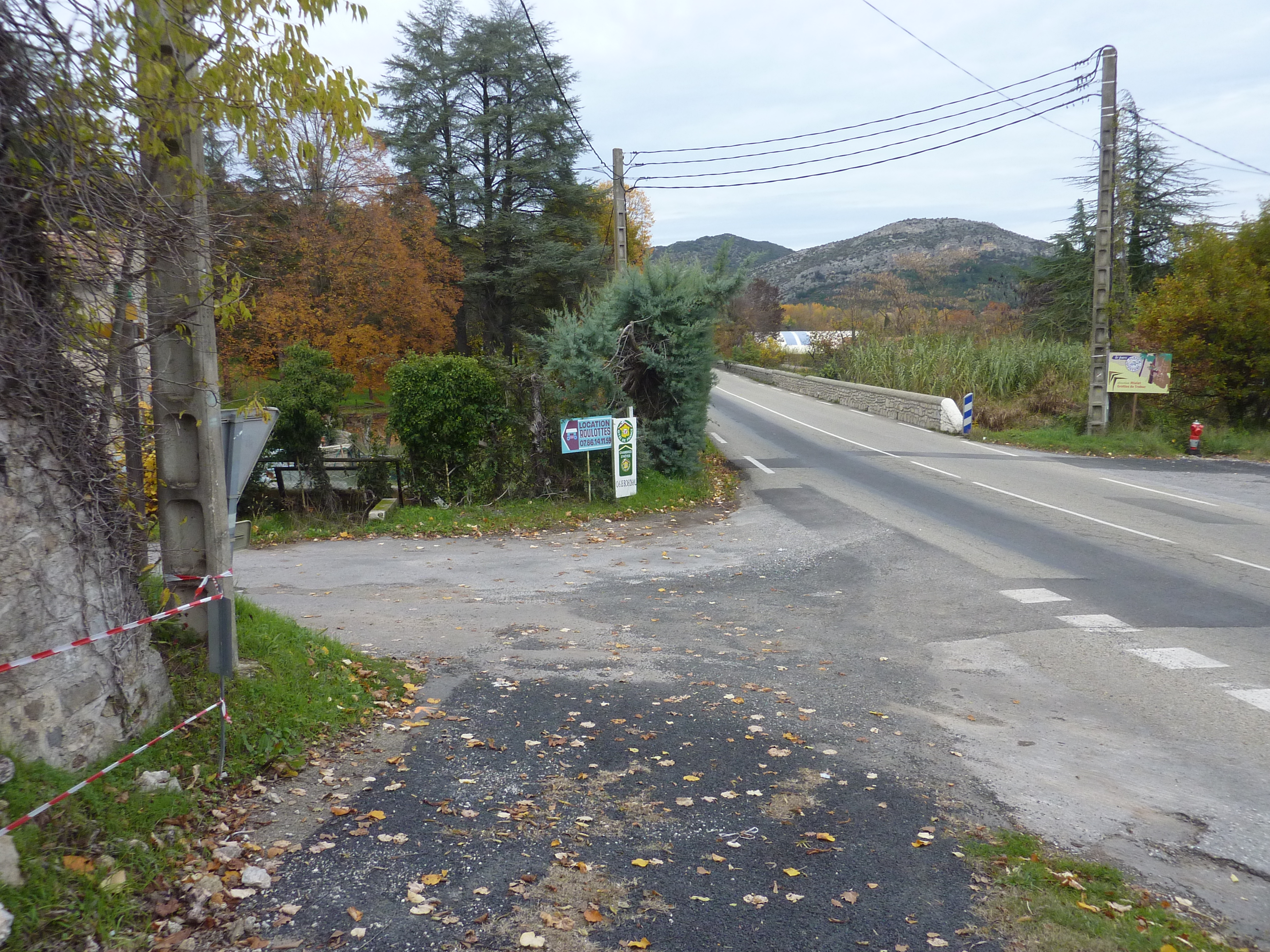 Départ Tornac - Mairie (144 m) : suivre la D982 partant tout droit direction Anduze, balisé en jaune