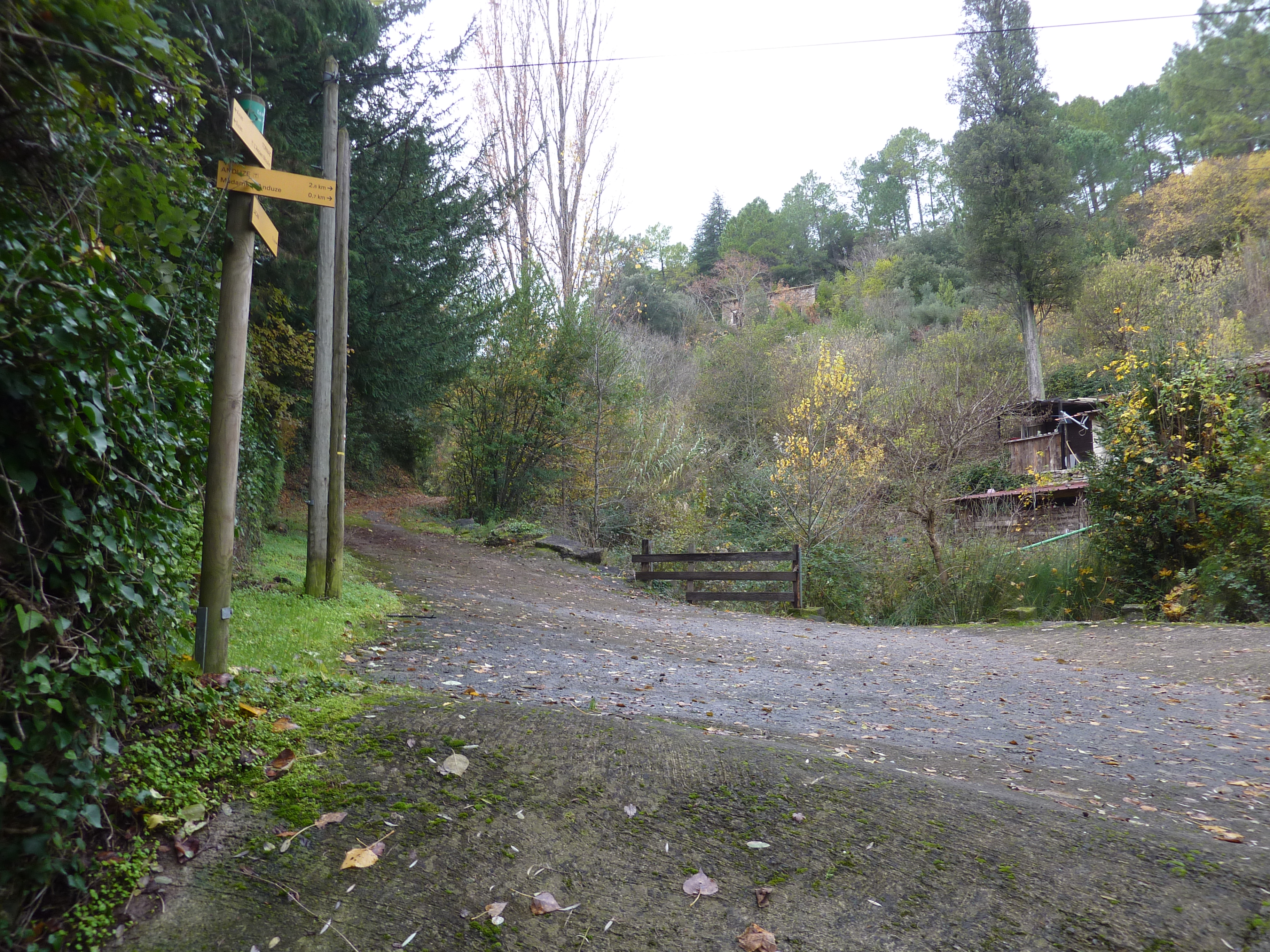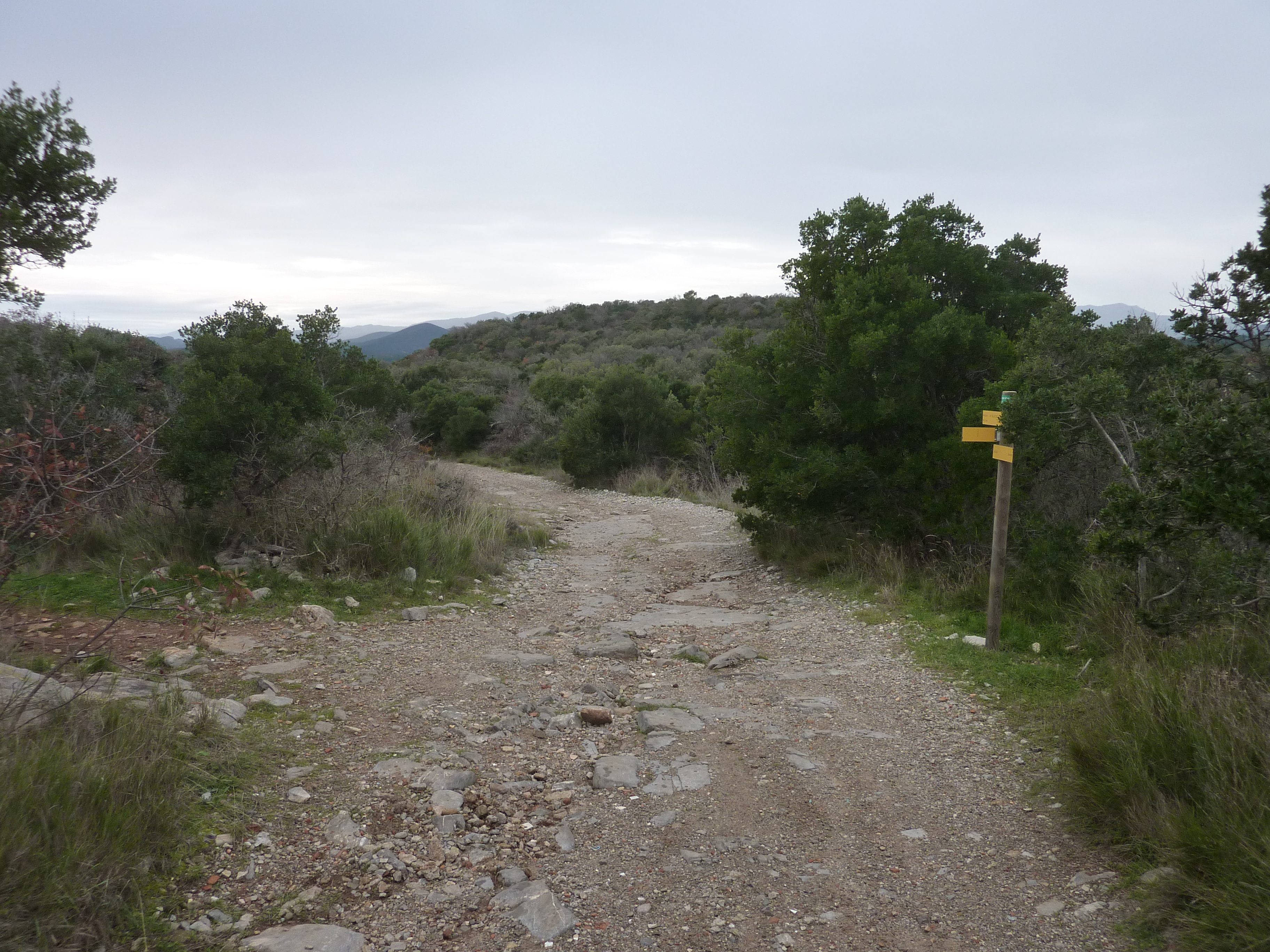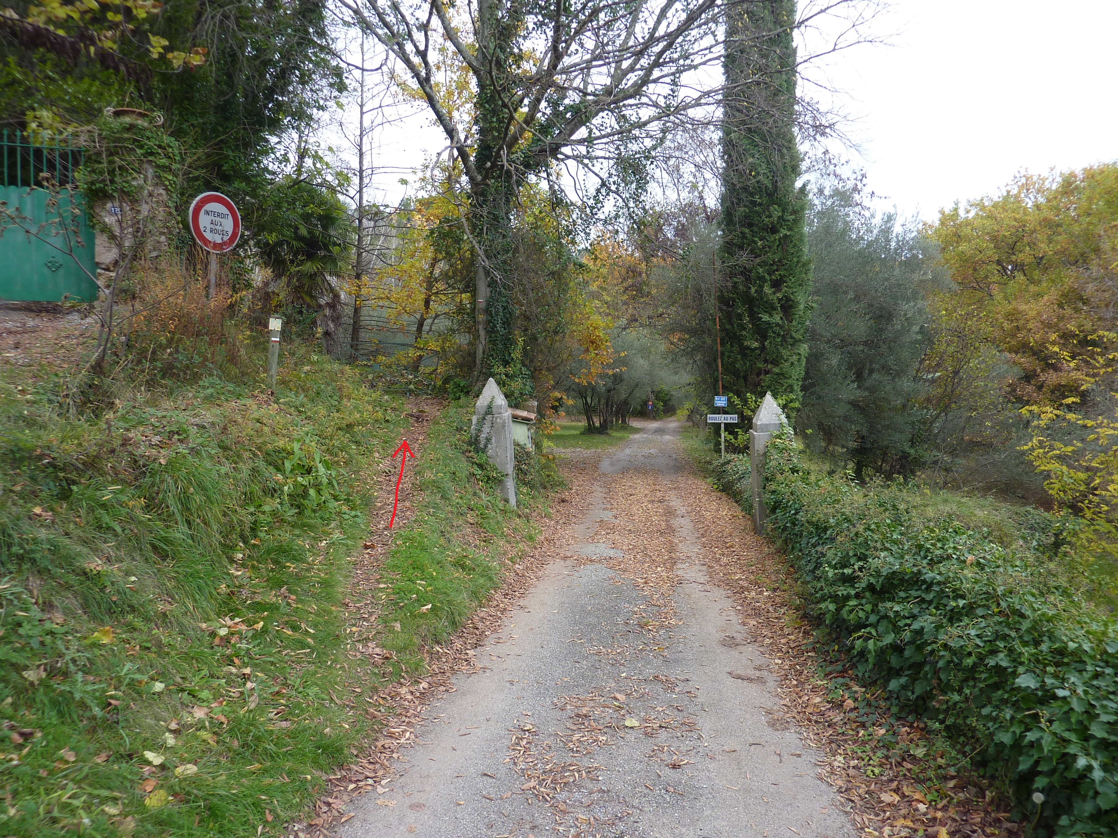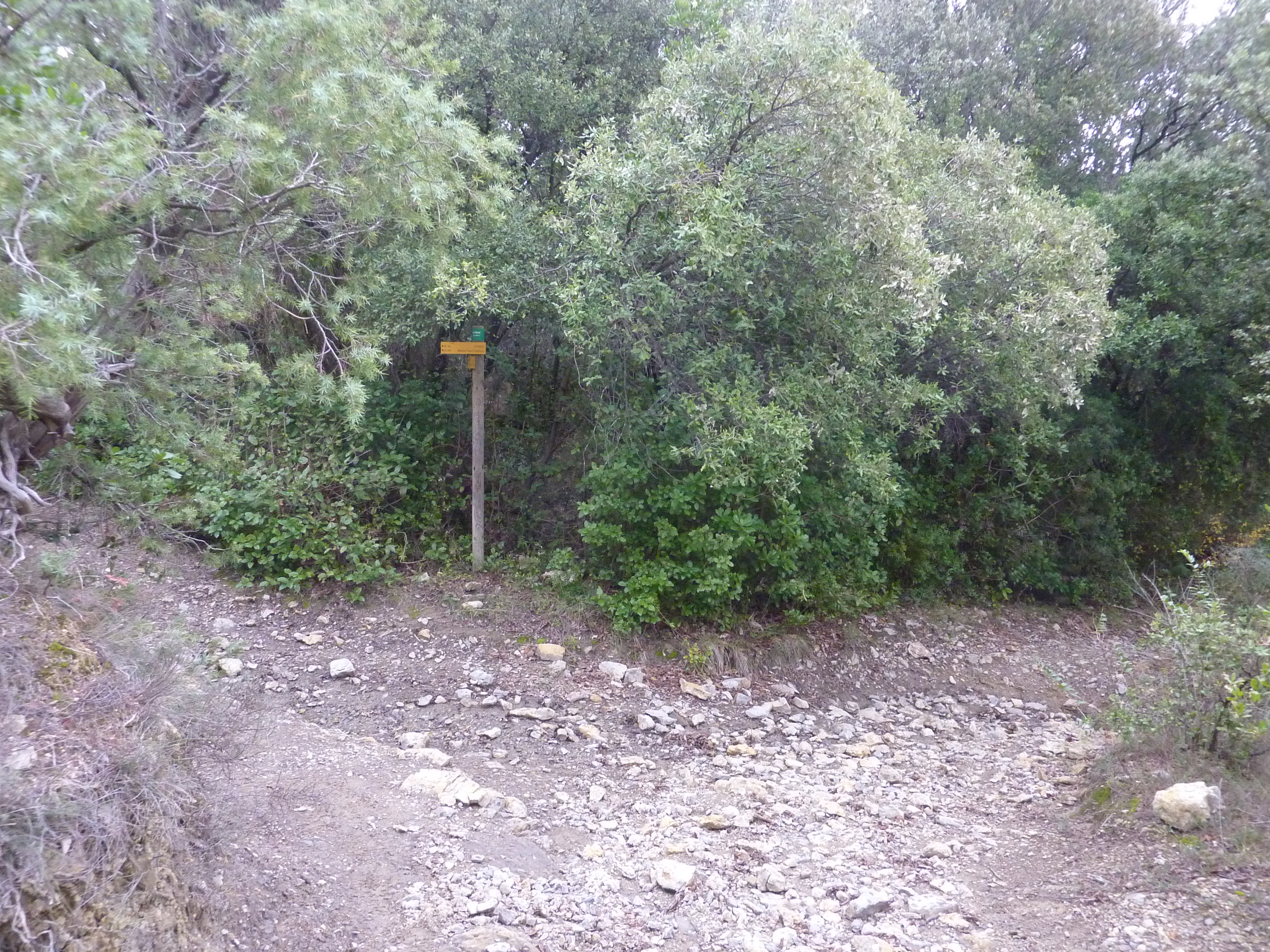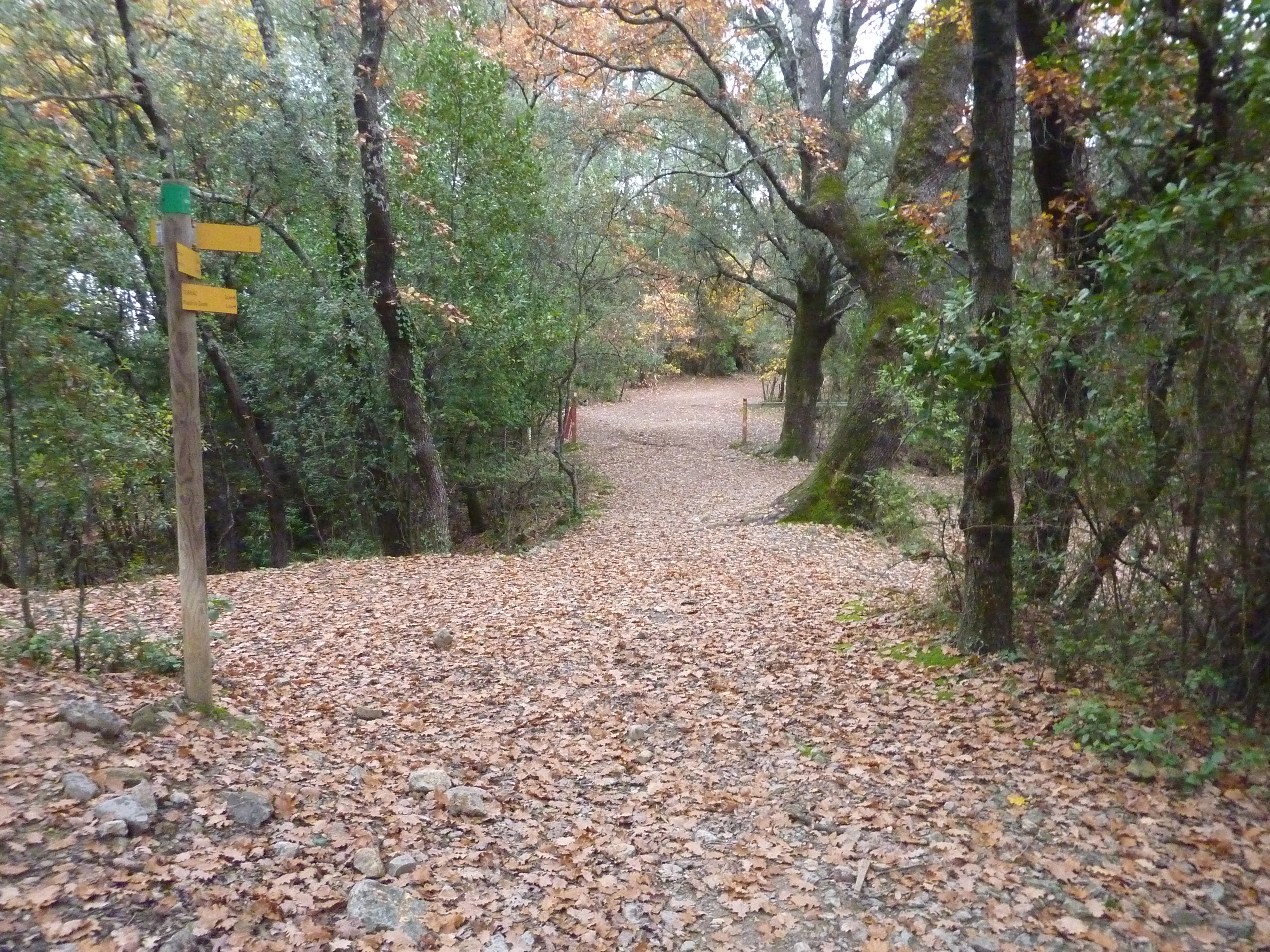 Petit Bosc (158 m) : suivre le large chelin partant tout droit direction Anduze, balisé en rouge et blanc, et en jaune
