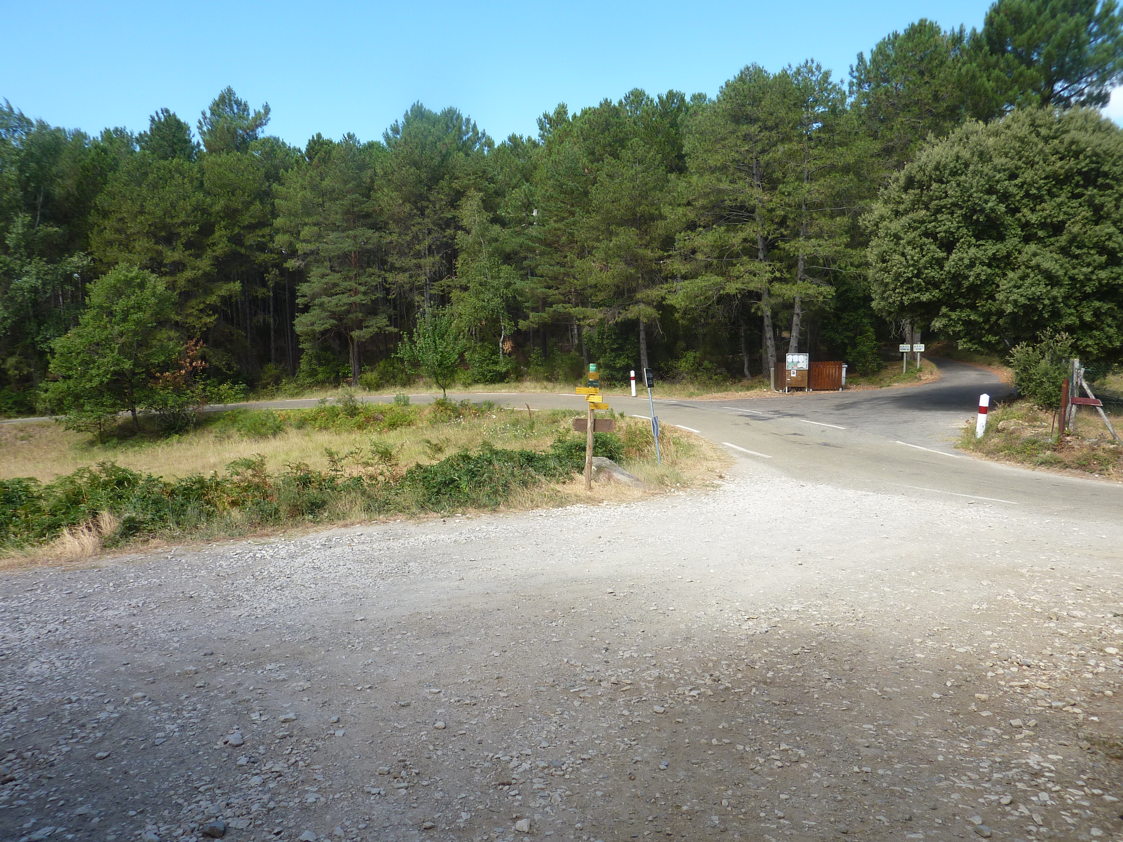 A ce croisement avec la D160 (1100 mètres après le Col d'Uglas), suivre cette dernière descendant sur la gauche direction Mialet, balisé en rouge et blanc, et en jaune