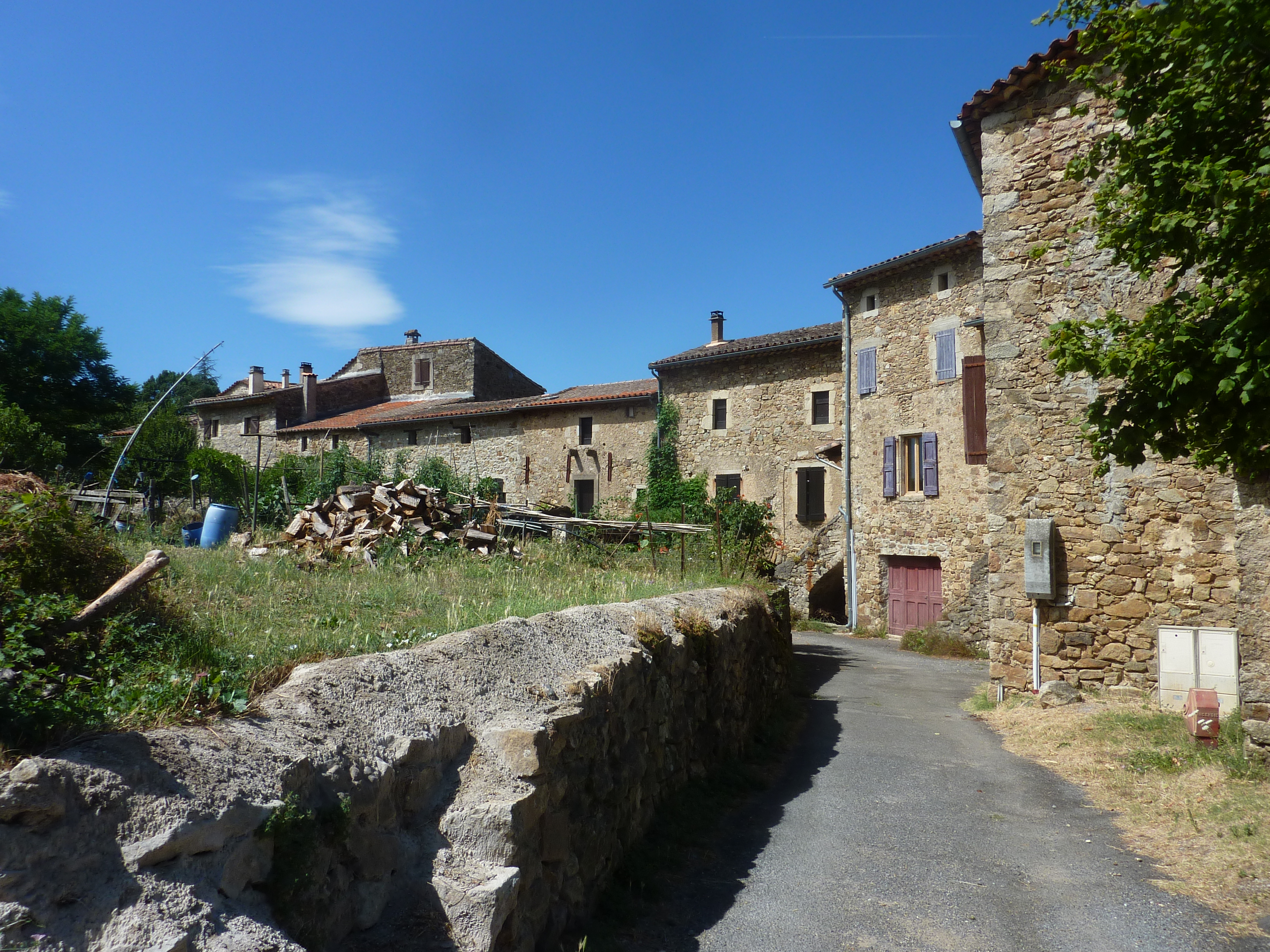 Départ Mialet (183 m) : suivre le chemin partant tout droit direction l'Escoudas, balisé en rouge et blanc, et en jaune
