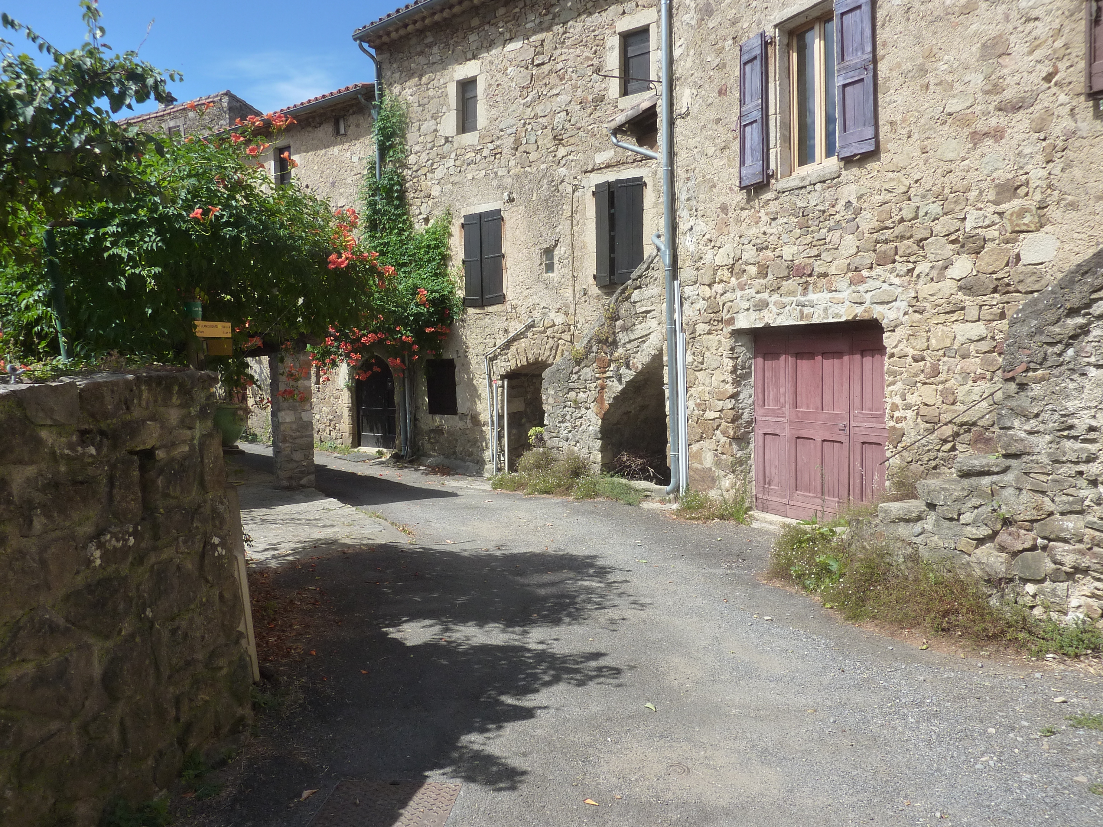 Mialet - Rue Jacques Bernard (180 m) : suivre la ruelle partant légèrement sur la gauche direction l'Escoudas, balisé en rouge et blanc, et en jaune