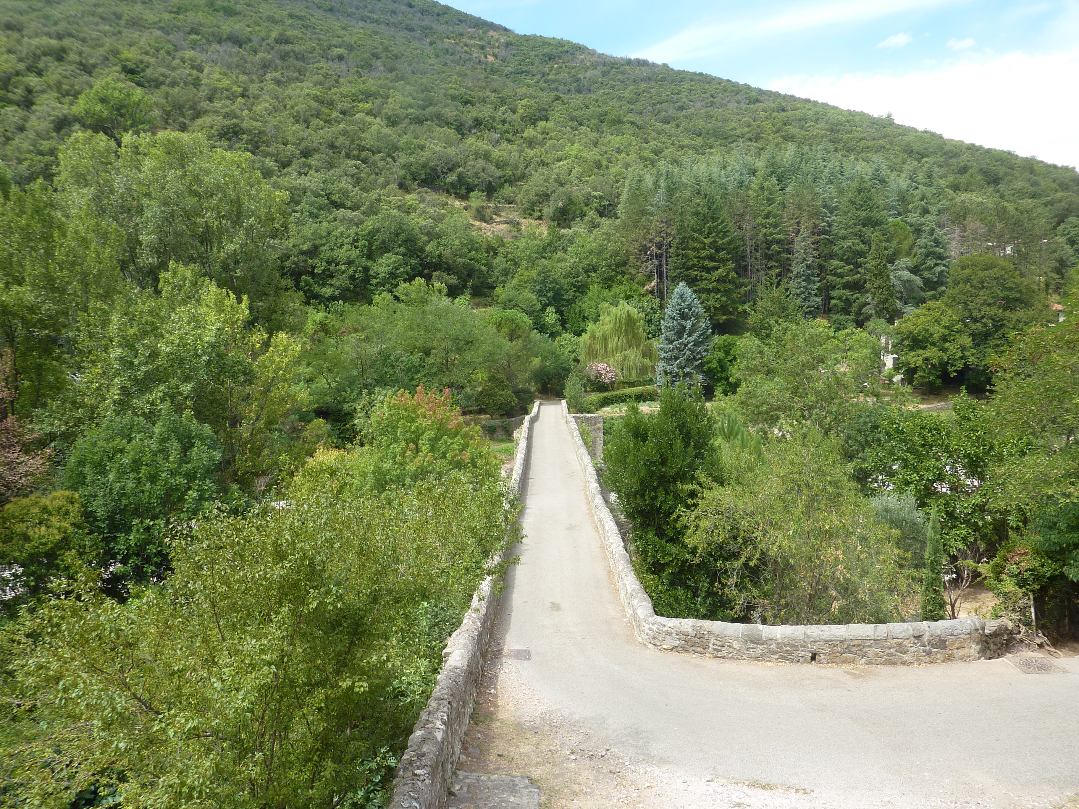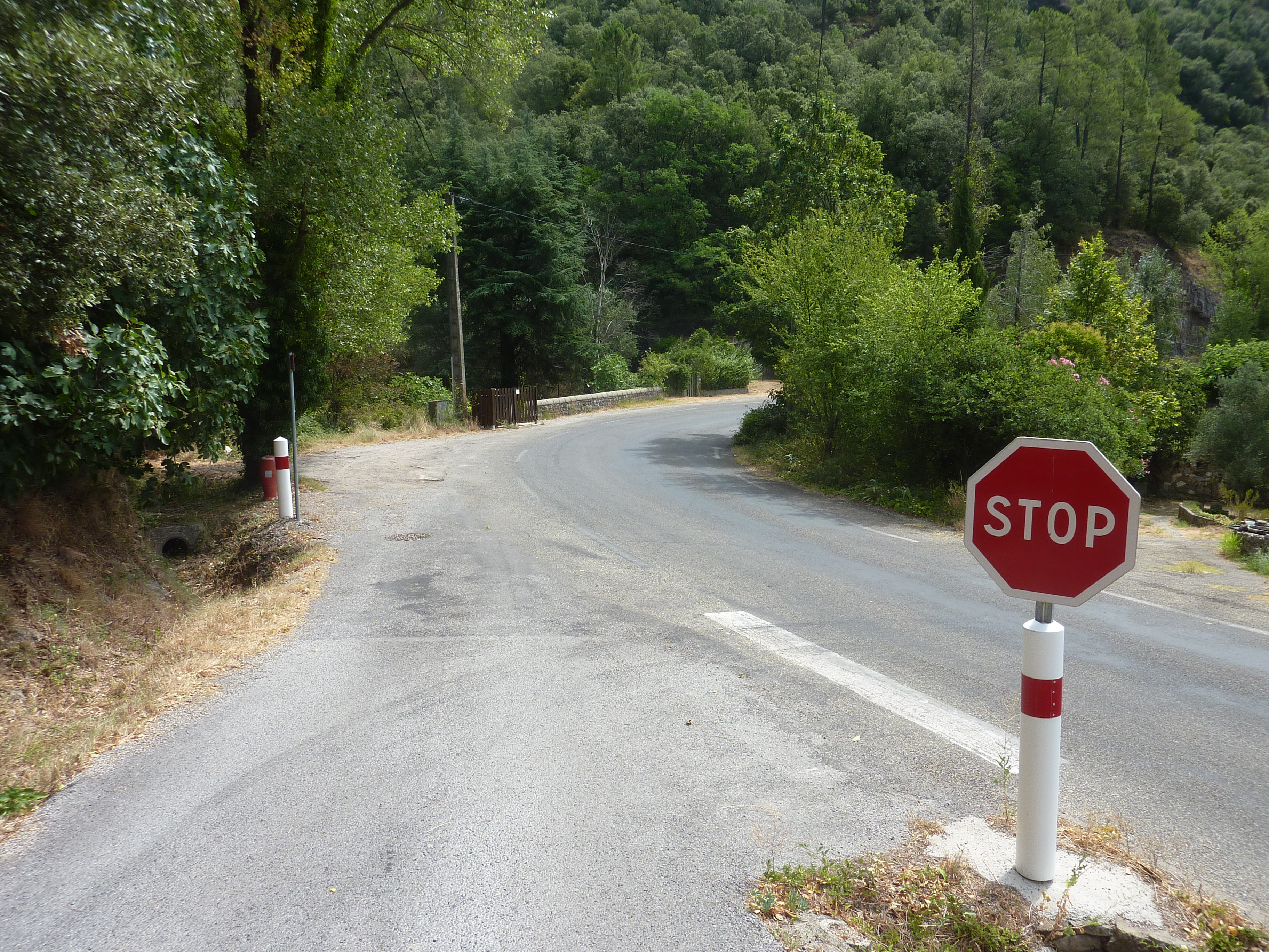 Pont des Camisards (173 m) : continuer à suivre la D50 partant tout droit direction Mialet, balisé en rouge et blanc, et en jaune