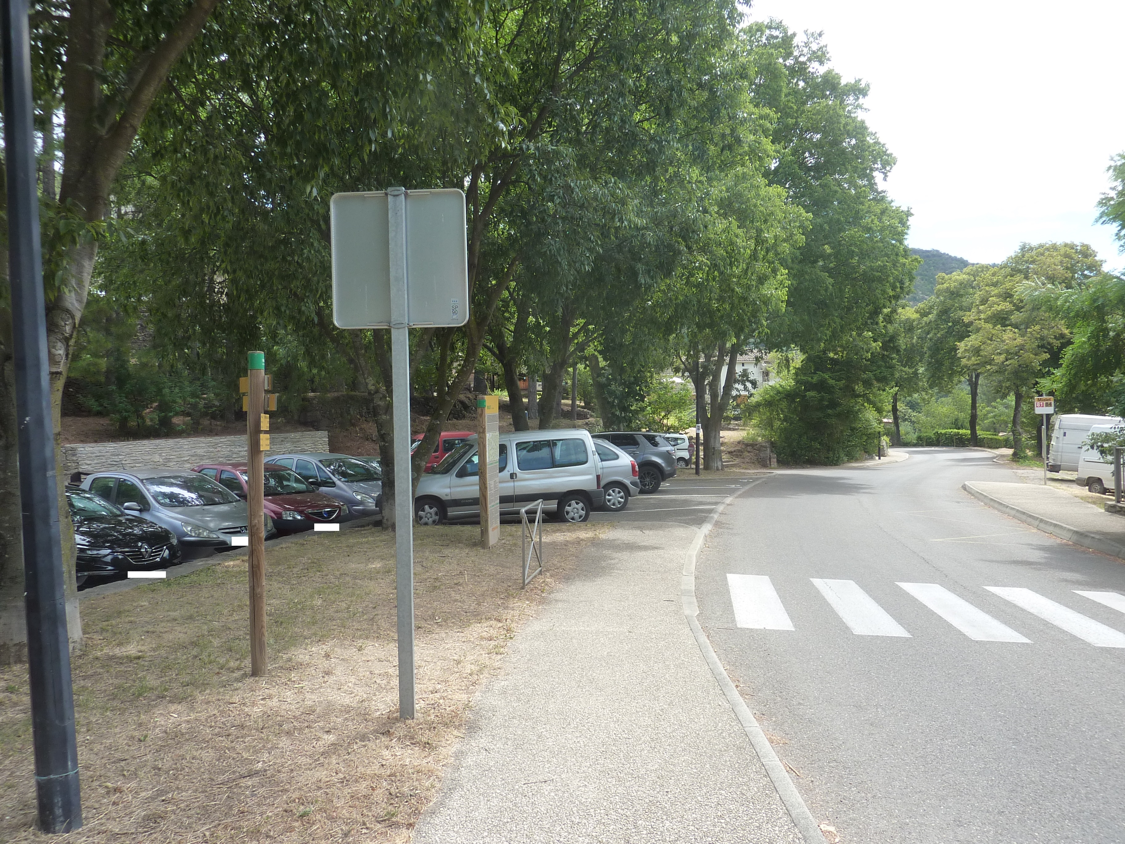 Les Aïgladines (396 m) : suivre la route partant sur la gauche direction Mialet, balisé en rouge et blanc, et en jaune