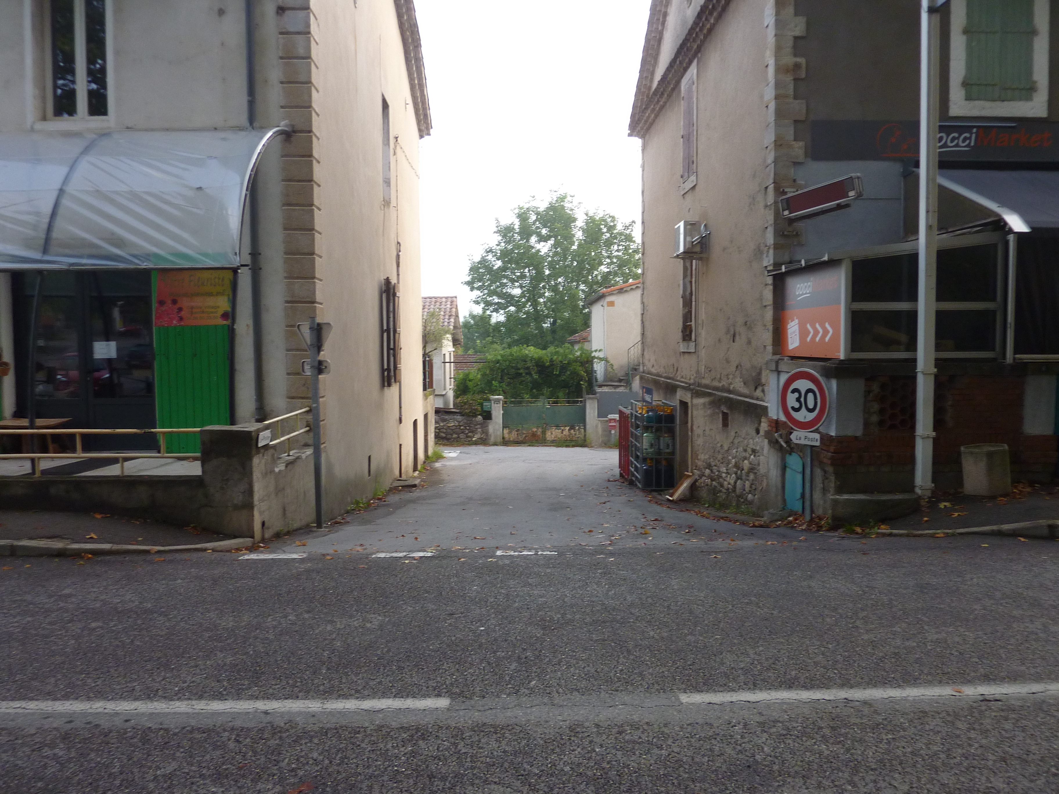 A ce croisement au pied du Château de Verfeuil, suivre le chemin montant sur la droite direction Château de Verfeuil, aucun balisage dorénavant (pour ceux qui ne veulent pas visiter les ruines du château, continuer tout droit et suivre les balises jaunes et rouges)