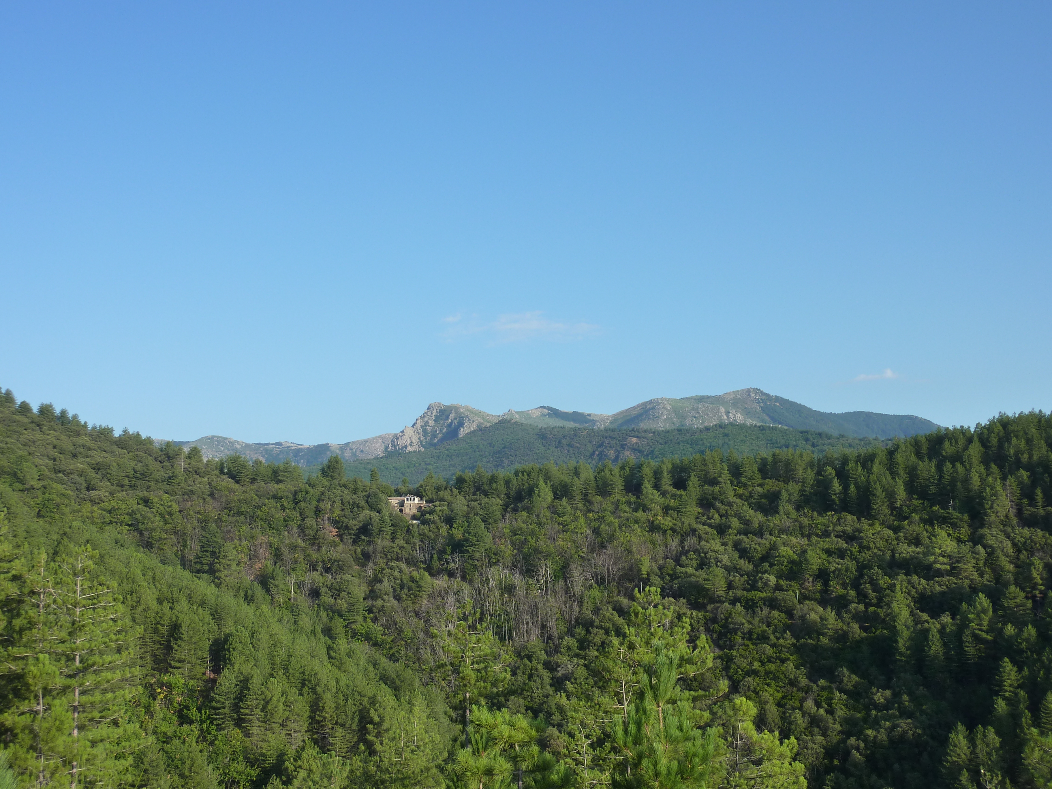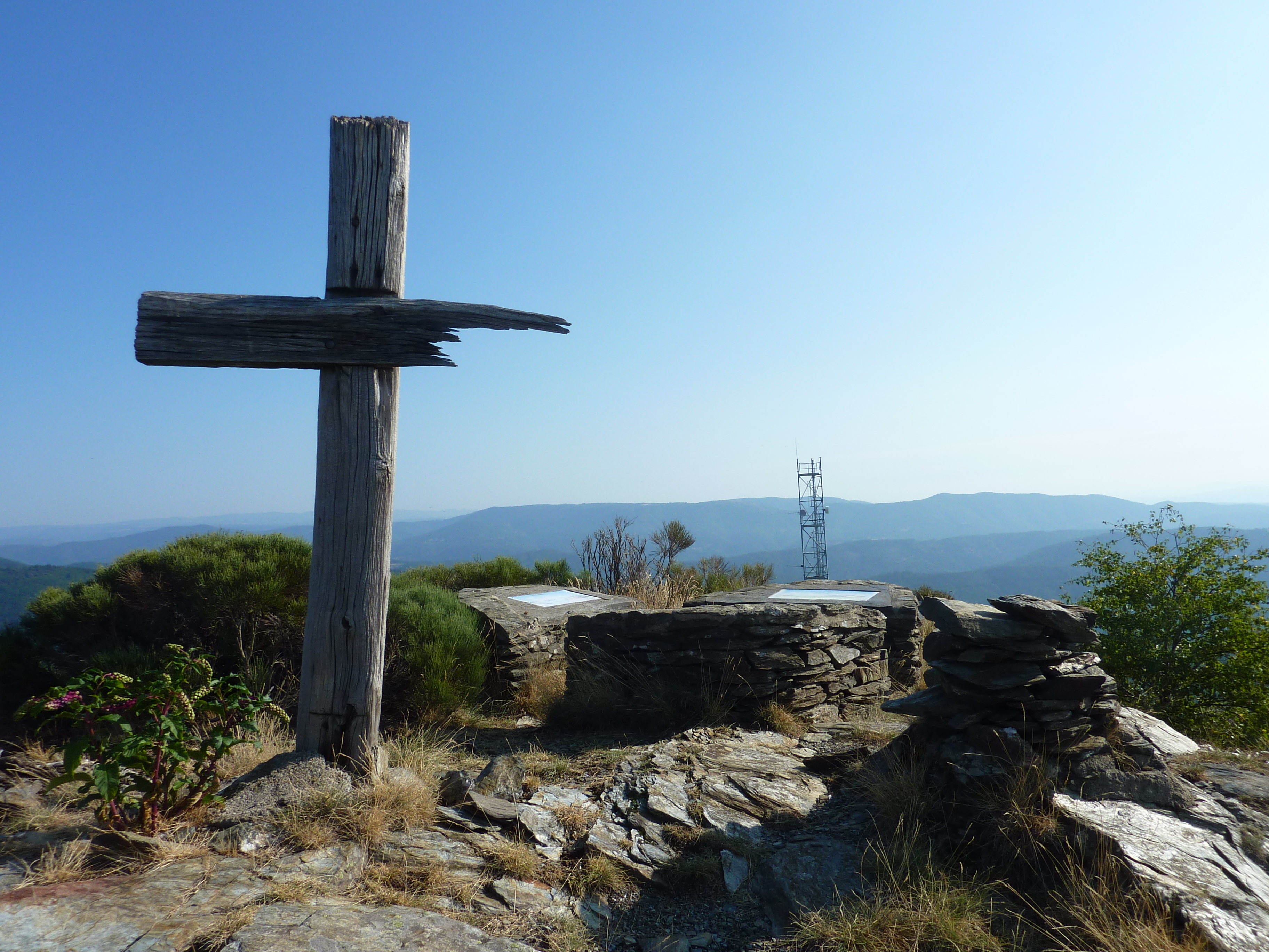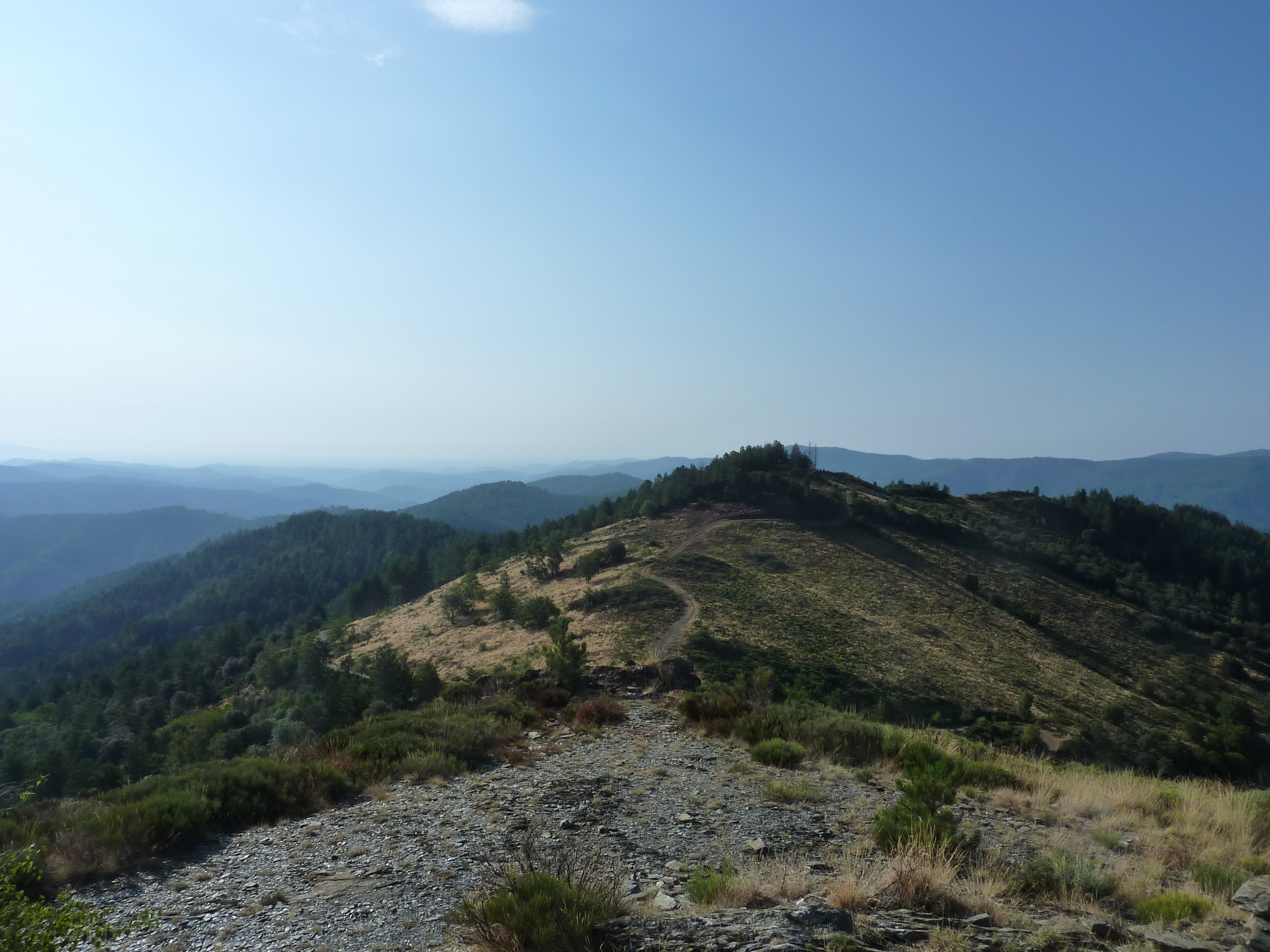 Arrivée au sommet du Pic de la Tourette (914 m) : très beau panorama sur les Cévennes lozériennes et gardoises ainsi que sur les sommets héraultais ... la plaine est peu visible en raison de la brume résiduelle