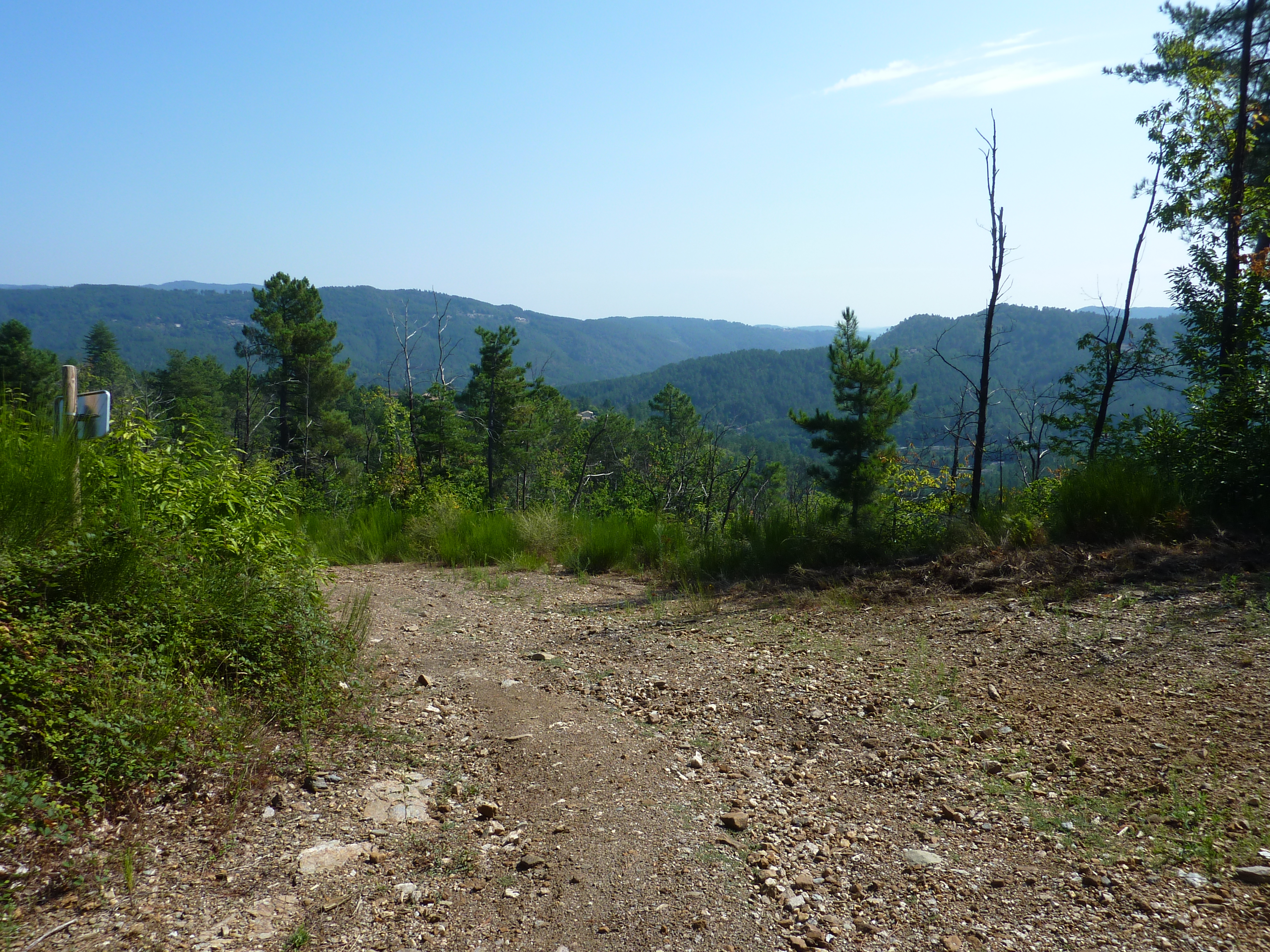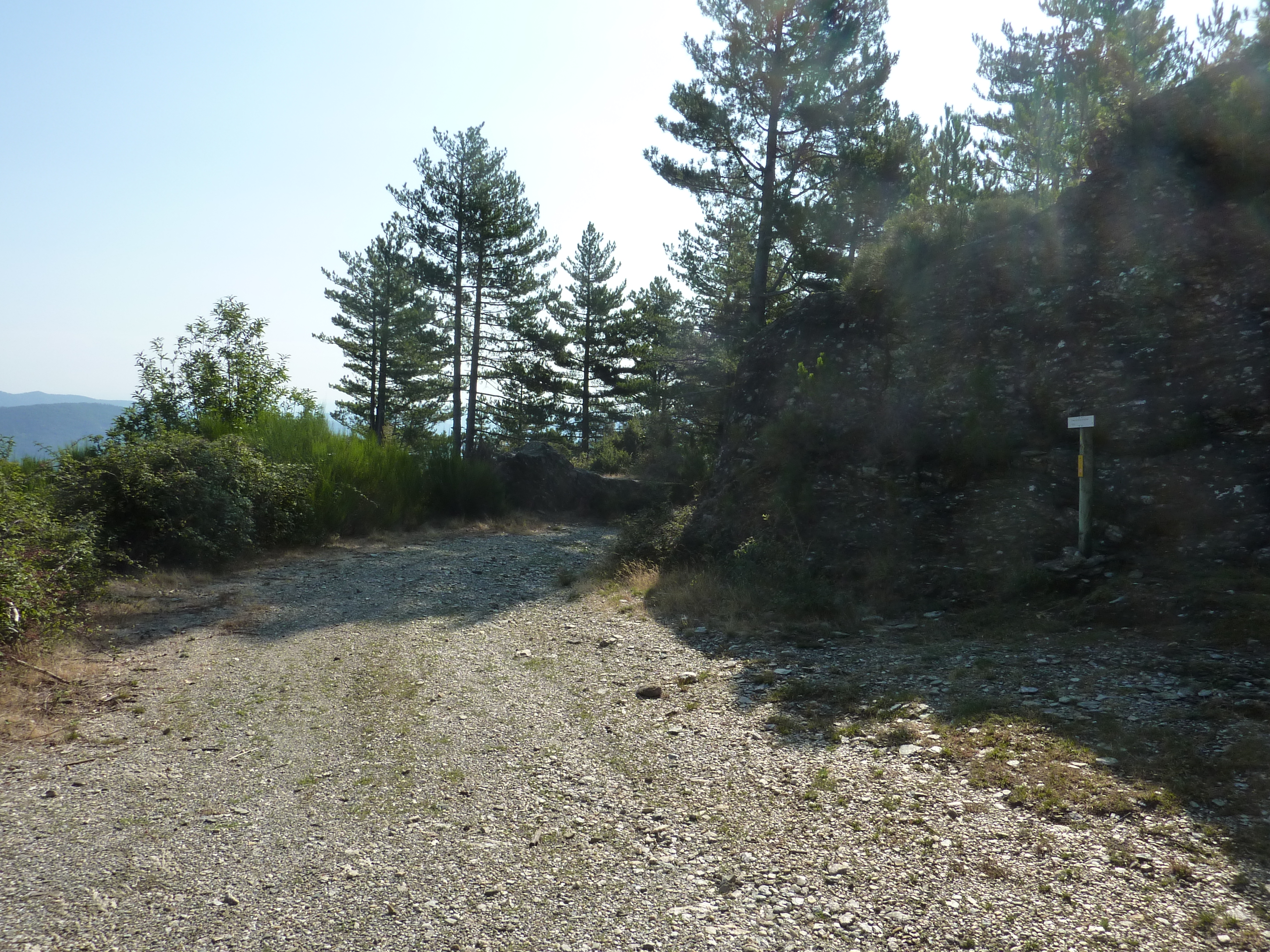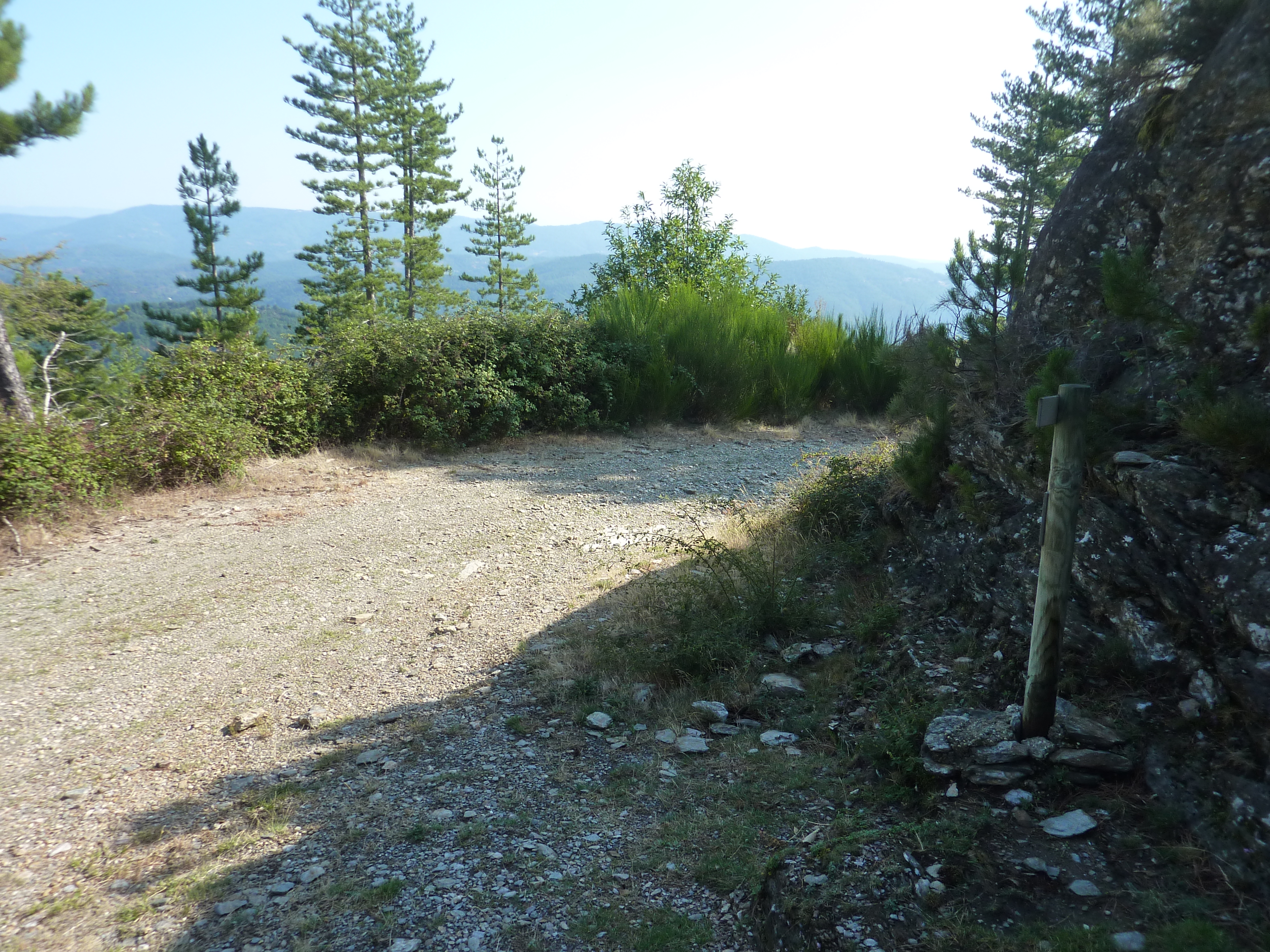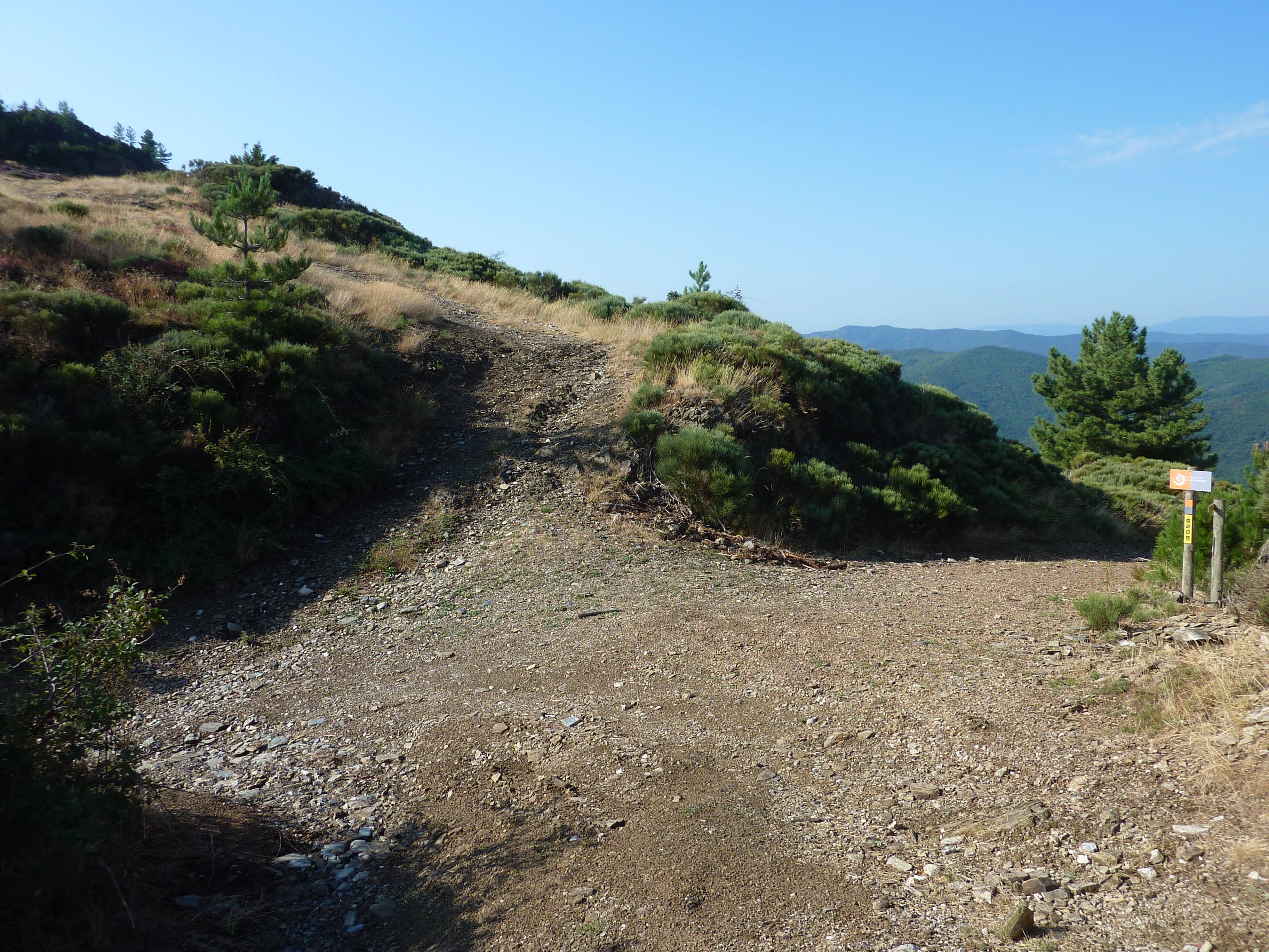 A ce croisement au pied du Pic de la Tourette, suivre la piste descendant sur la gauche direction Chamborigaud, balisé en jaune et rouge dorénavant