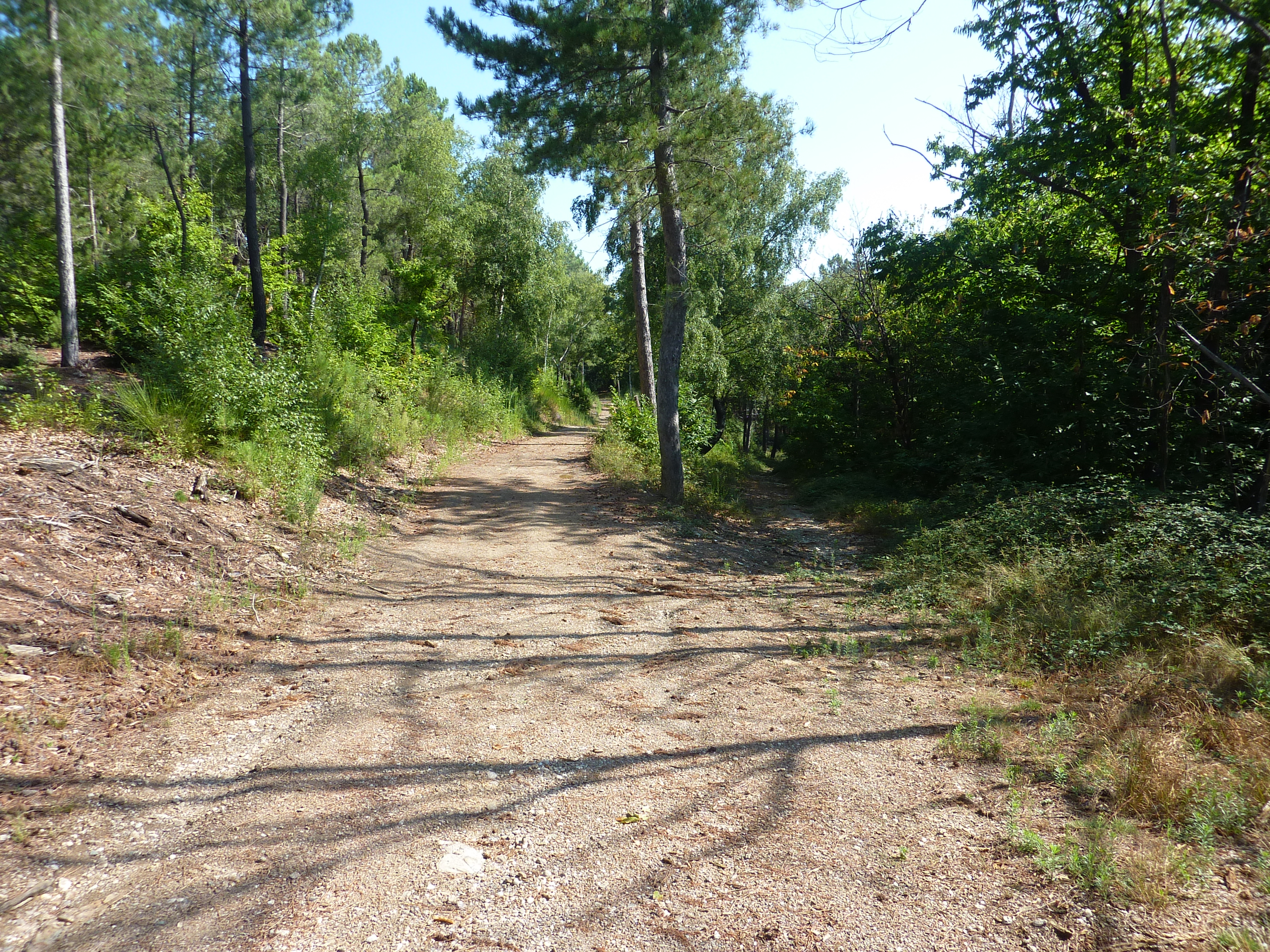 A ce croisement (700 mètres après le lieu-dit "La Jongle"), suivre la piste partant de biais sur la droite direction Chamborigaud