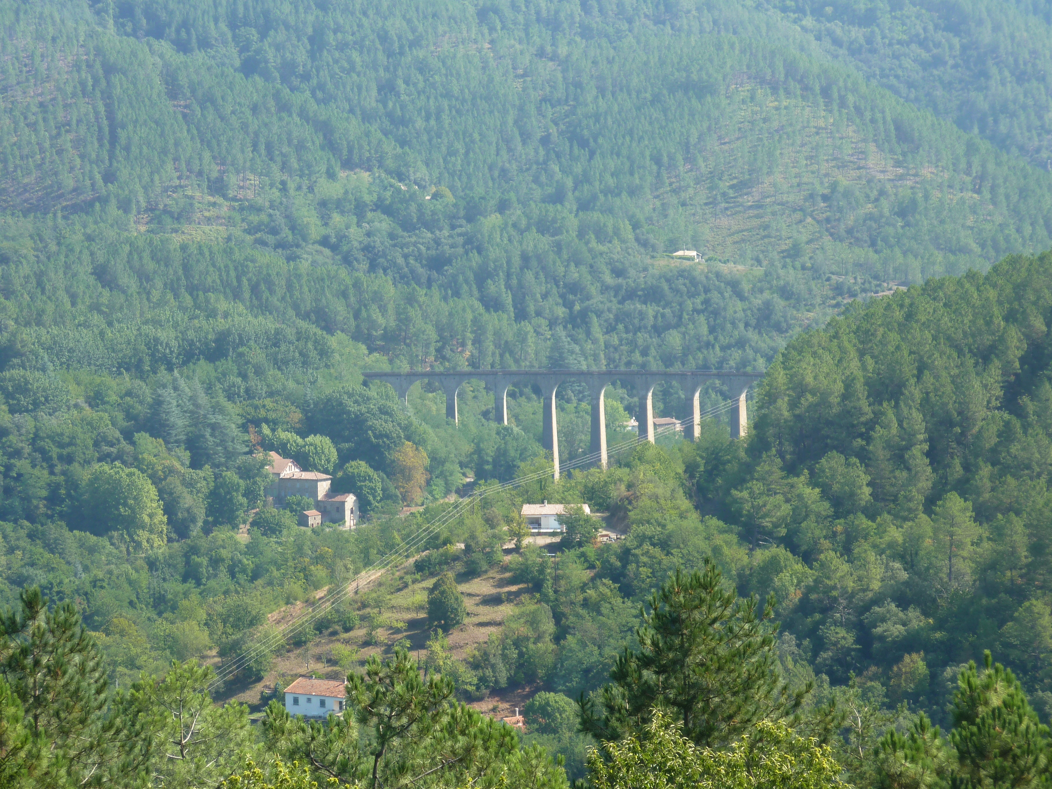 Zoom sur le Viaduc de Chamborigaud bien visible depuis les deux sommets du jour, ouvrage d'art accueillant la ligne ferroviaire reliant Clermont-Ferrand à Nîmes