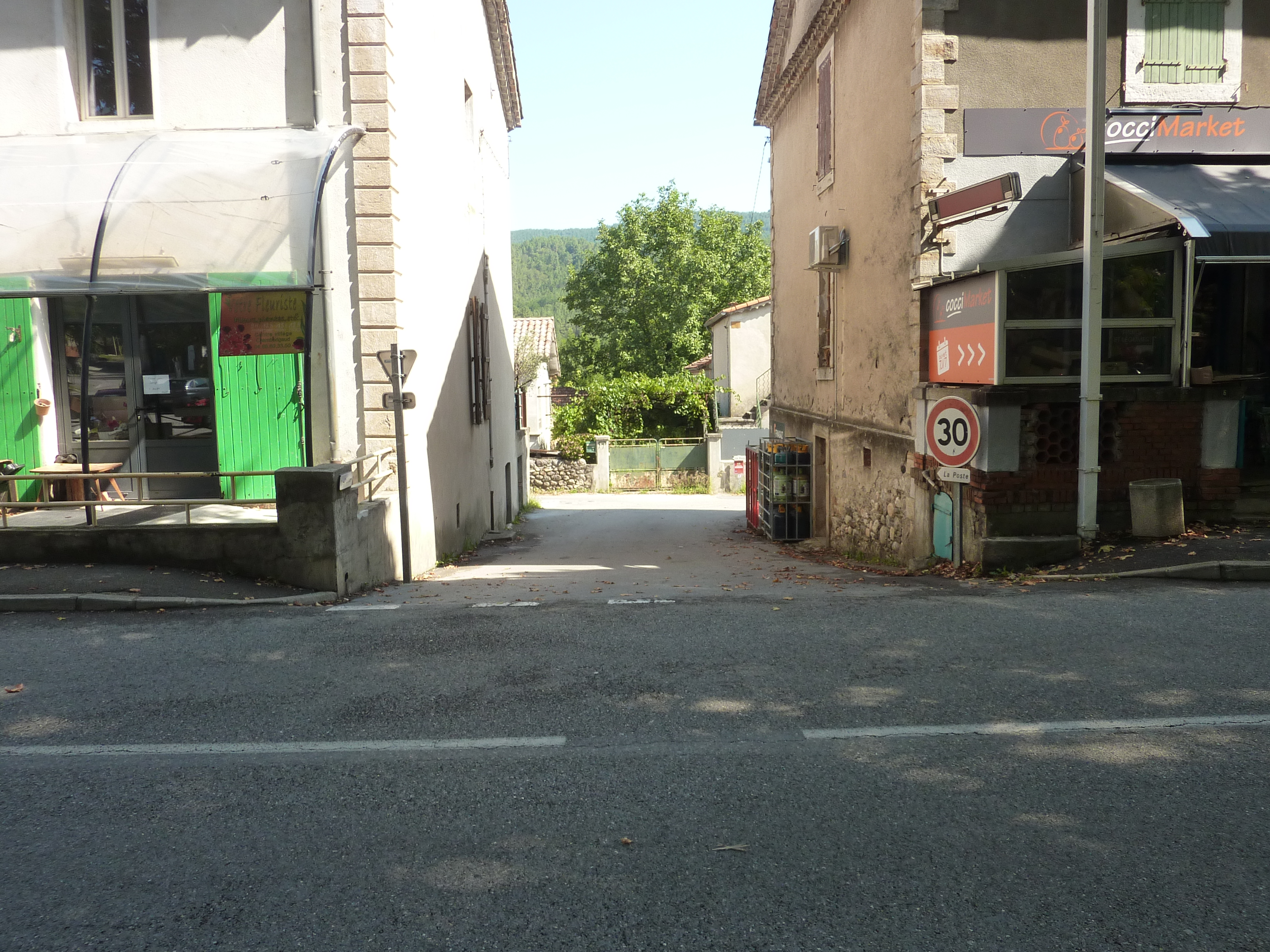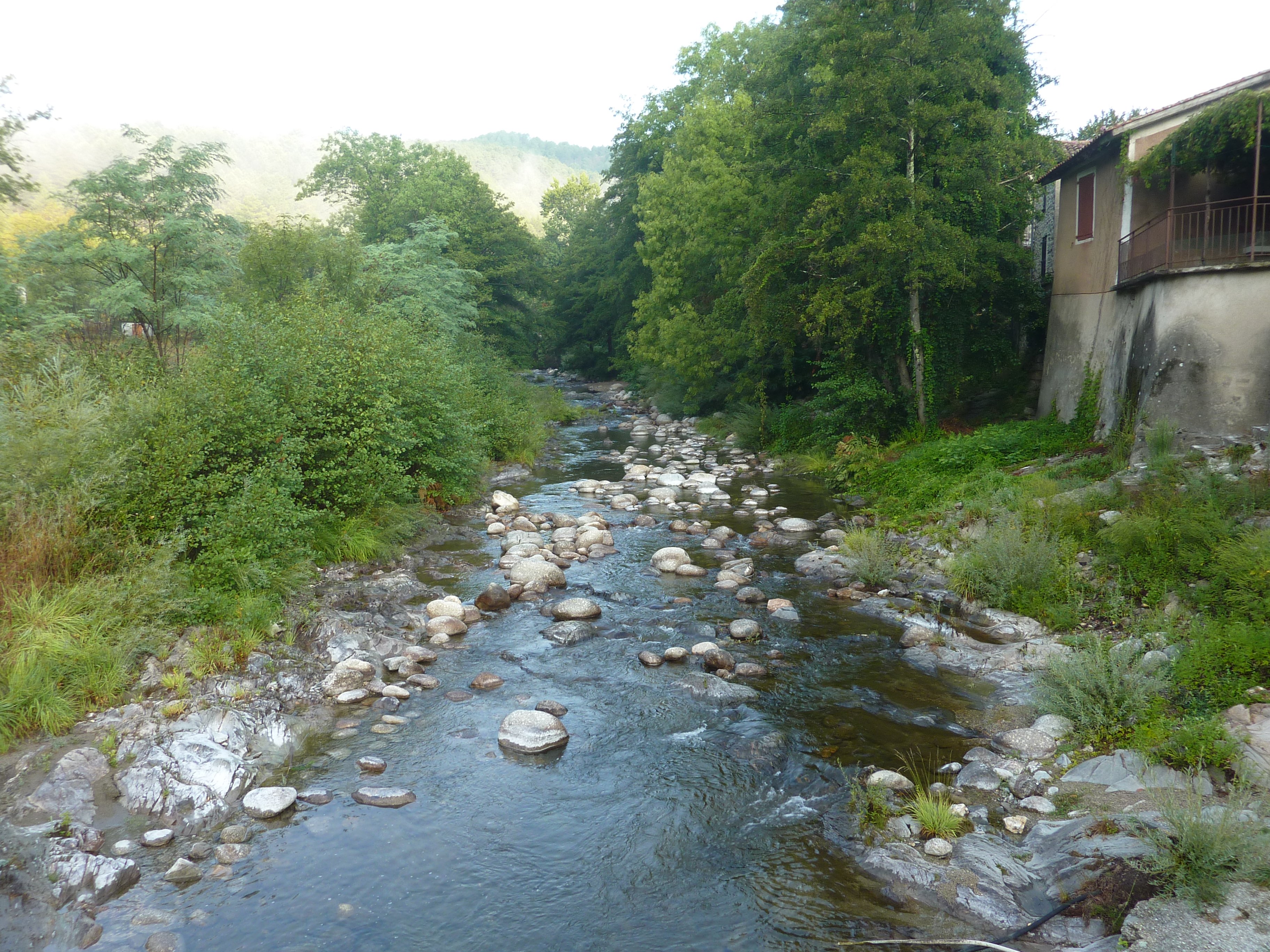 Pont de Rastel (306 m) : emprunter le pont et suivre la route partant tout droit direction Vialas, balisé en jaune et rouge