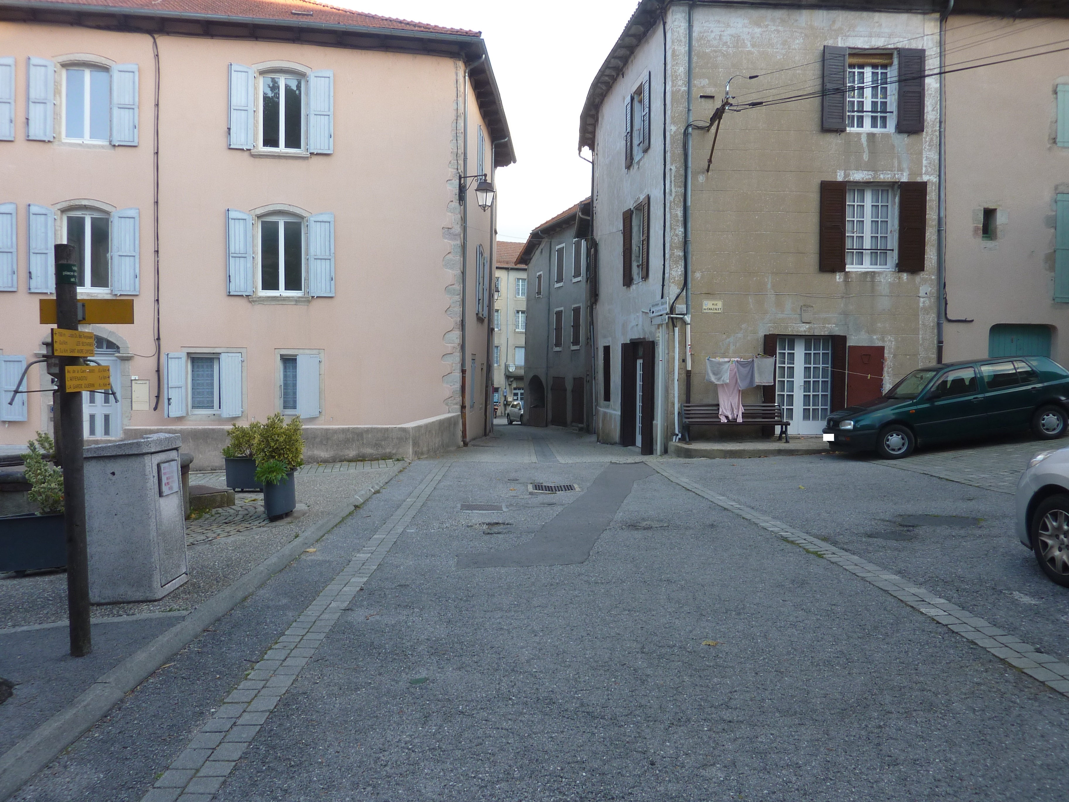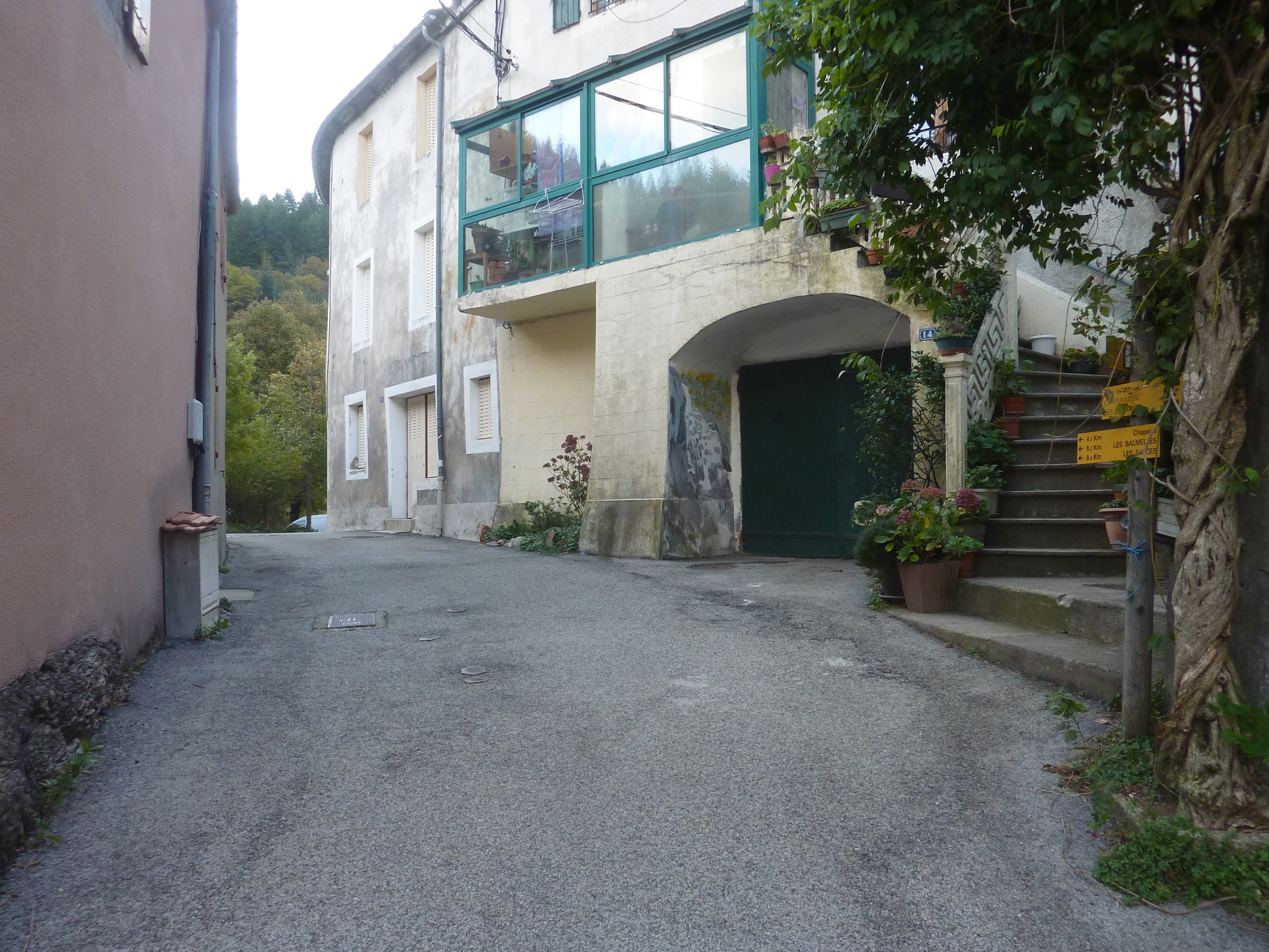 Villefort - Place de l'Ormeau (591 m) : suivre la ruelle partant sur la droite direction les Balmelles, balisé en rouge et blanc