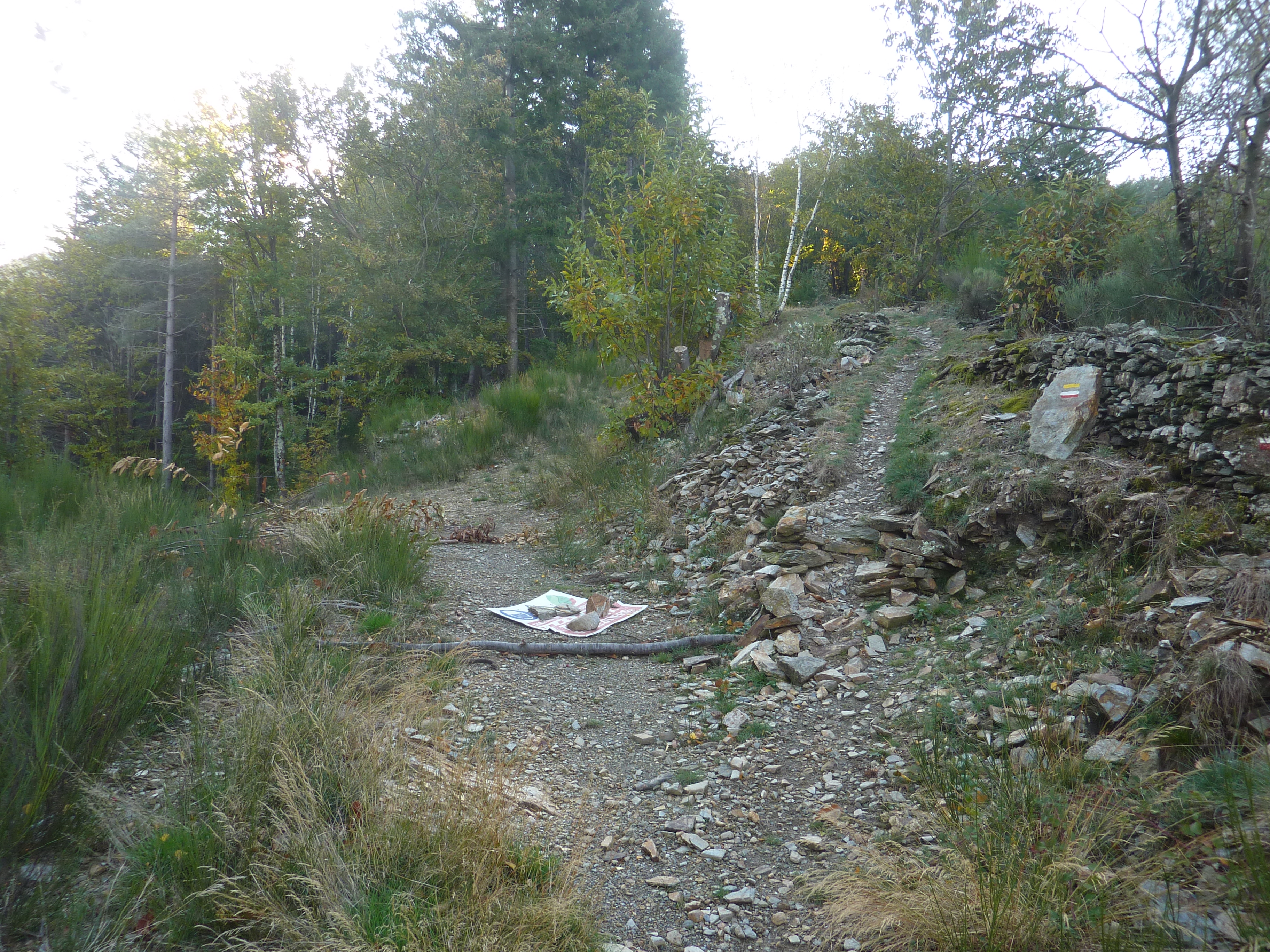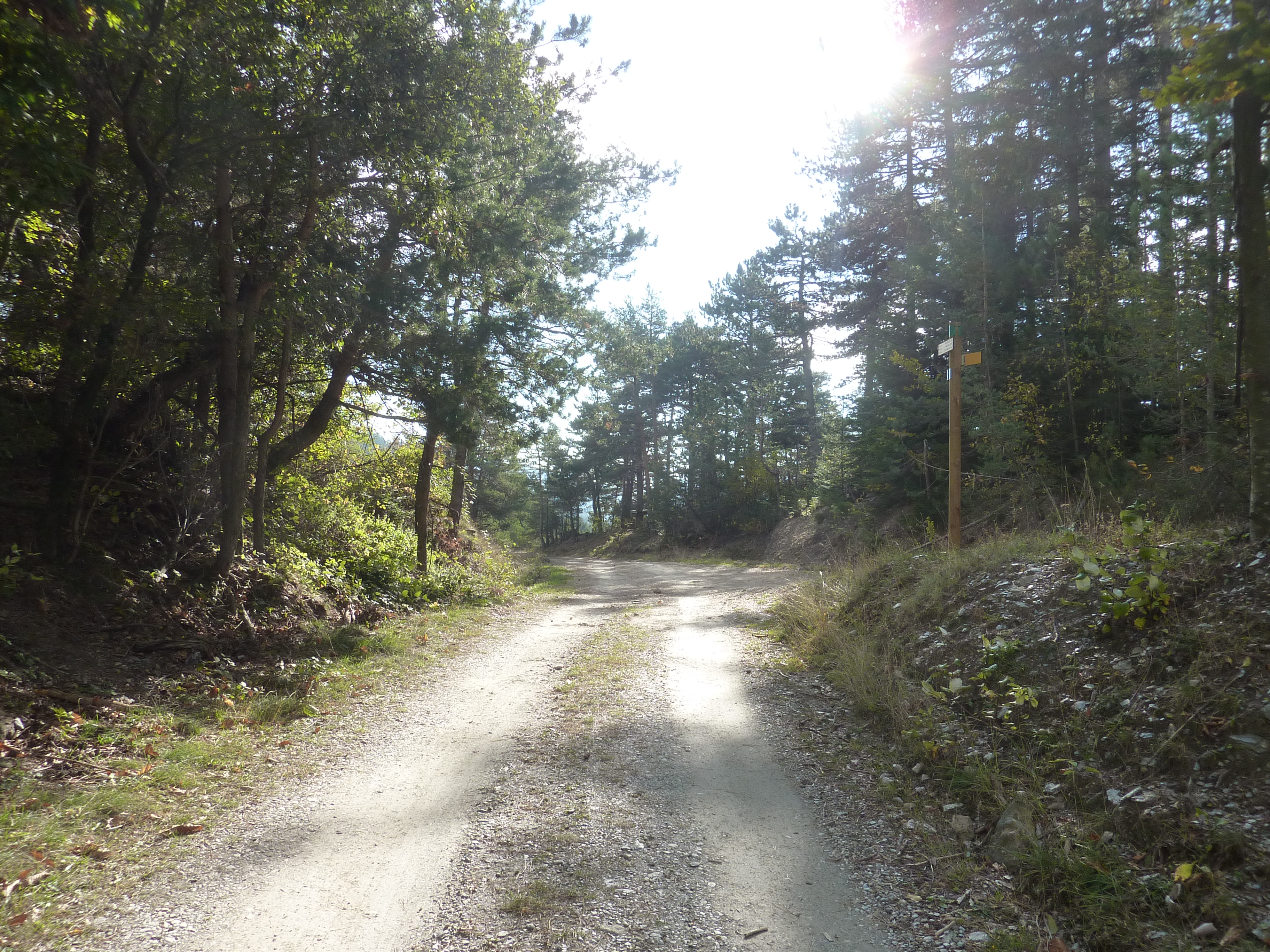 A ce croisement (500 mètres après le lieu-dit "la Gineste"), suivre le chemin montant raidement sur la droite direction Truc du Samblonnet, balisé en jaune désuet (le chemin balisé en jaune suit la piste partant tout droit ; il ne passe plus par le sommet du Truc du Samblonnet)