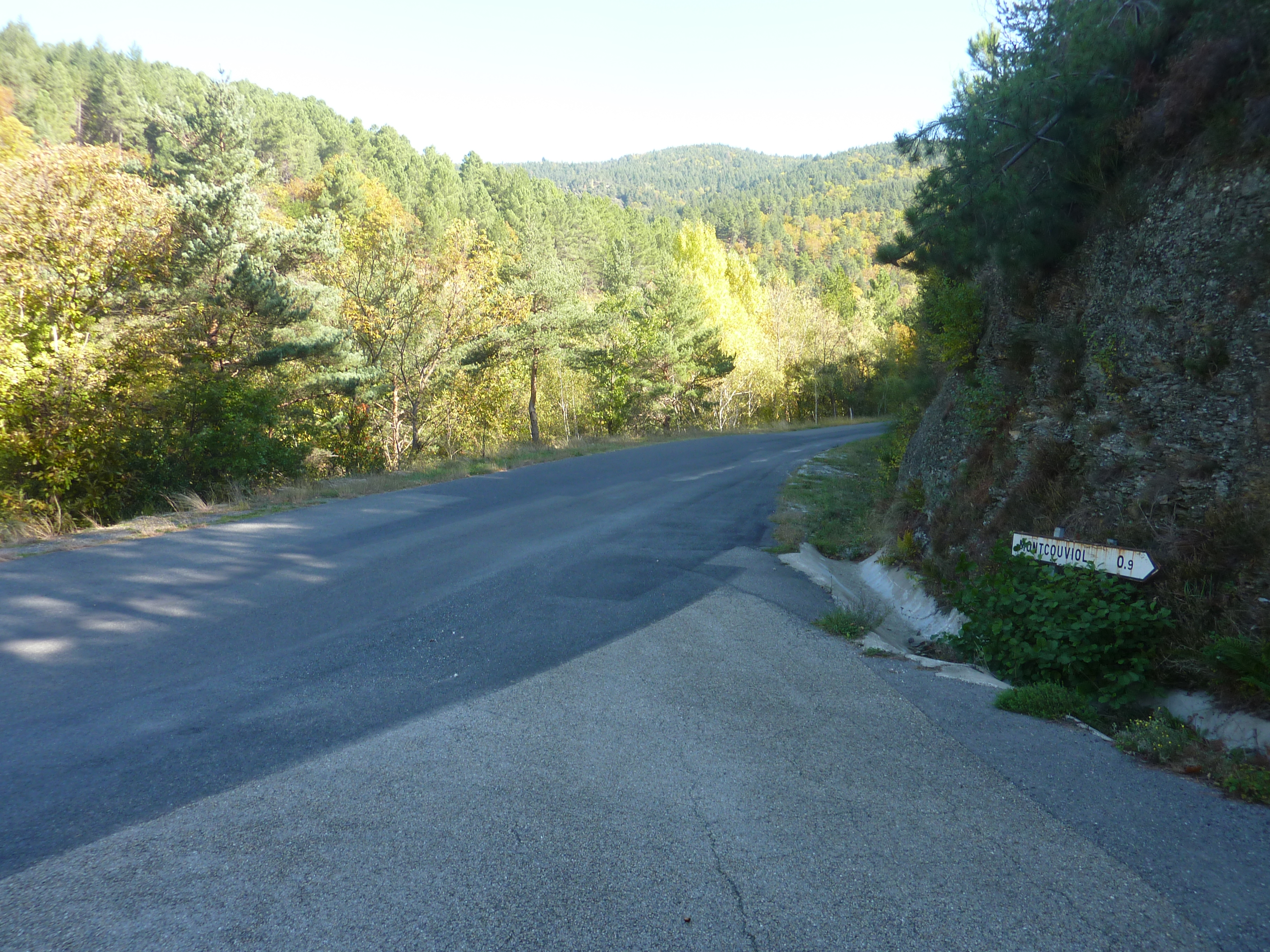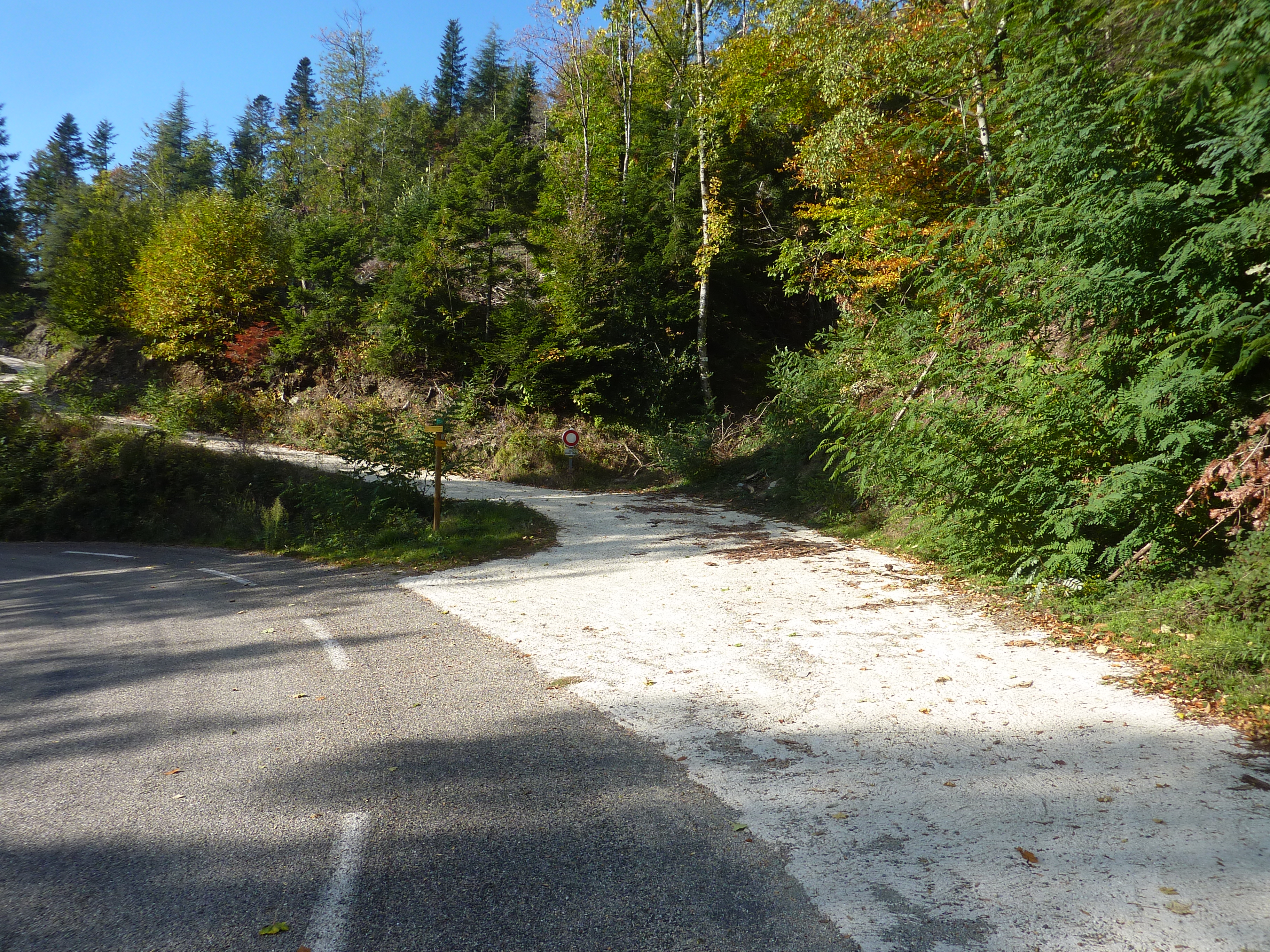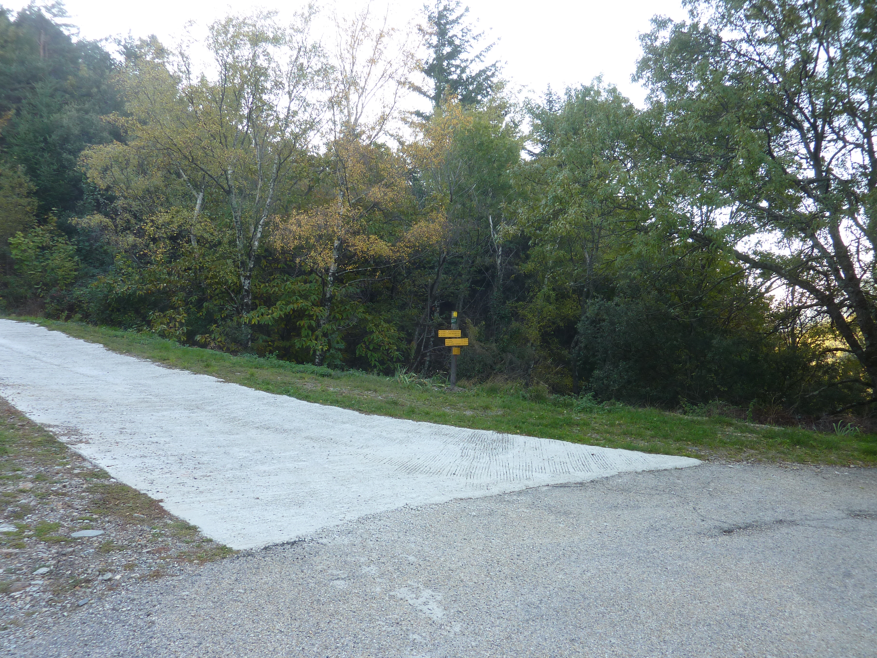 Col du Mas de l'Ayre (845 m) : suivre la D901 partant sur la droite direction Mas de l'Ayre, balisé en jaune dorénavant