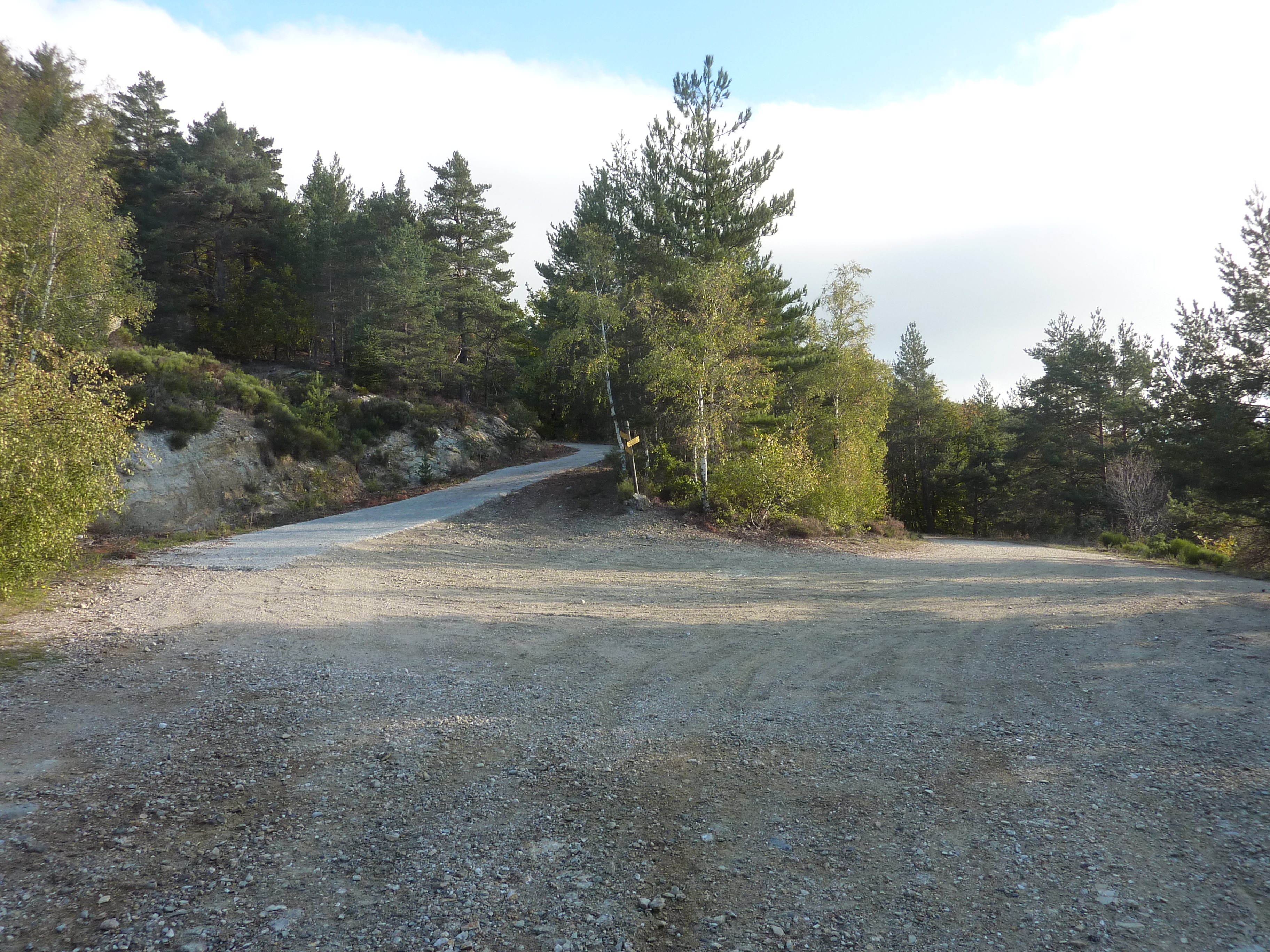 A ce croisement (25 mètres après avoir quitté le sommet), suivre le chemin partant sur la droite direction Saint-André-Capcèze, balisé en jaune désuet dorénavant