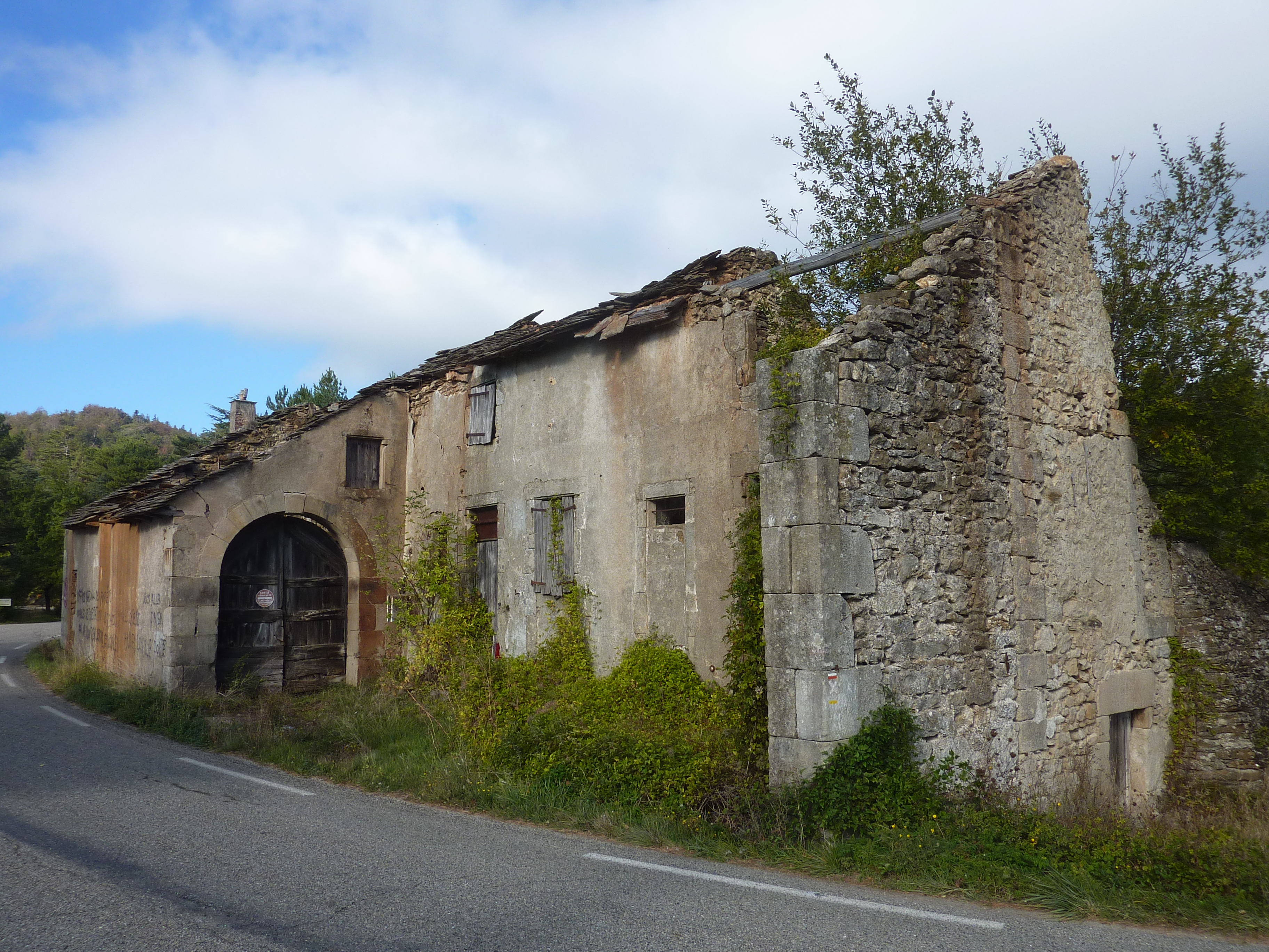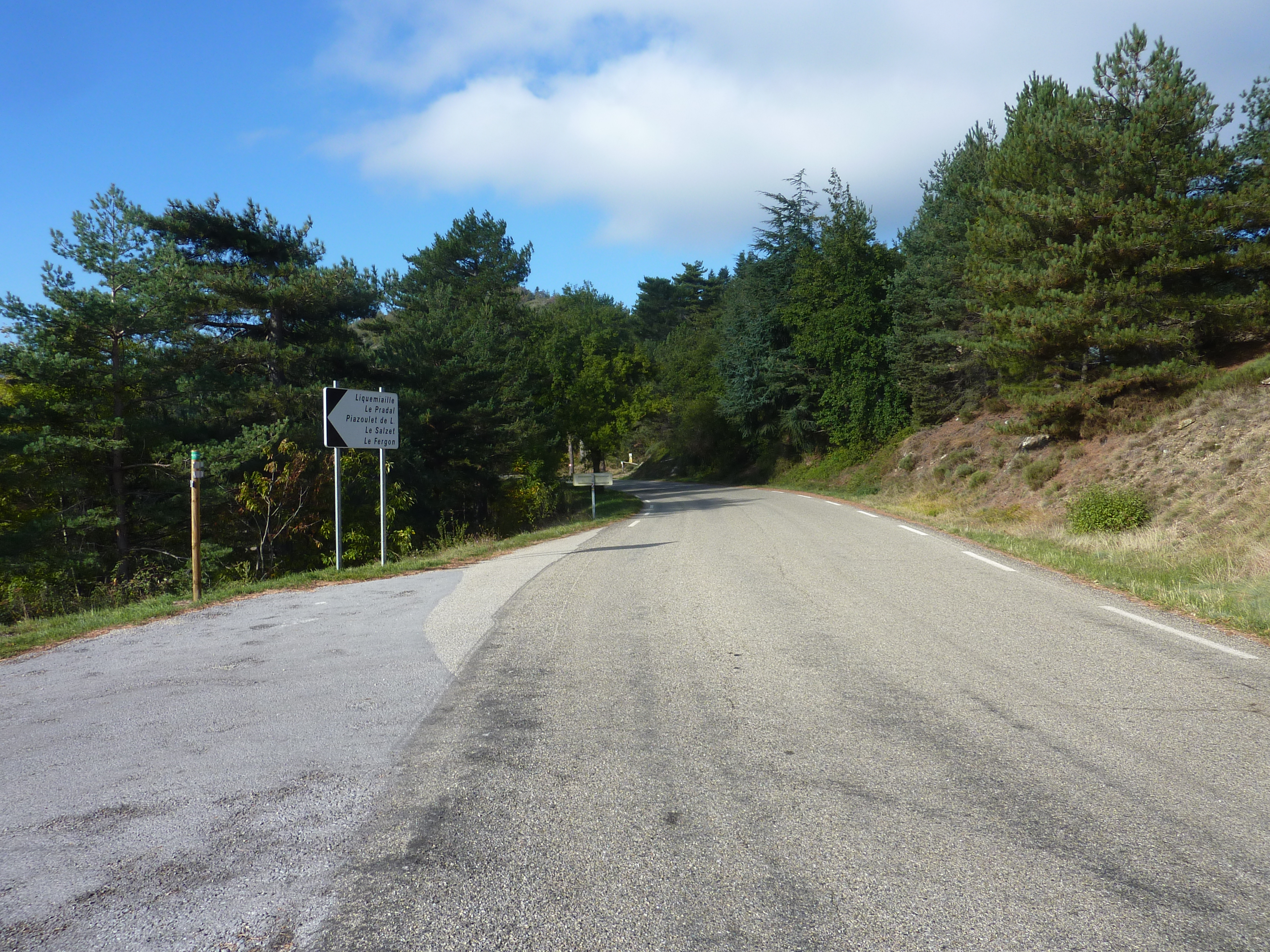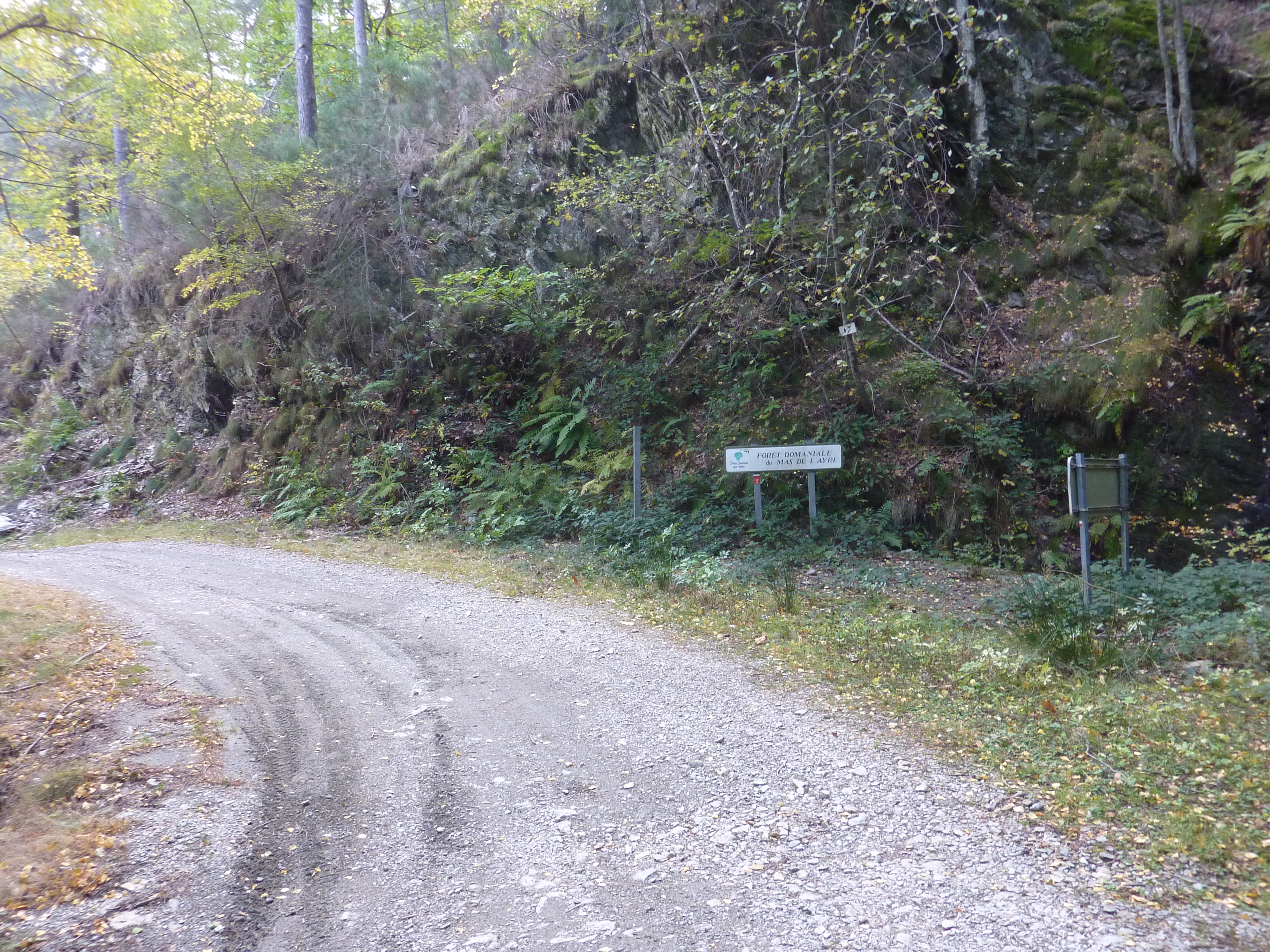 Au niveau de ce panneau "Forêt Domaniale du Mas-Ayre" (700 mètres après le lieu-dit "le Samblonnet"), on entre dans le département du Gard