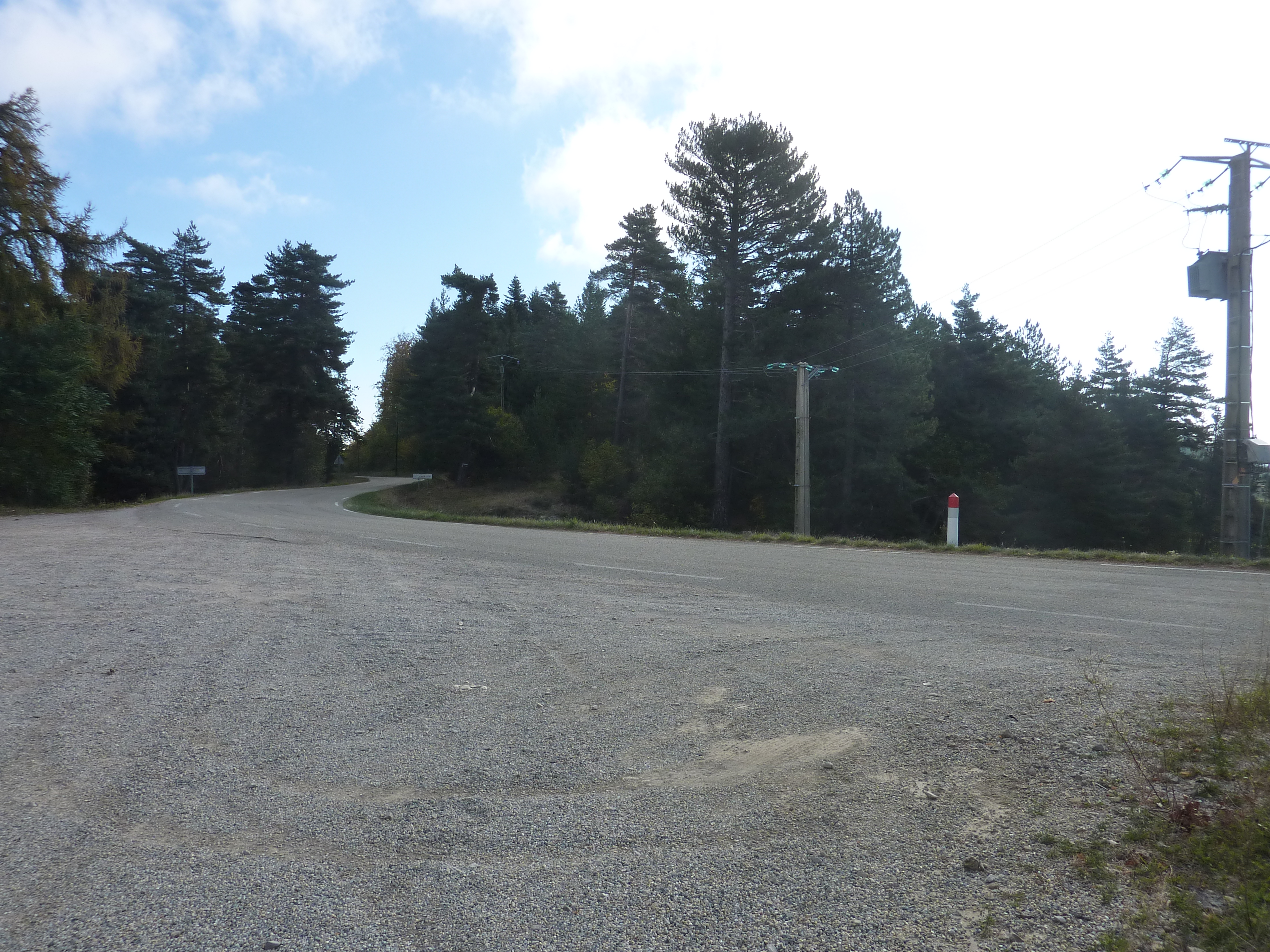 A ce croisement (100 mètres après le précédent) (809 m), suivre la D901 partant sur la droite direction Sources de la Cèze, aucun balisage dorénavant (pour ceux qui ne voudraient pas aller "visiter" les Sources de la Cèze, suivre le chemin balisé en jaune descendant sur la gauche et qui mène directement à Saint-André-Capcèze) (prudence avec la circulation automobile !)
