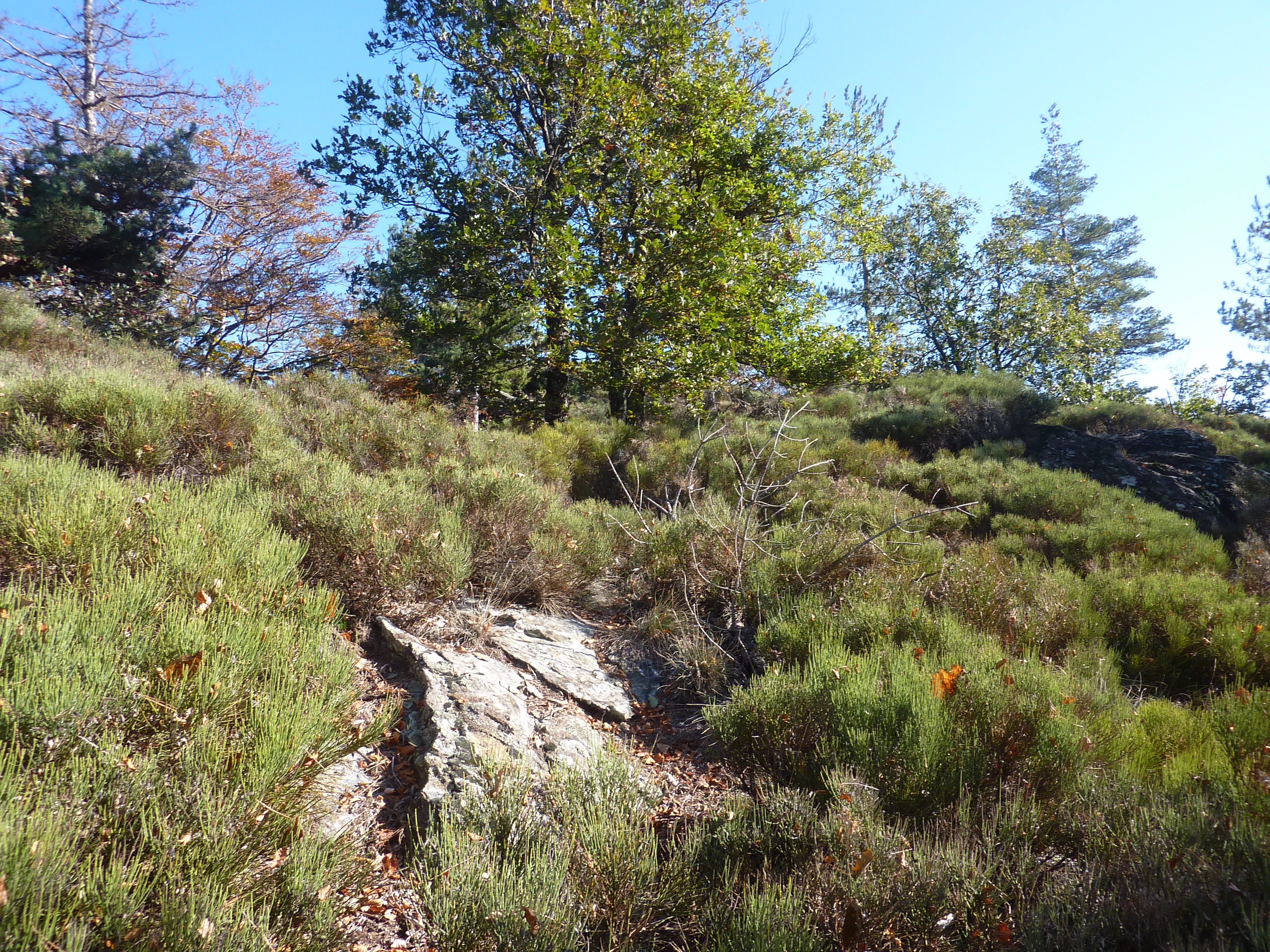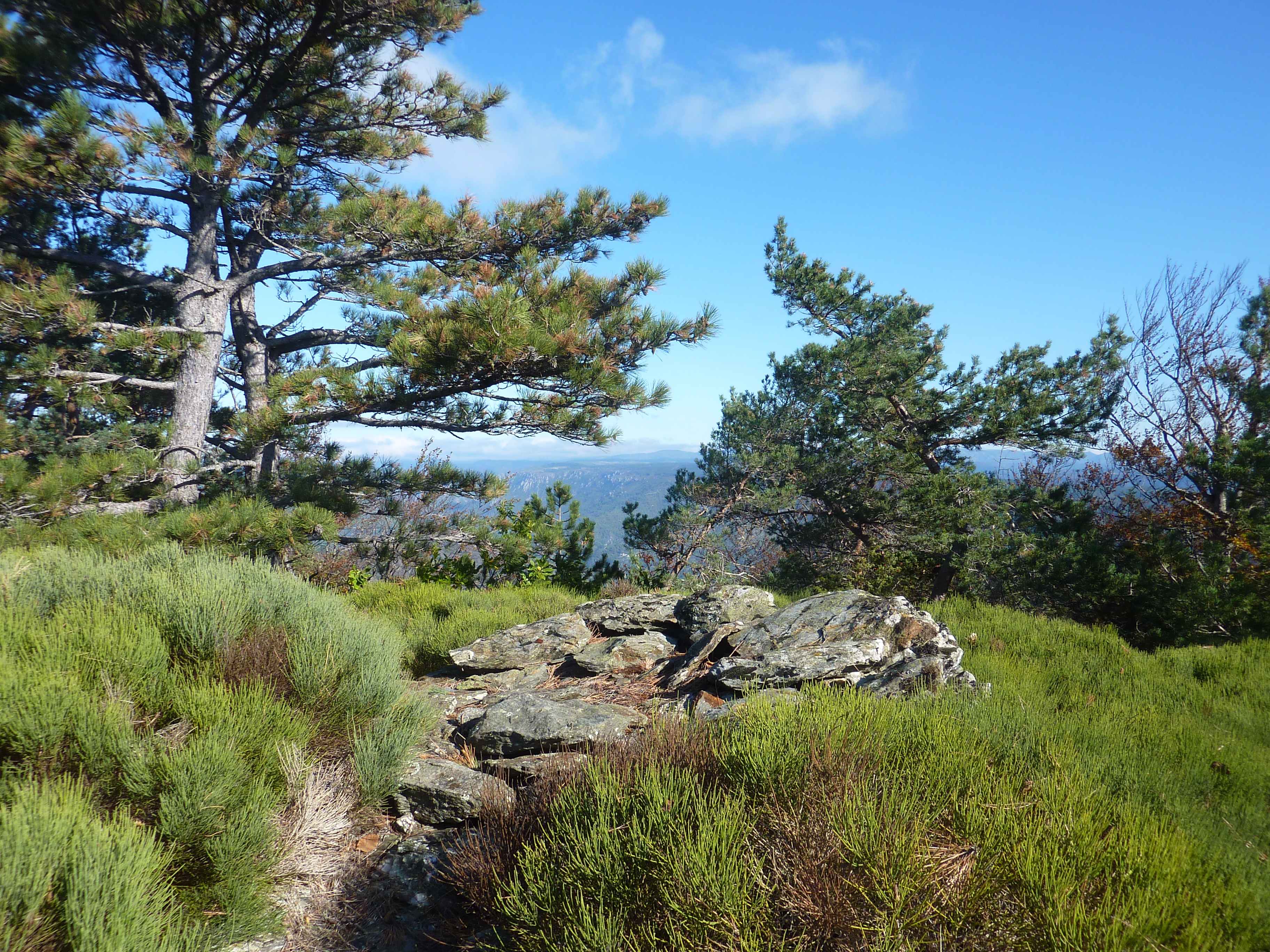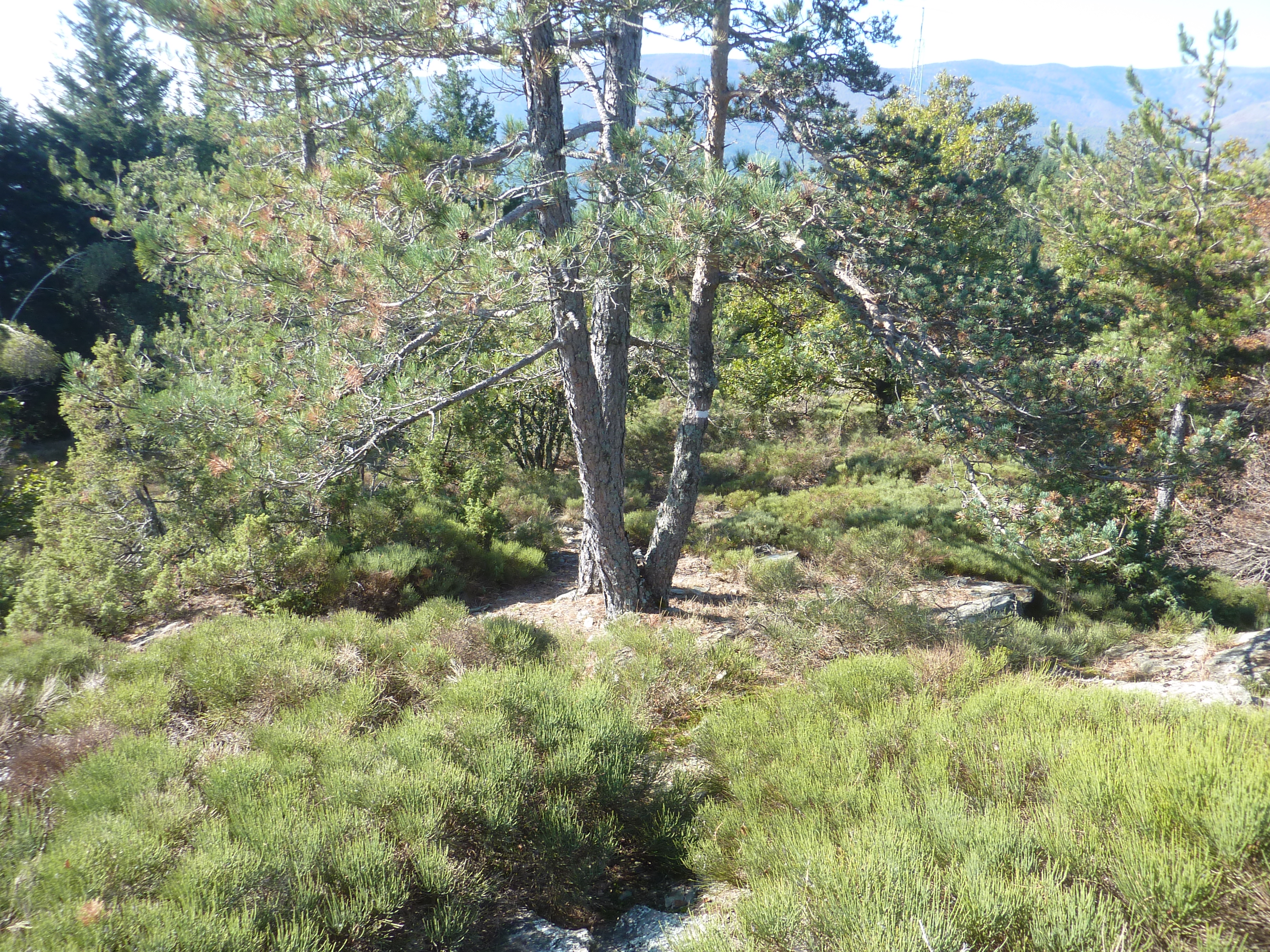 Arrivée au sommet du Truc du Samblonnet (994 m) : pas de panorama possible à cause de la présence dense de végétation !