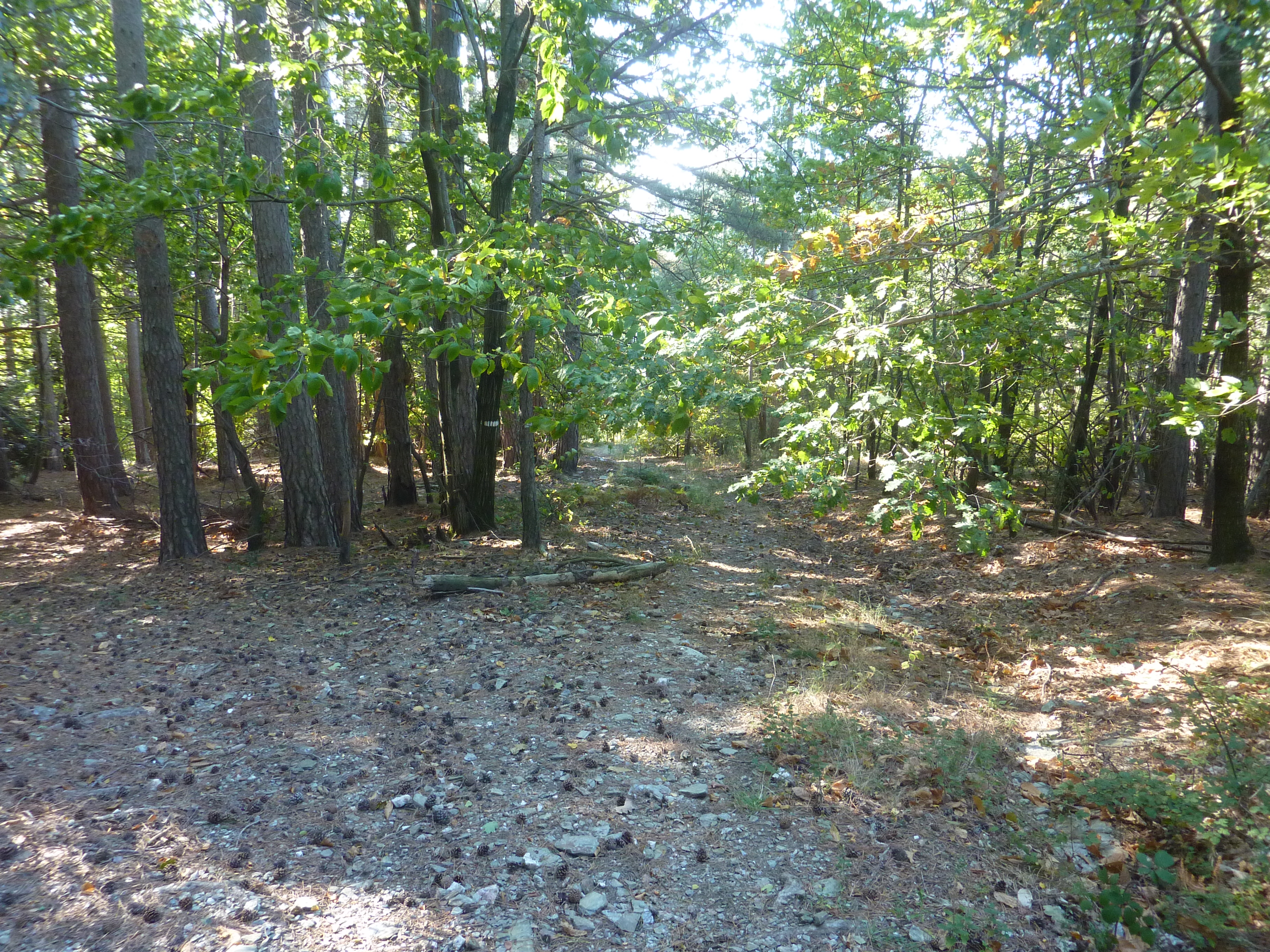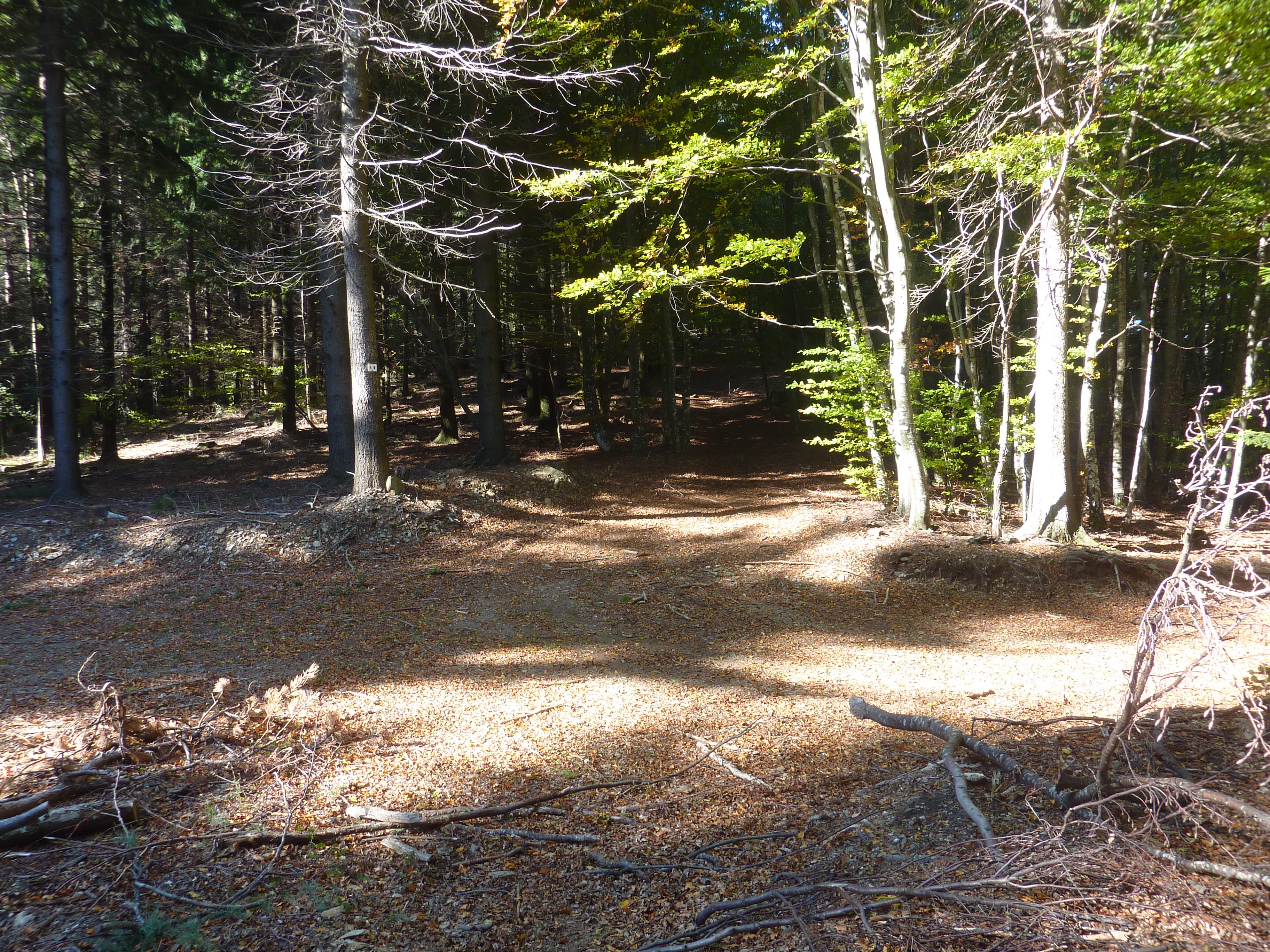 Forêt de Bayard (690 m) : suivre la piste partant sur la gauche direction les Balmelles, balisé en rouge et blanc